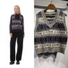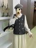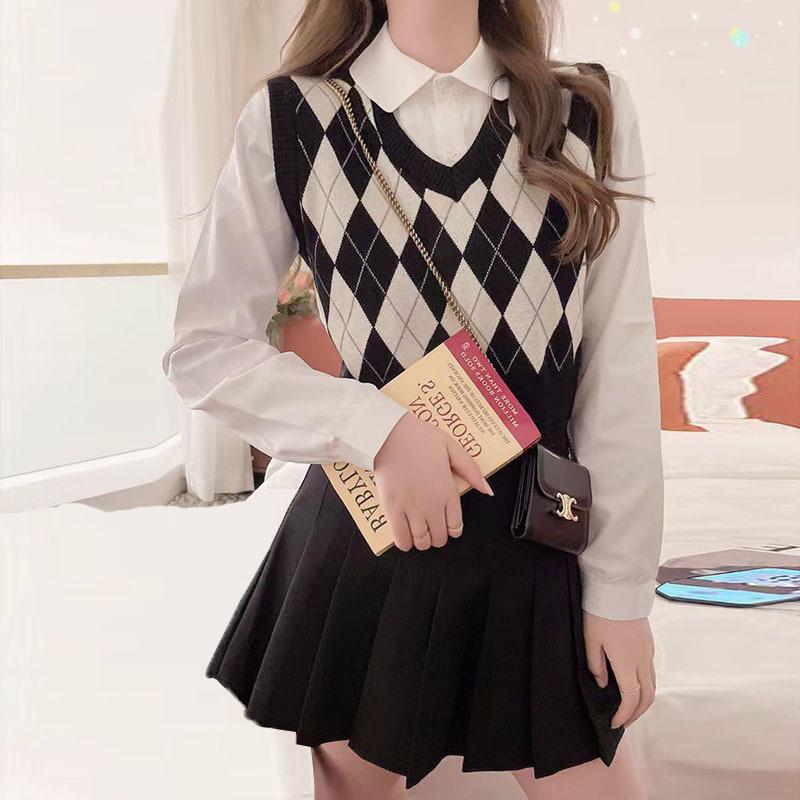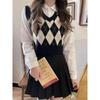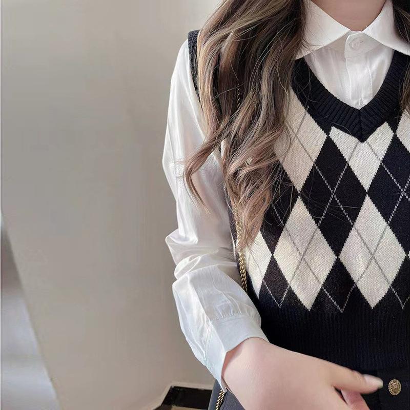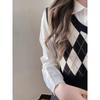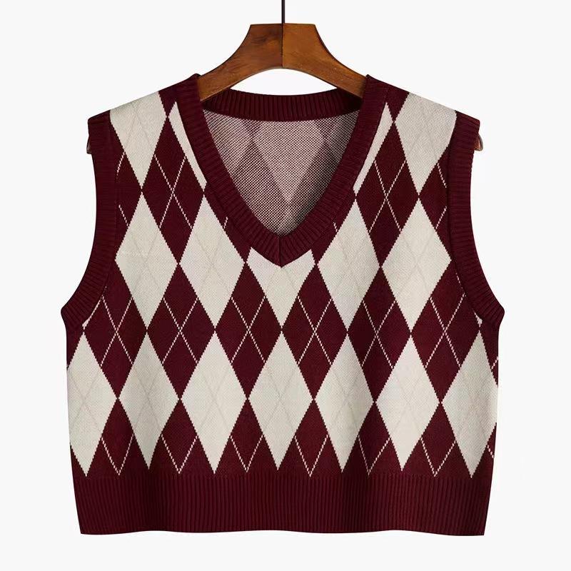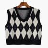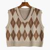 Chaleco de Punto Retro Argyle de Dibujos Animados Reductor de Edad para Mujer Abrigo Exterior Estilo Caliente de Primavera Otoño e Invierno Suéter Top sin Mangas Chaleco