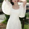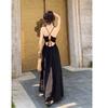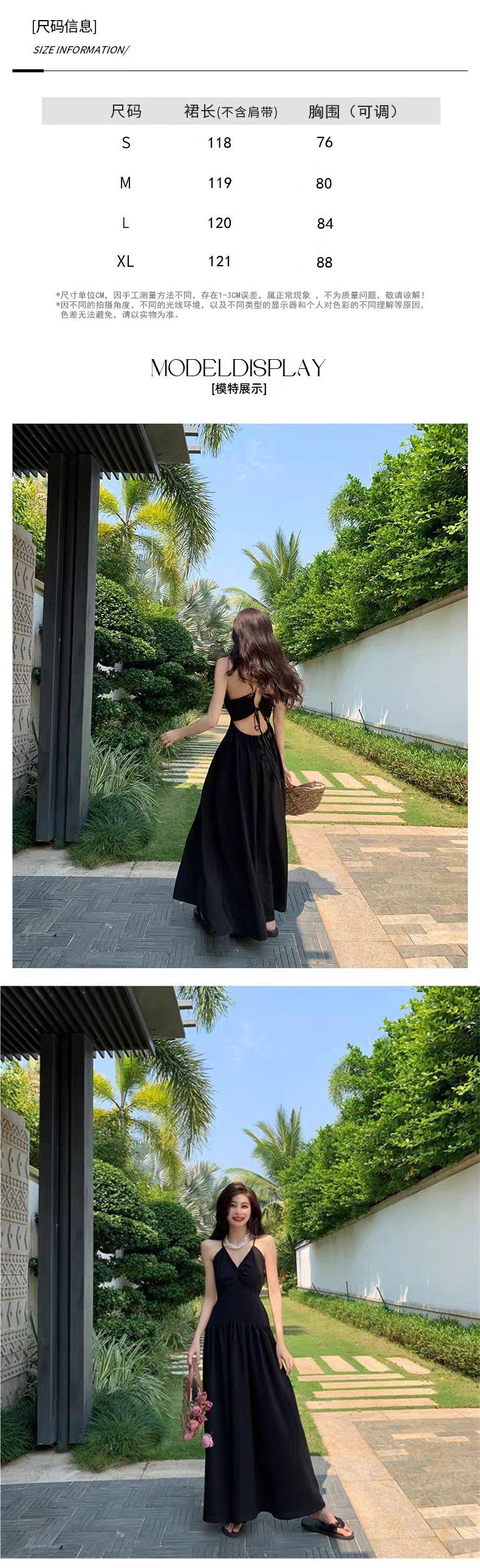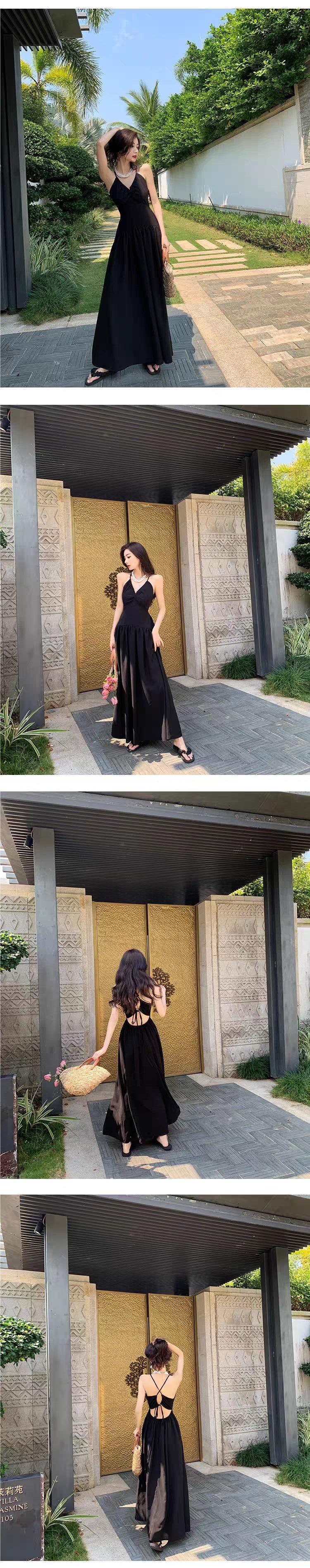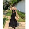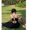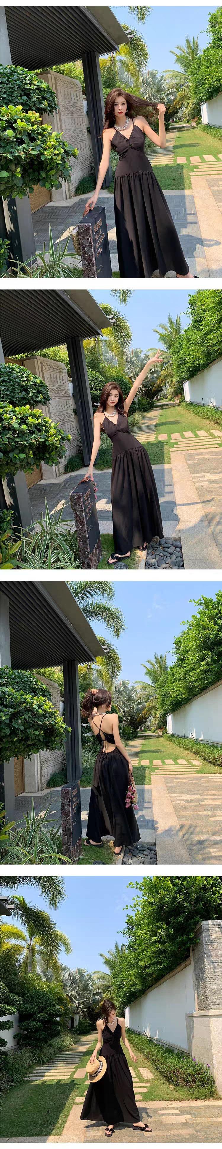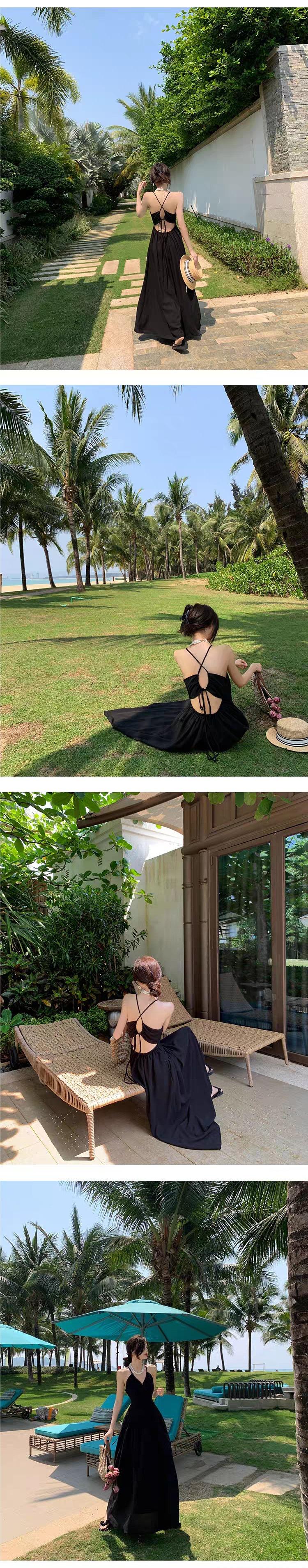 Vestido de playa textura sentido de alta gama té de la tarde estilo francés Hepburn vestido halter para vacaciones junto al mar mujeres verano nuevo