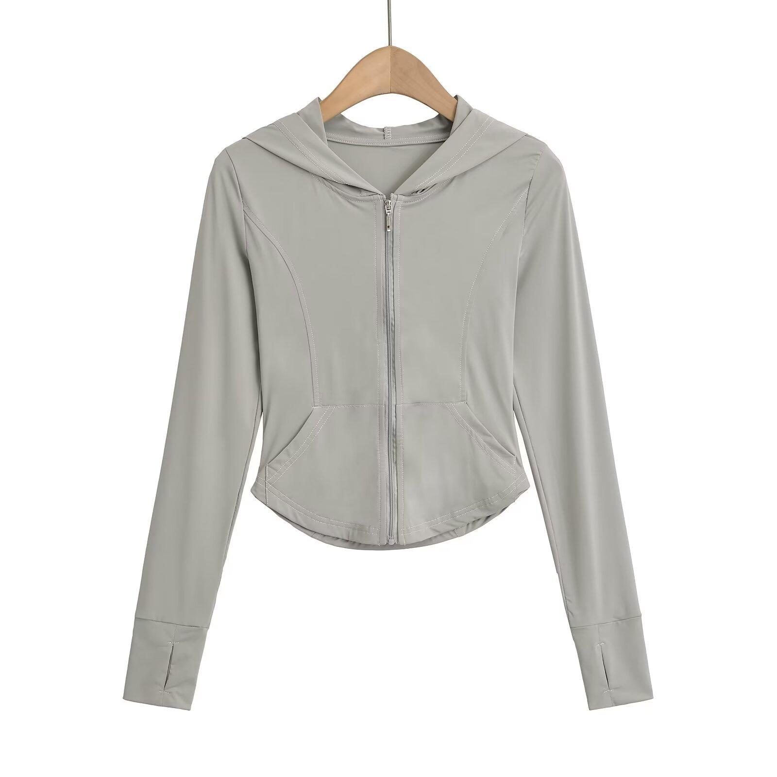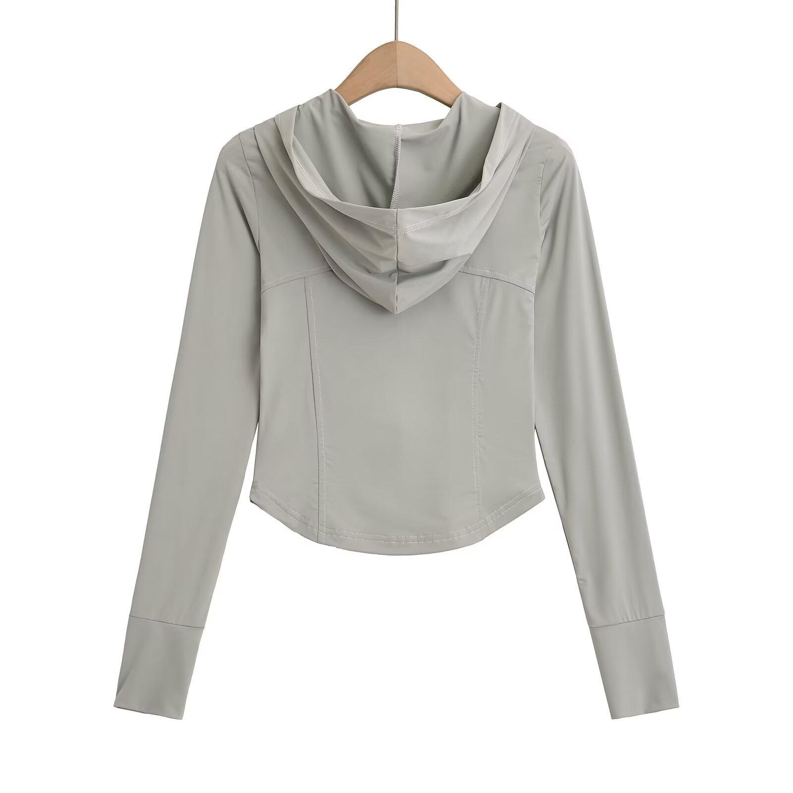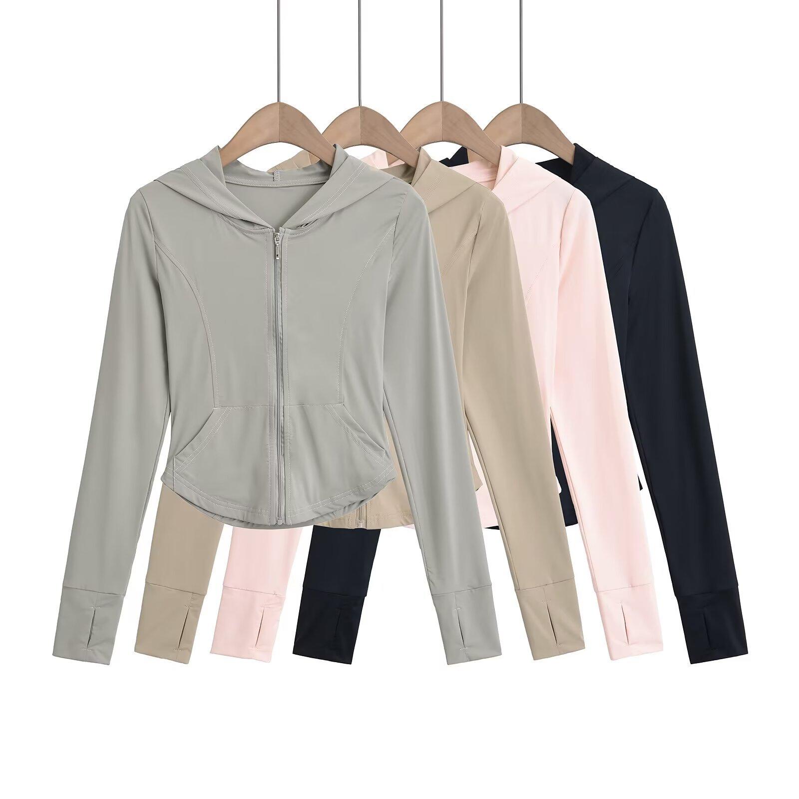 Ropa de Protección Solar de Seda de Hielo para Mujer Verano Slim Ropa de Yoga Abrigo Top Ajustado 2024 Nuevo Cárdigan Deportivo con Cremallera