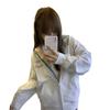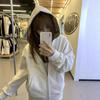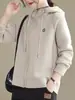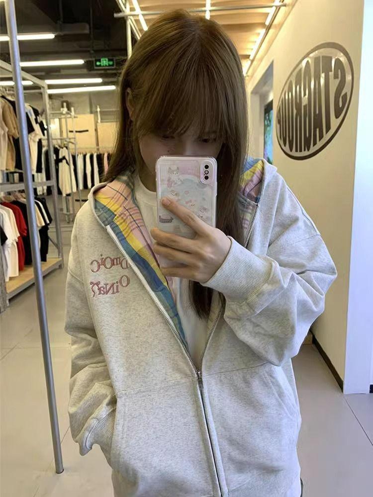 2025 nueva sudadera con capucha y cremallera color gris flor para mujer, primavera y otoño, holgada, extragrande, casual, versátil