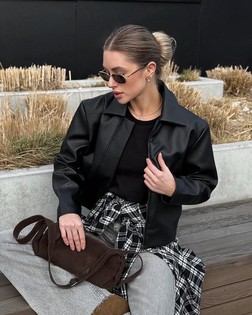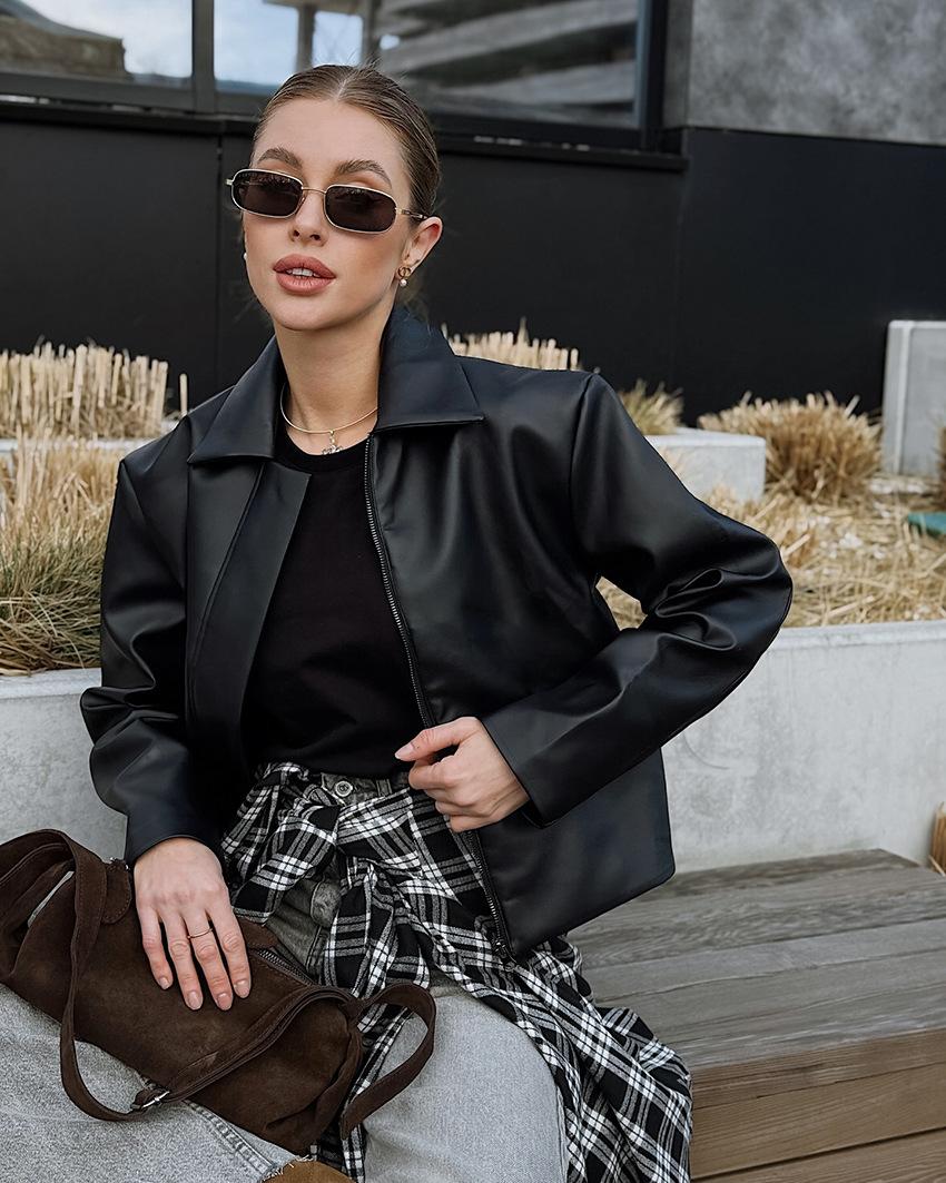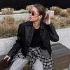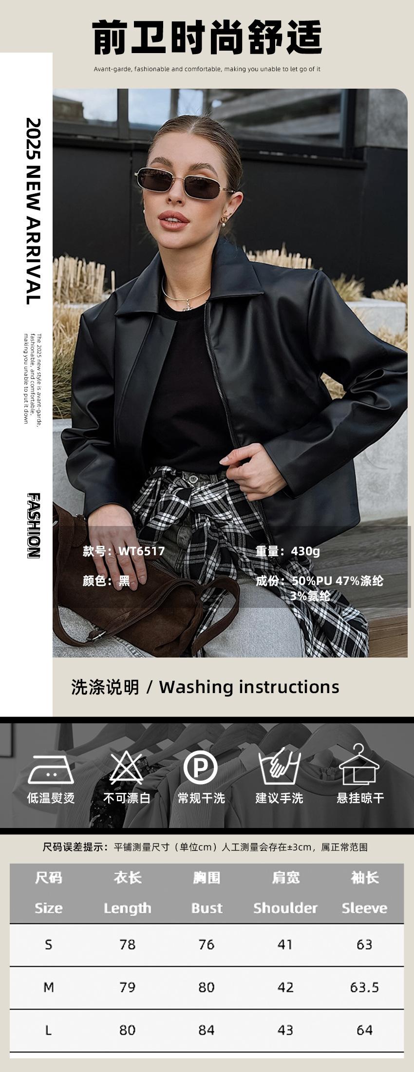 Chaqueta de cuero negra retro callejera europea y americana para mujer 2025 invierno de alta gama minimalista solapa abrigo de cuero PU ropa exterior ropa de mujer