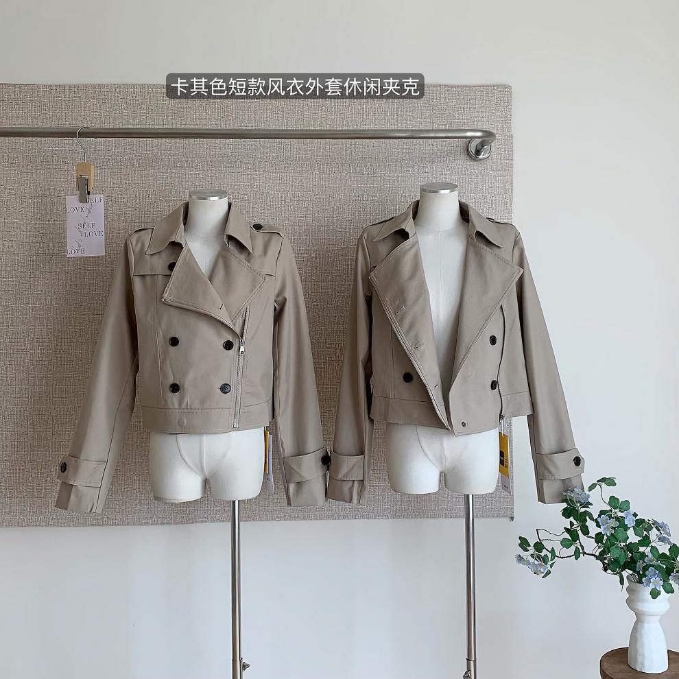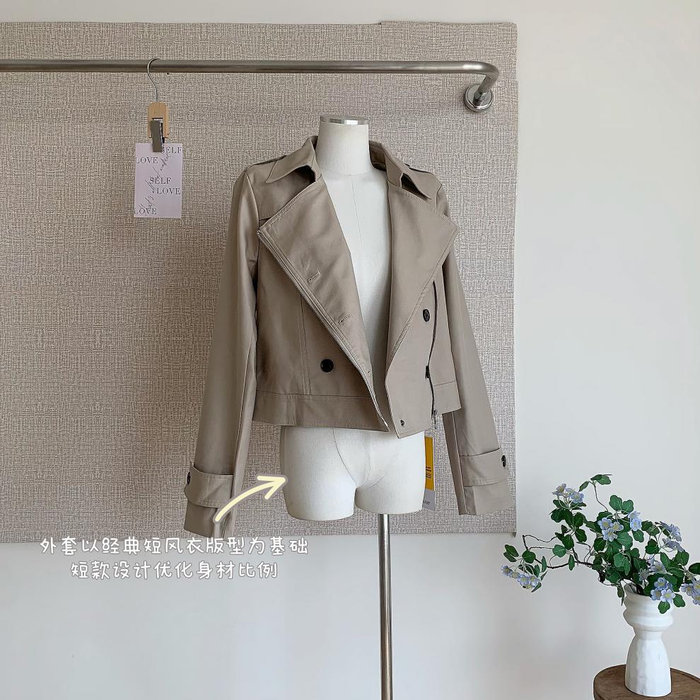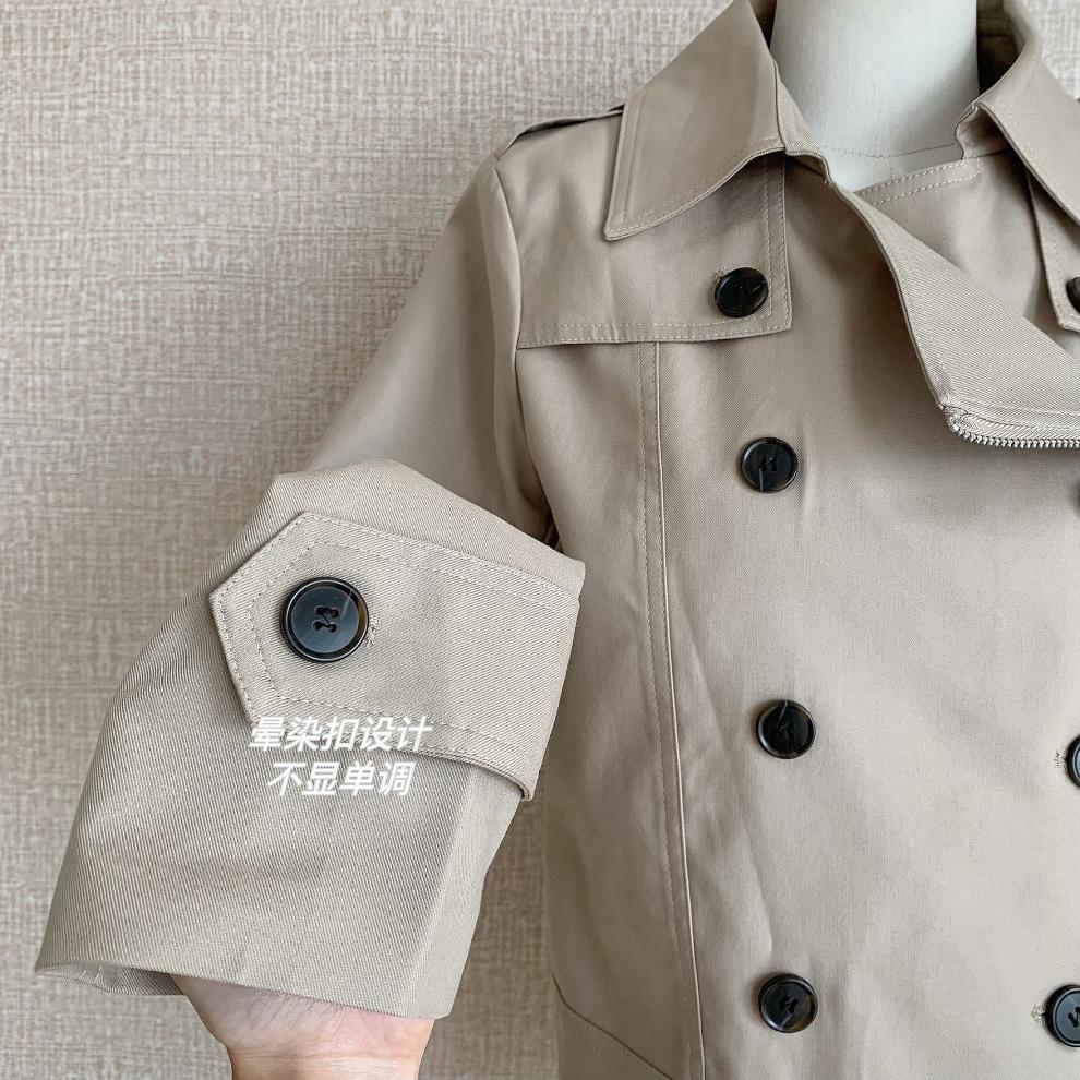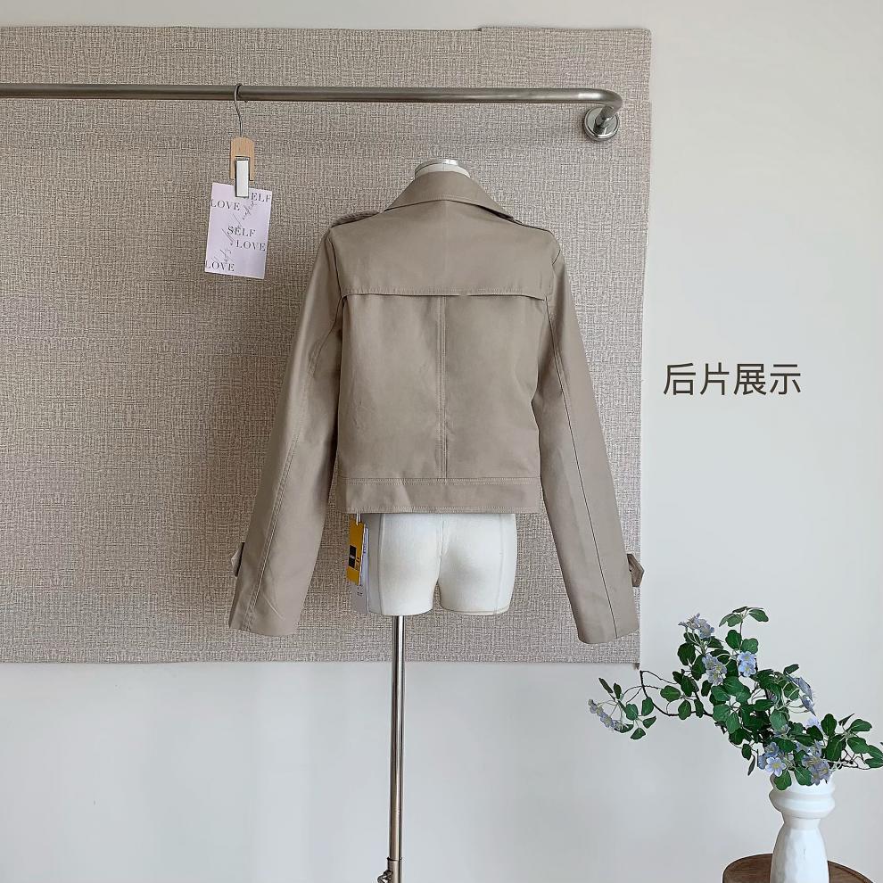 Abrigo corto tipo gabardina caqui mezcla de algodón Tencel para mujer, chaqueta casual favorecedora con temperamento, top para mujer