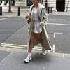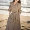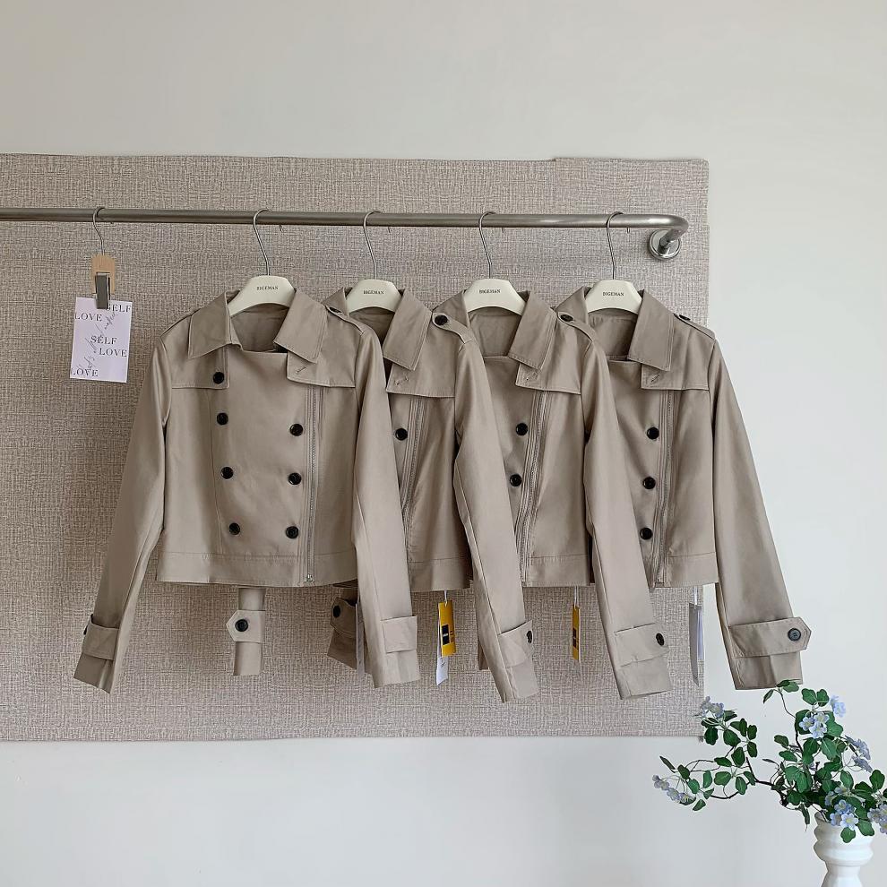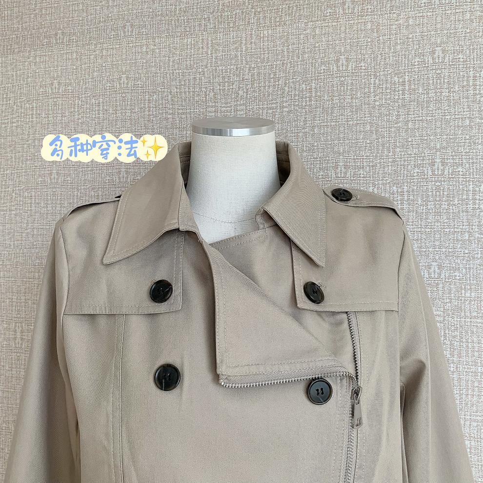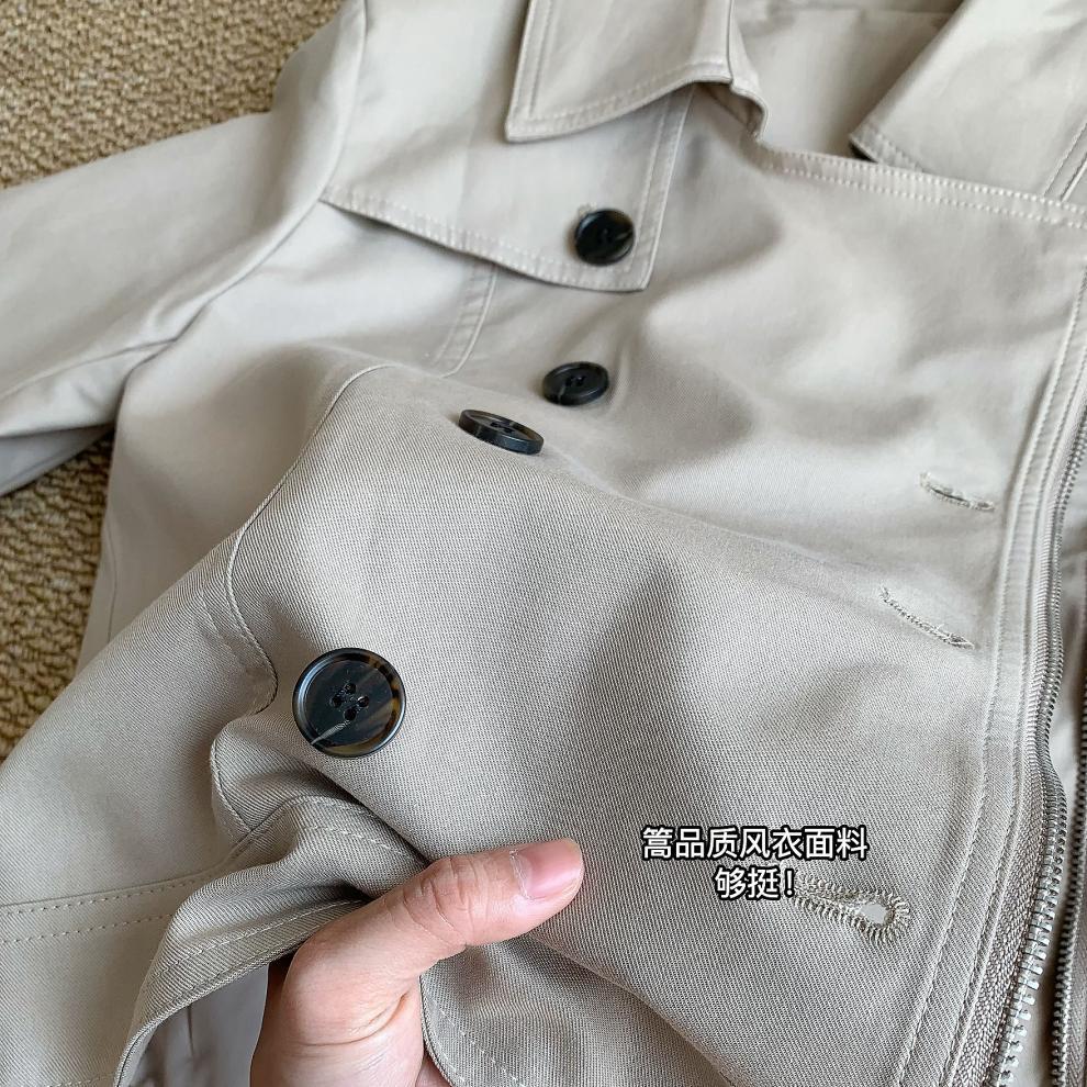 Abrigo corto tipo gabardina caqui mezcla de algodón Tencel para mujer, chaqueta casual favorecedora con temperamento, top para mujer
