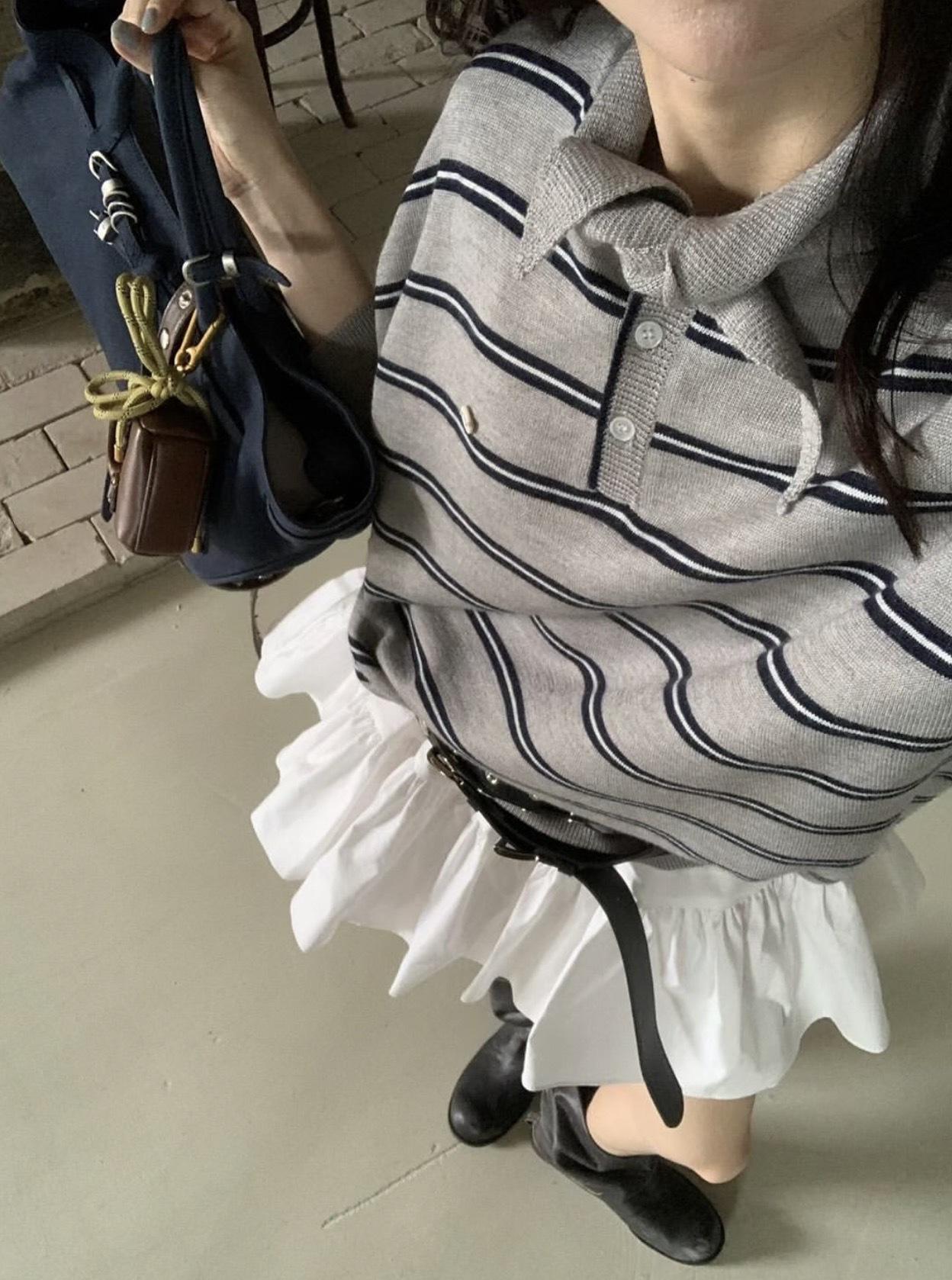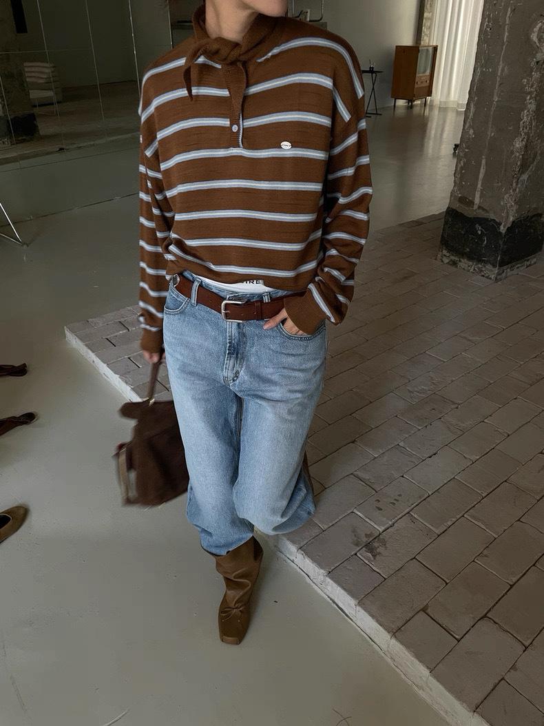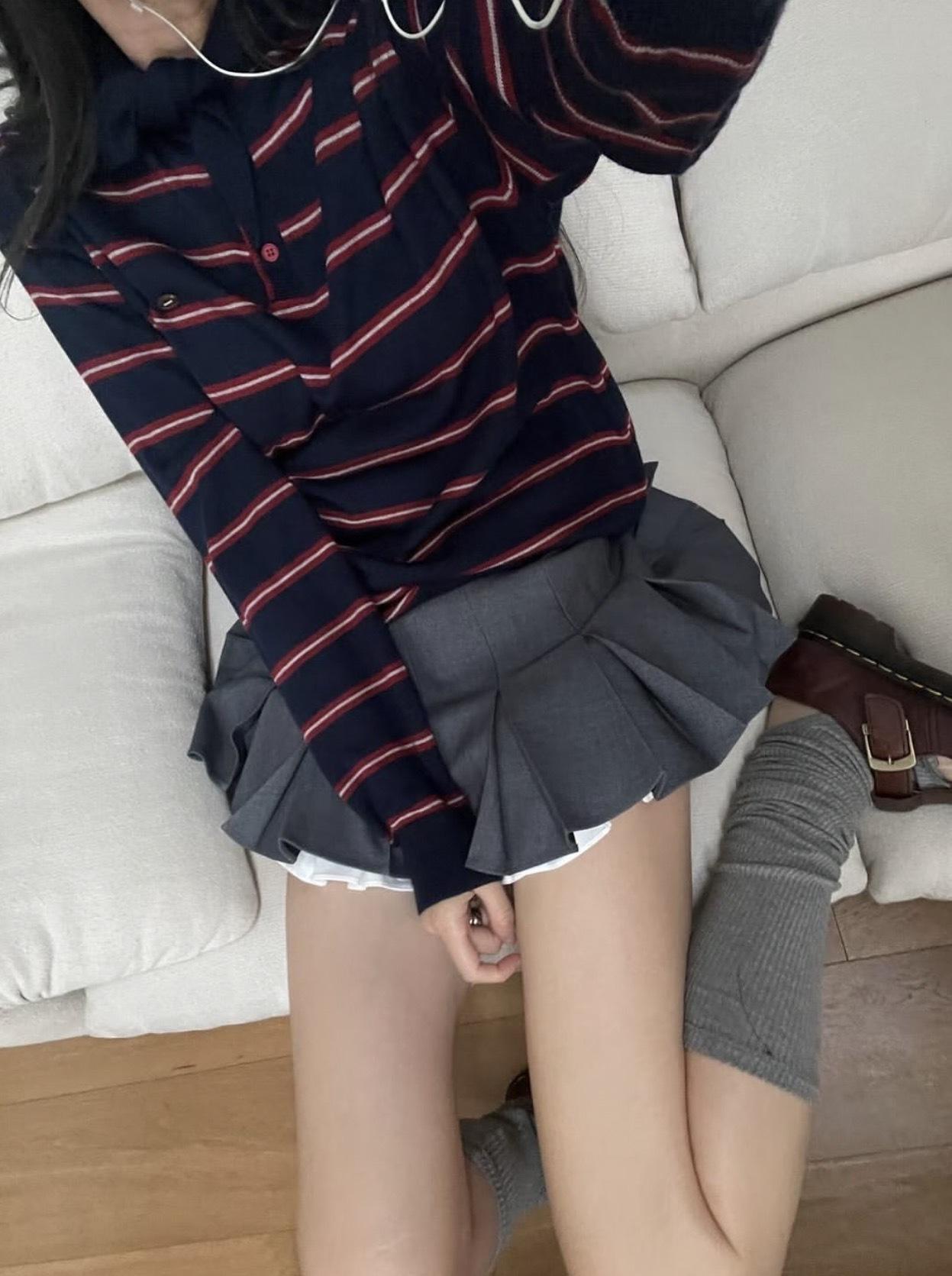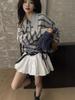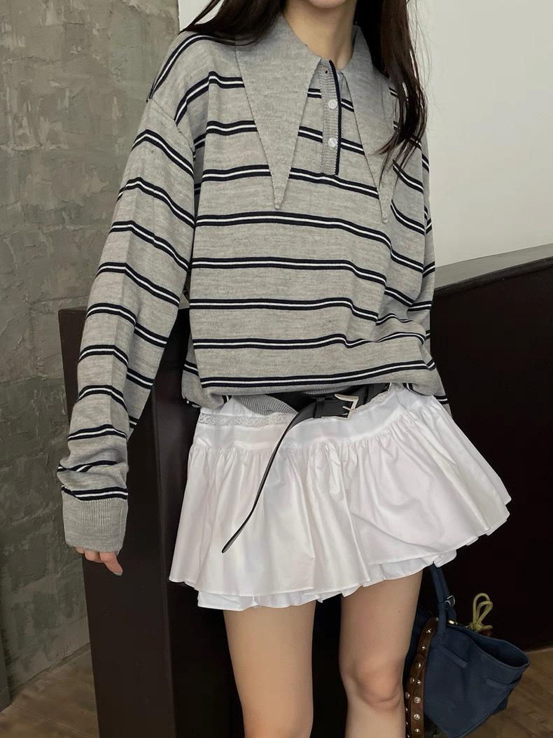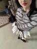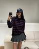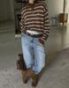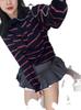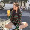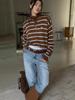 Punto chic coreano otoño nuevo retro a rayas abotonado cuello puntiagudo holgado perezoso manga larga prendas de punto ropa de mujer