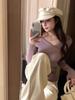 Top Morado de Cuello en V Estilo Coreano Manga Larga Tejido Cruzado Básico Nuevo para Primavera y Otoño Delgado Aspecto Adelgazante Suéter de Punto