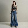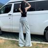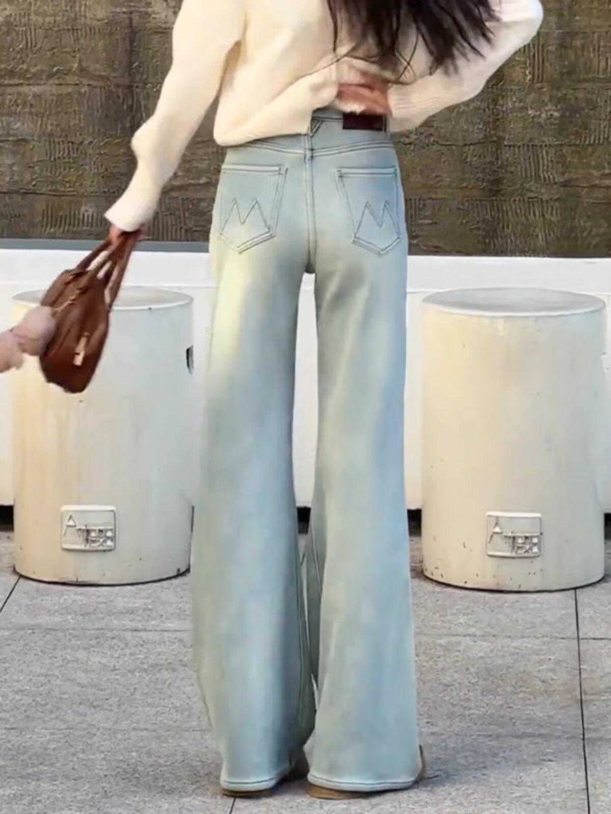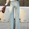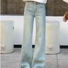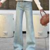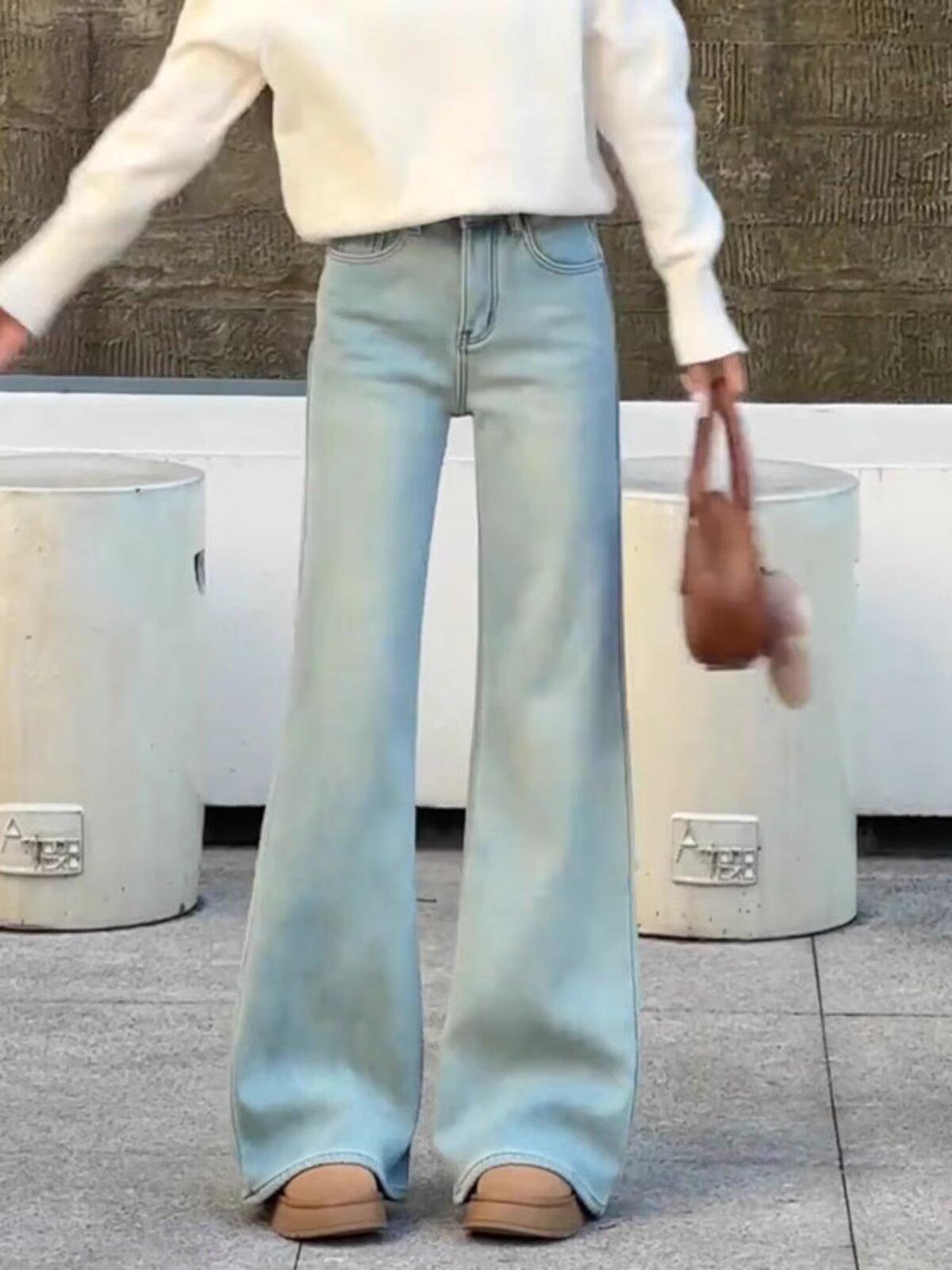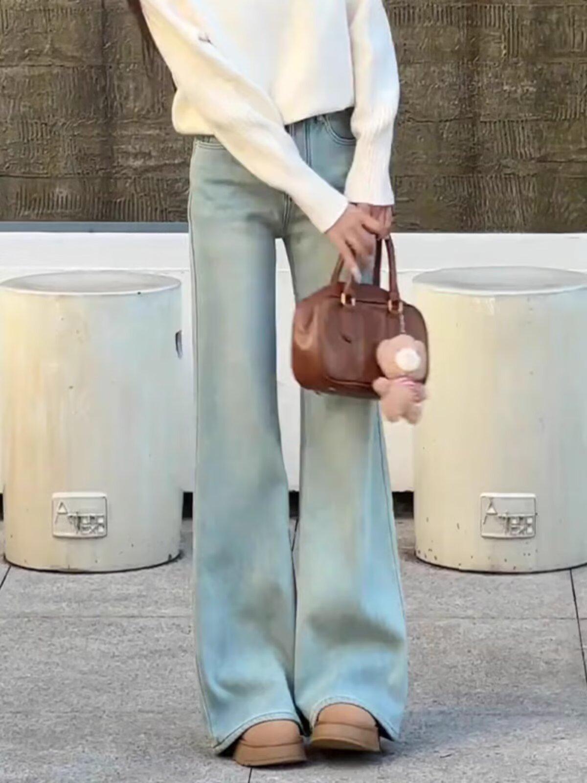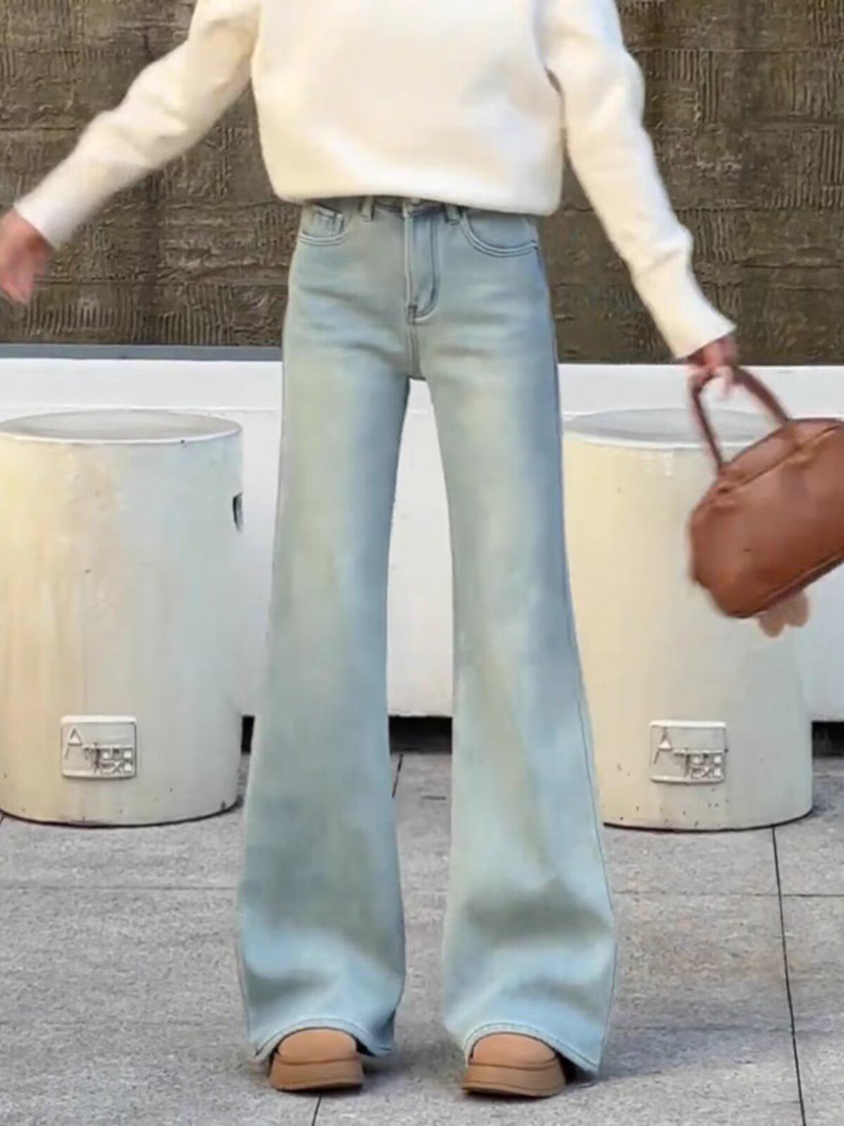 Jeans Acampanados Versátiles de Color Claro para Mujer Verano 2025 Delgados Sueltos Adelgazantes No se Pegan a la Pierna Caída Largo hasta el Piso
