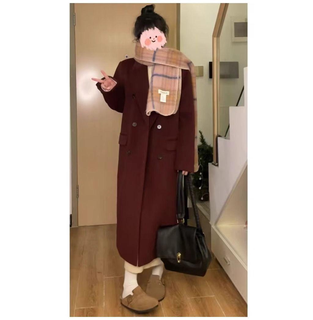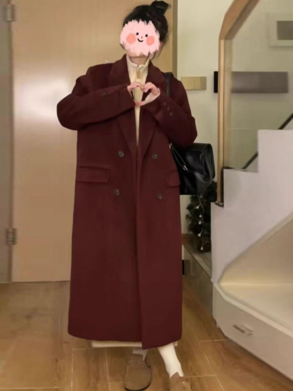Abrigo de Lana para Mujer 2025 Otoño e Invierno Nuevo de Alta Gama Estilo Coreano Petite Estilo Hepburn Abrigo de Lana Engrosado