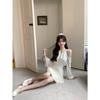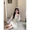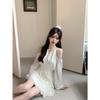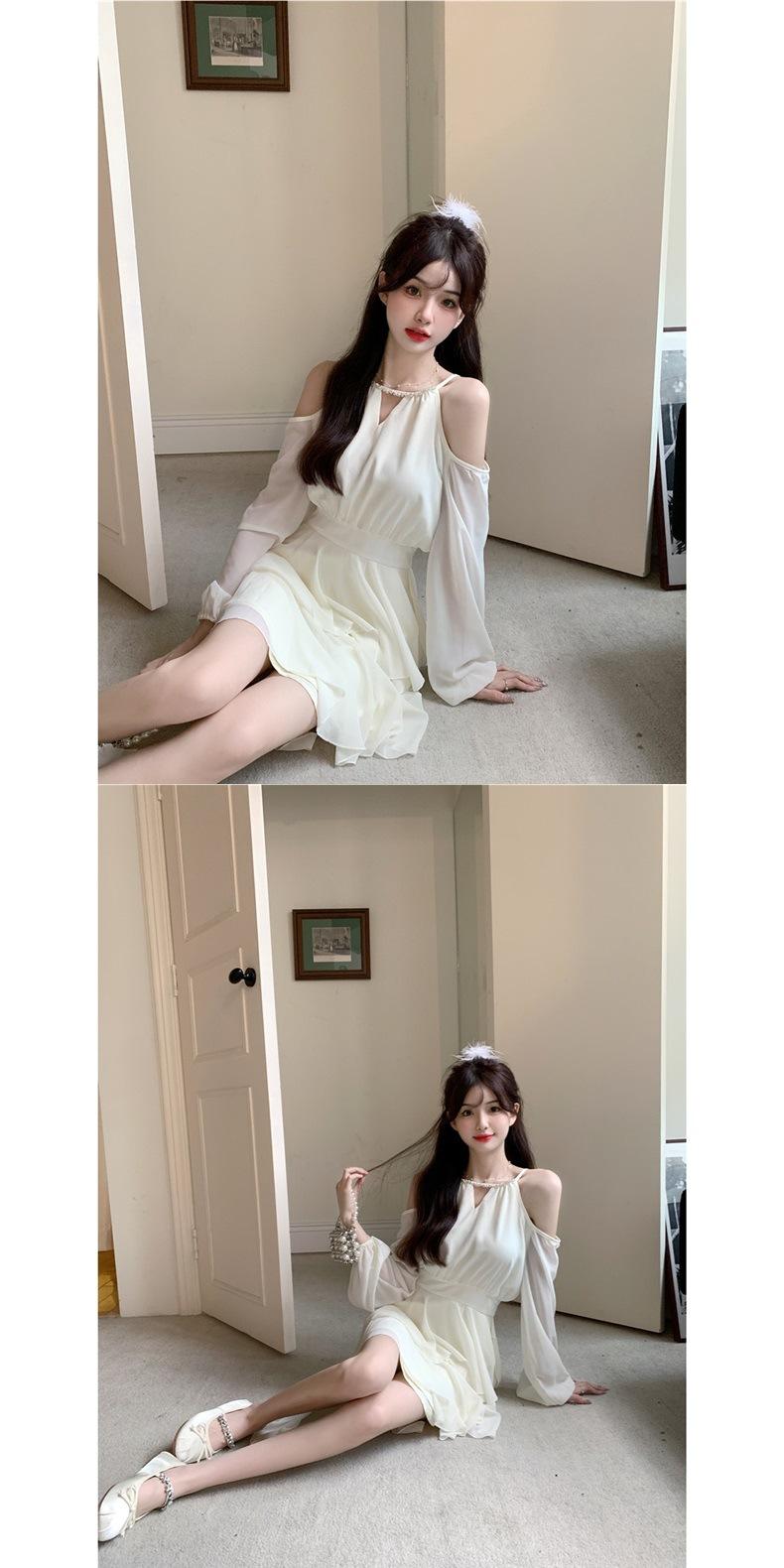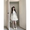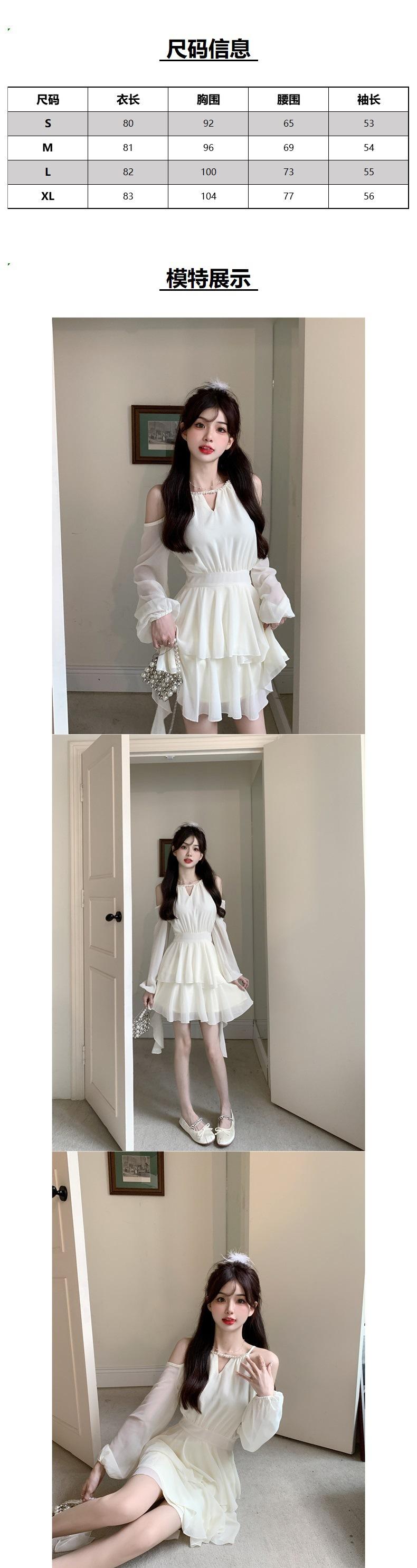 Nuevo Vestido Francés de Manga Larga Talla Grande Primavera/Verano Cintura de Hada Recogida Dulce Chifón Falda Corta Volantes Vestido de Pastel