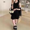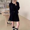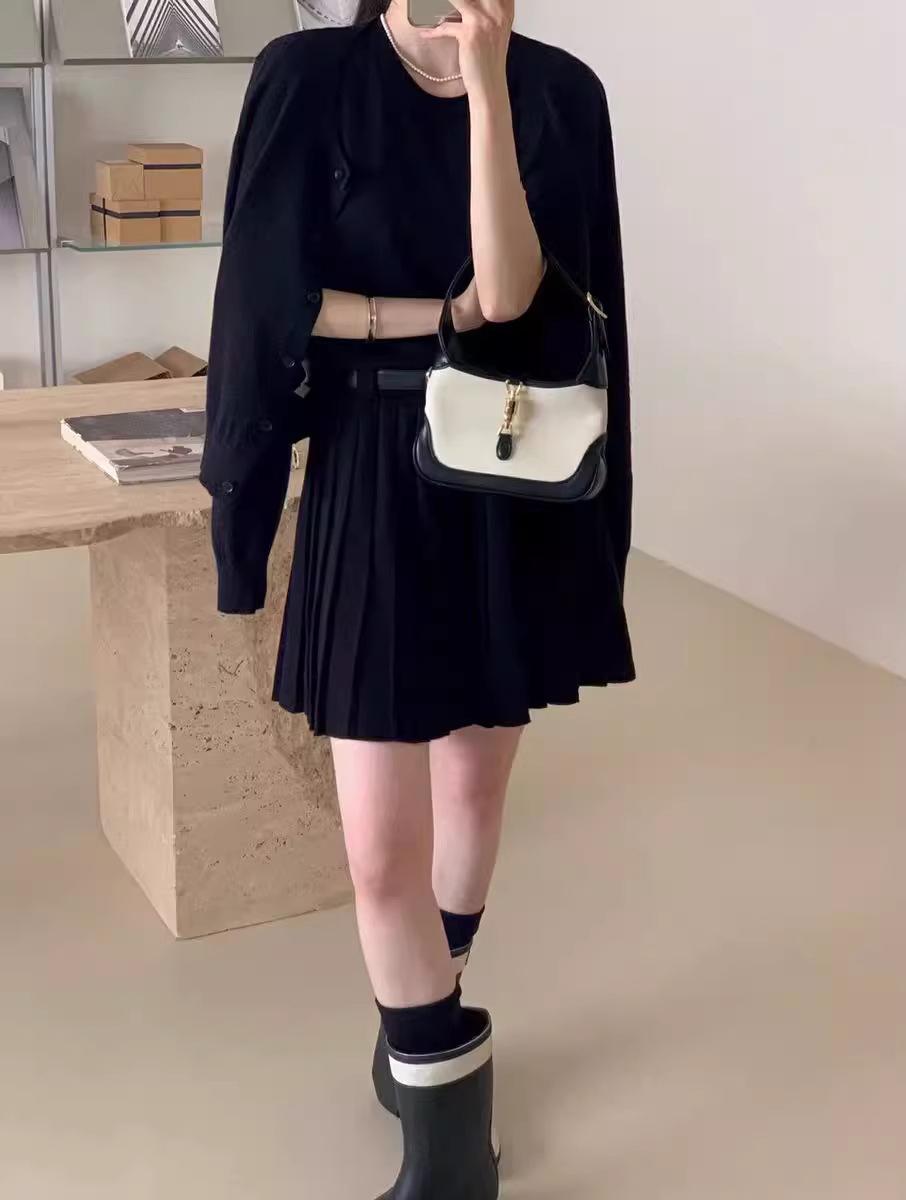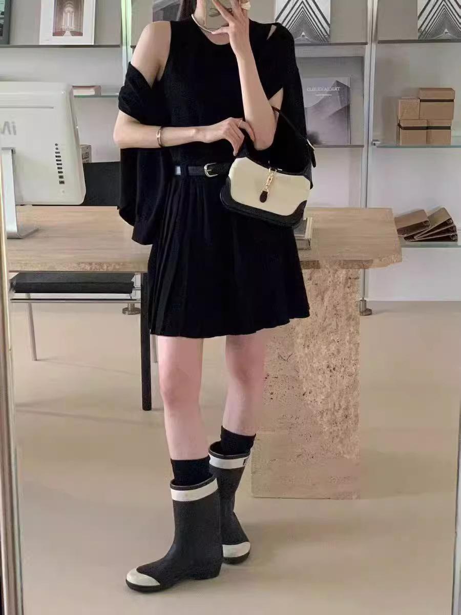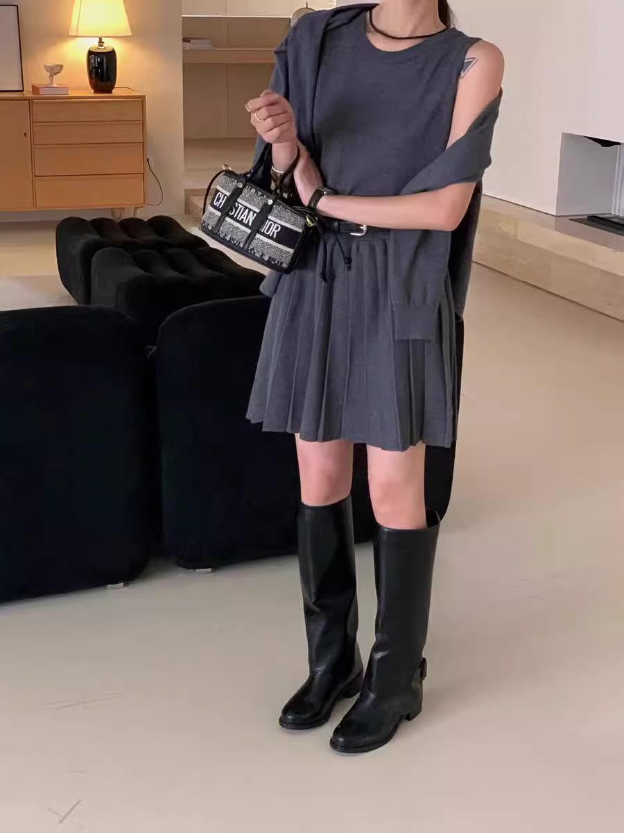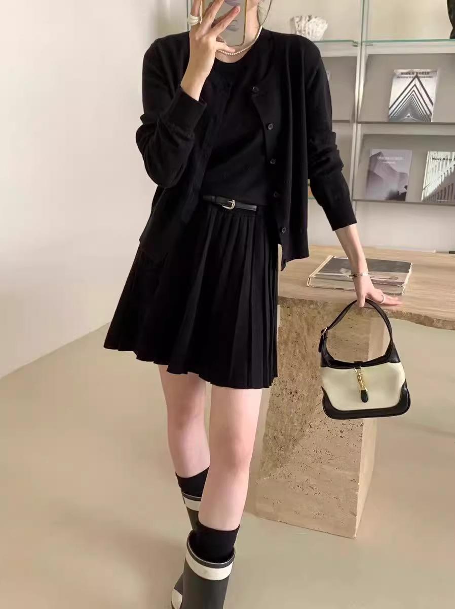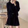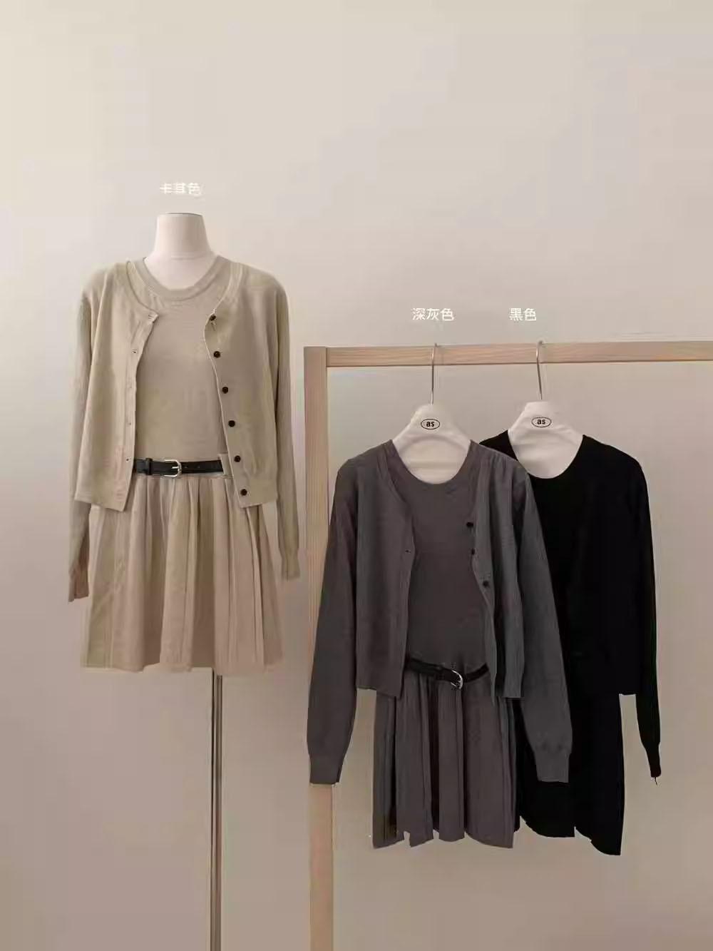 Vestido Corto sin Mangas Cárdigan de Punto Conjunto de Dos Piezas Moda Petite Estilo Coreano Abrigo Suéter Conjunto de Falda Plisada