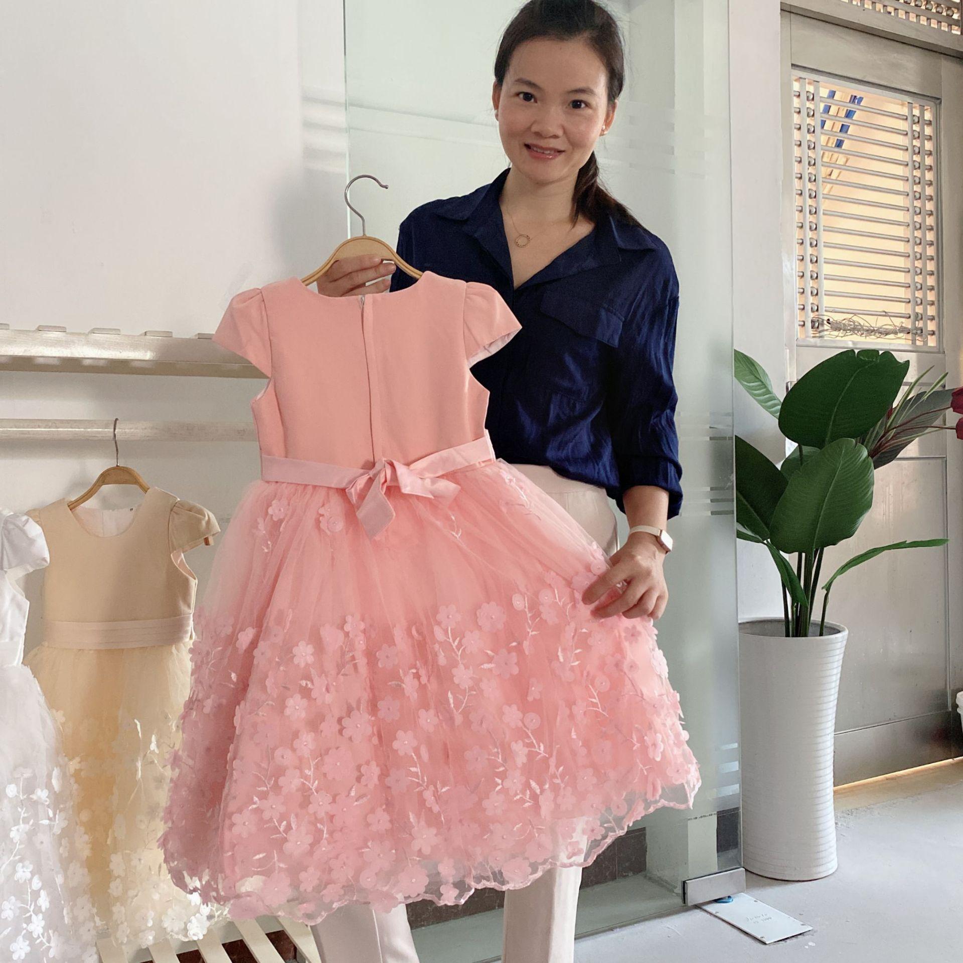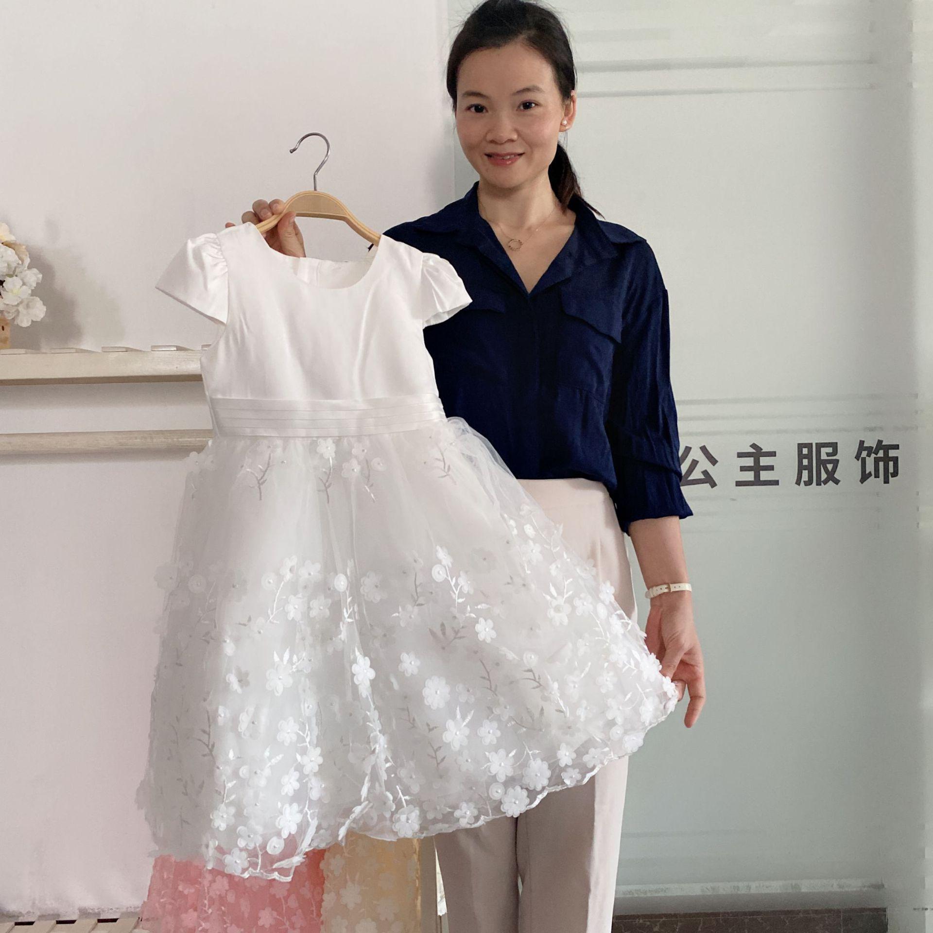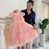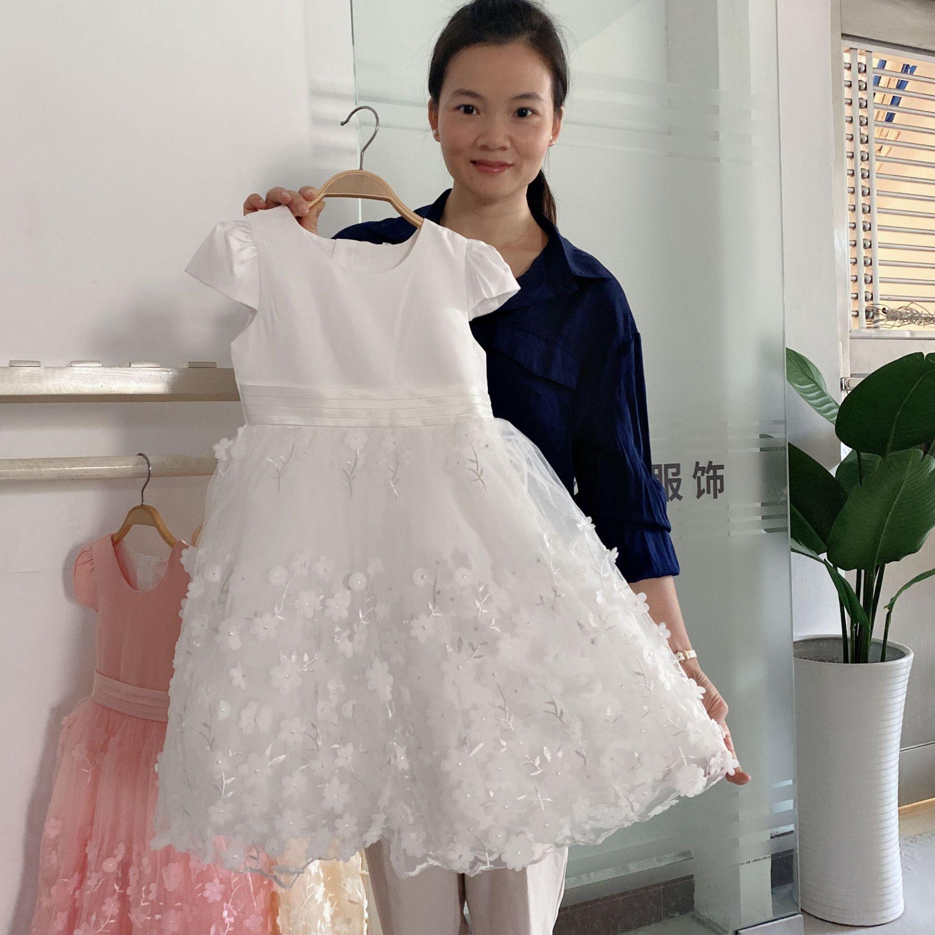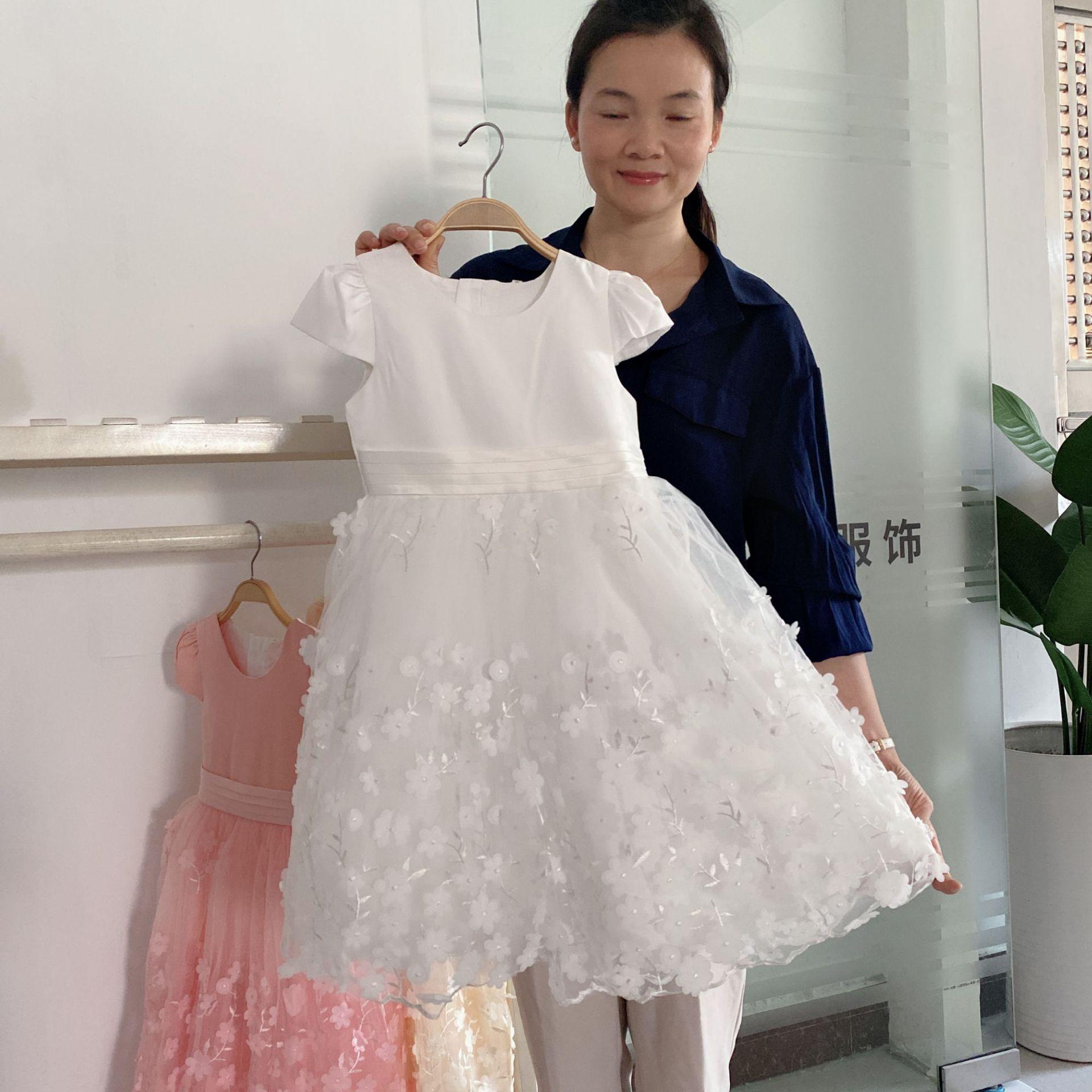 Vestido de gasa blanca para niña Vestido de malla estilo coreano para niña mediana y grande Traje de piano Vestido de princesa abullonado para niña