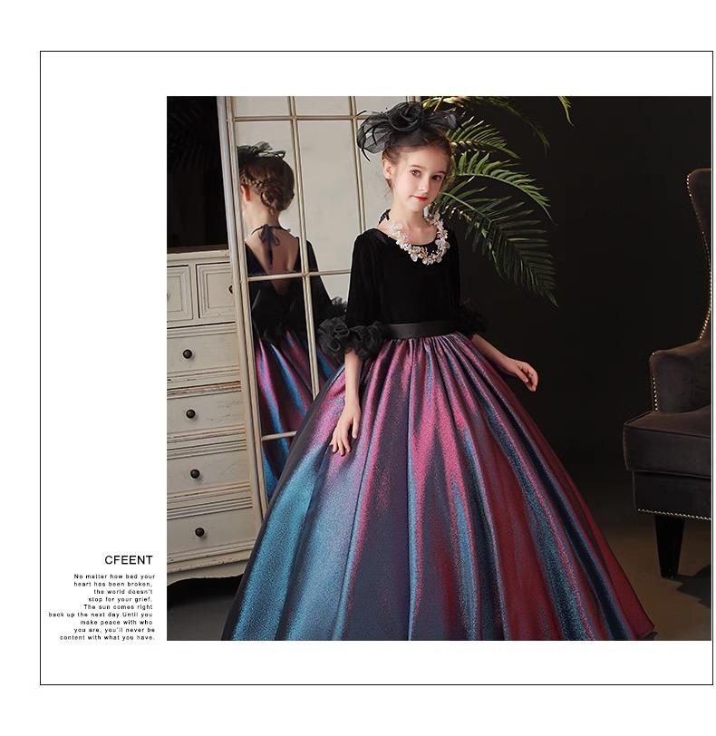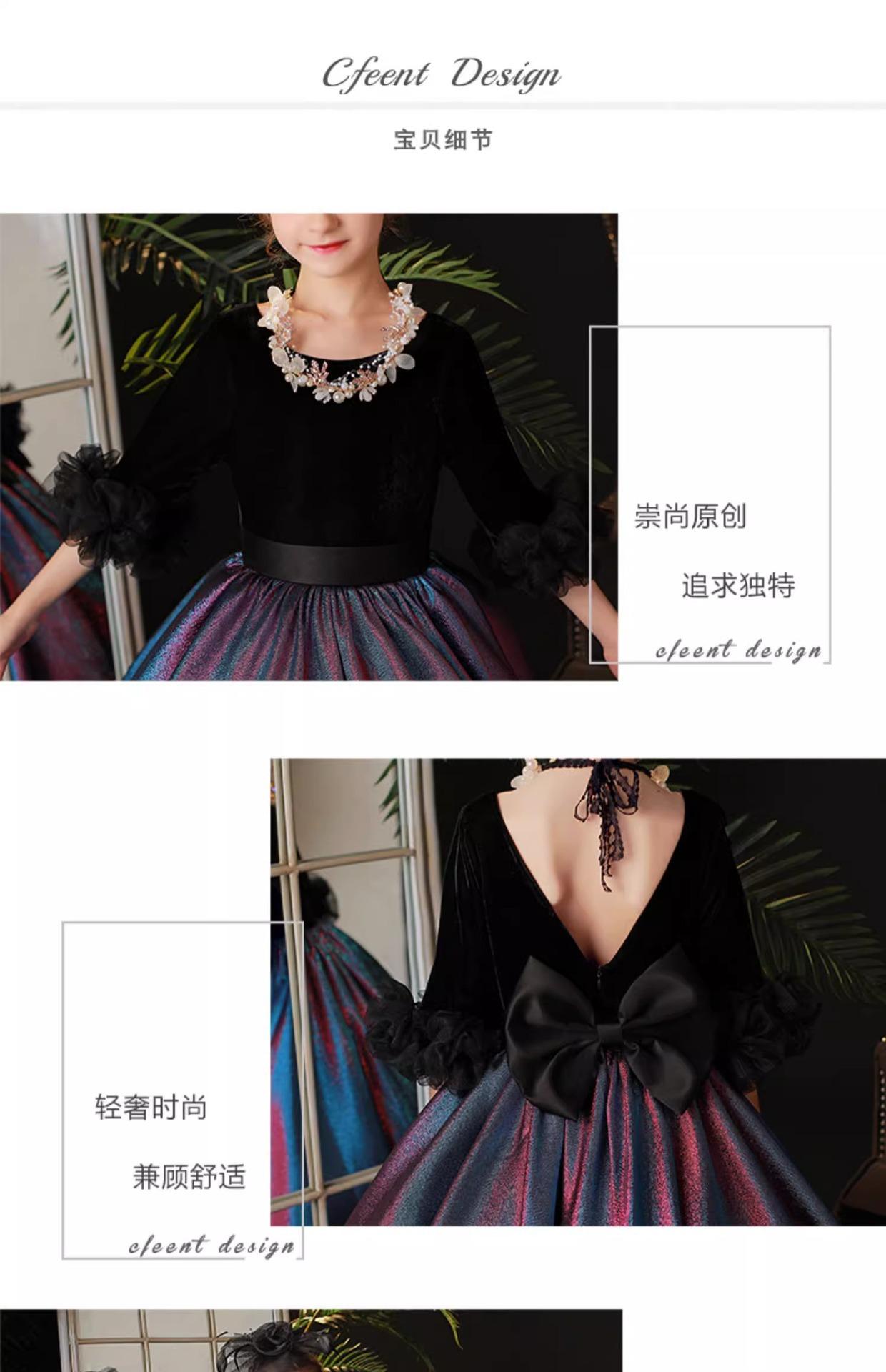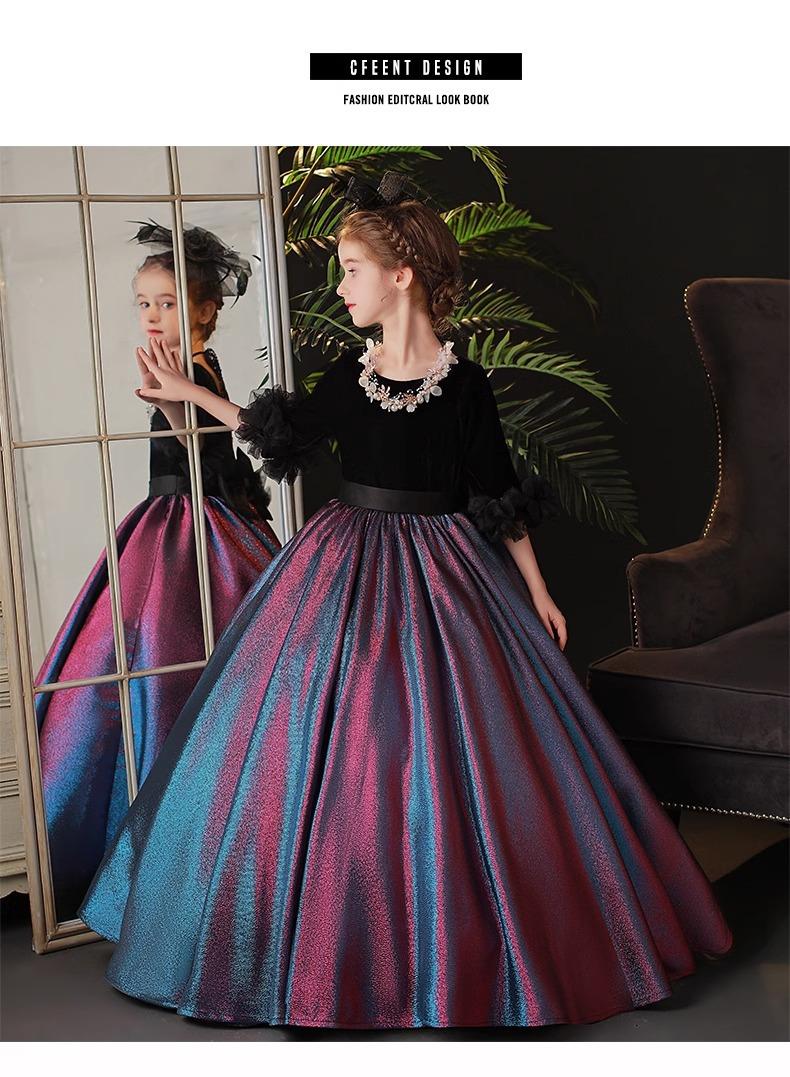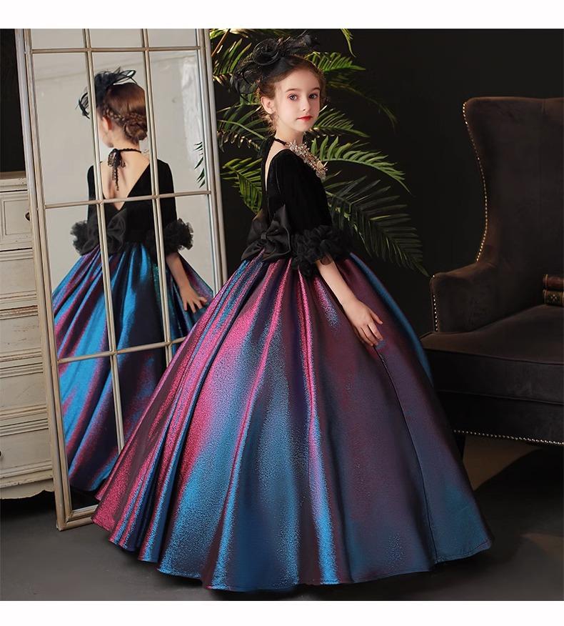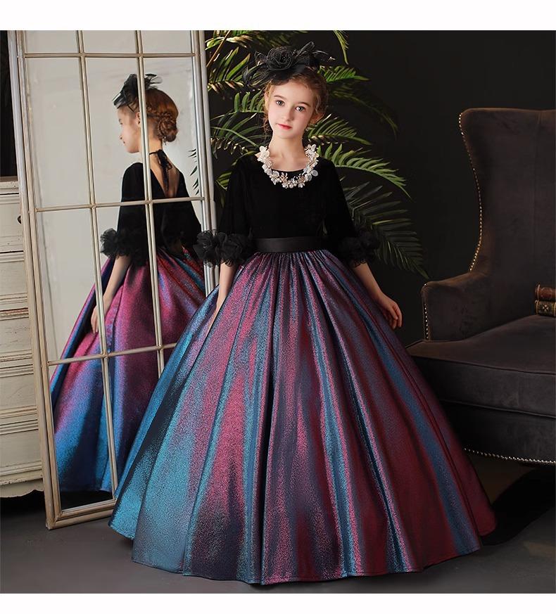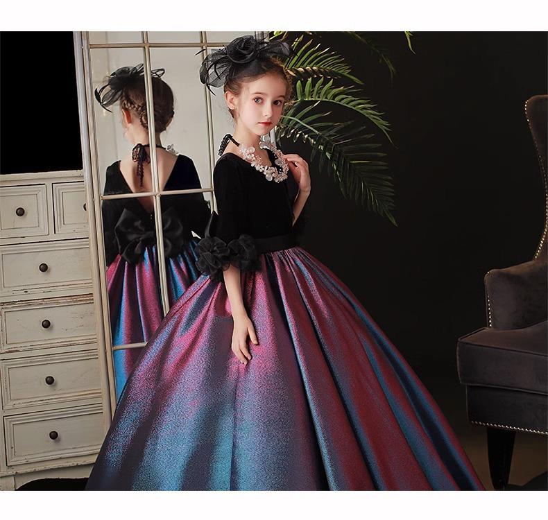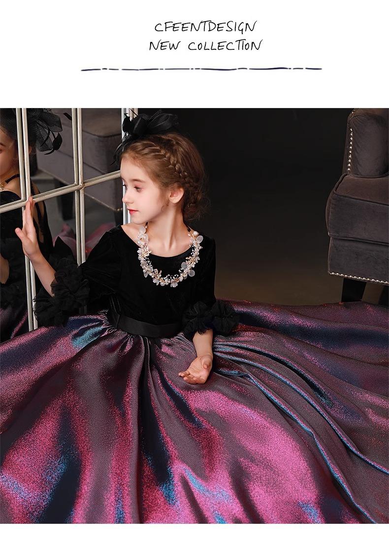 Vestido de Niña 2025 Vestido Tutú de Princesa Elsa de Manga Larga Elegante Negro Vestido para Niña Grande Pasarela Vestido de Princesa para Niños