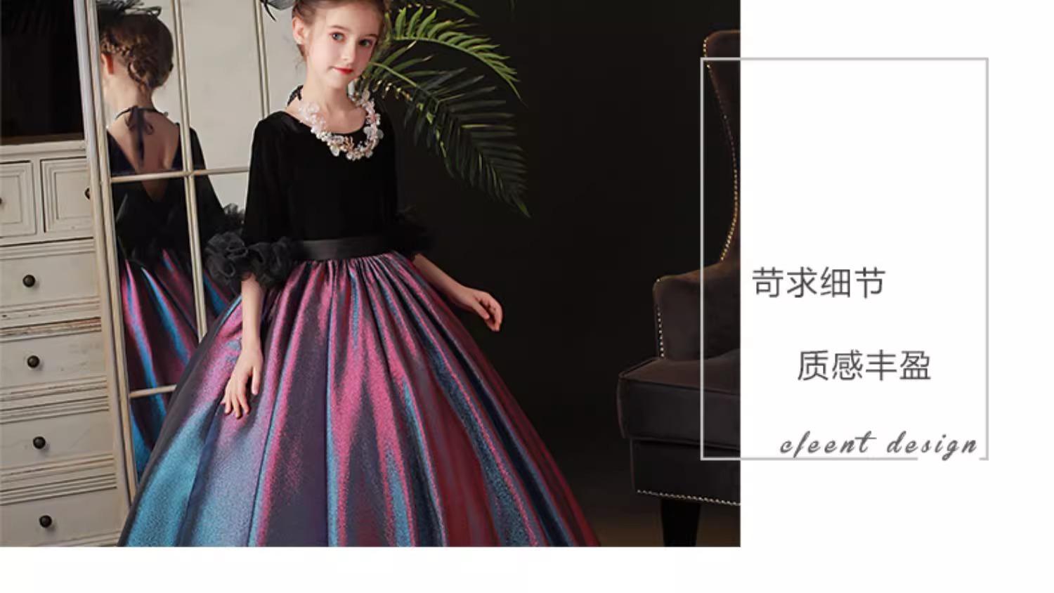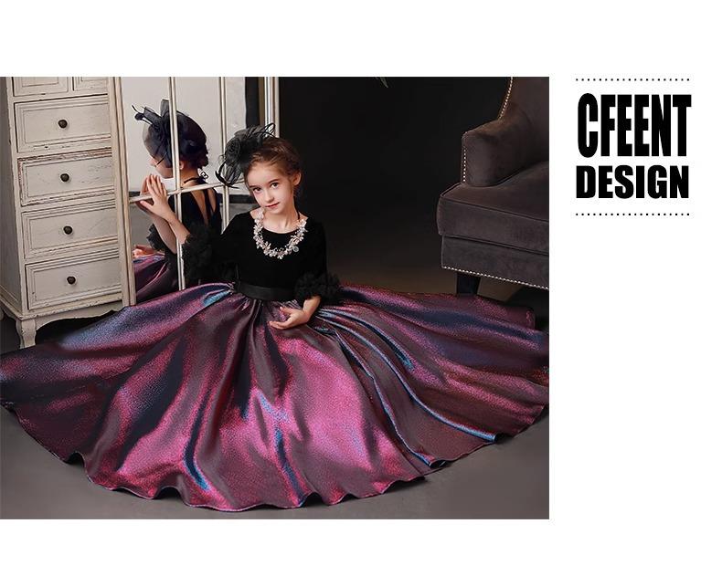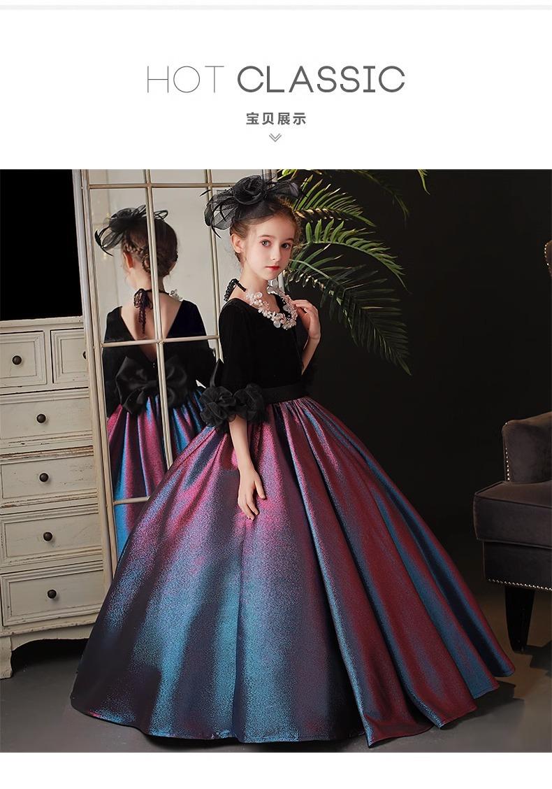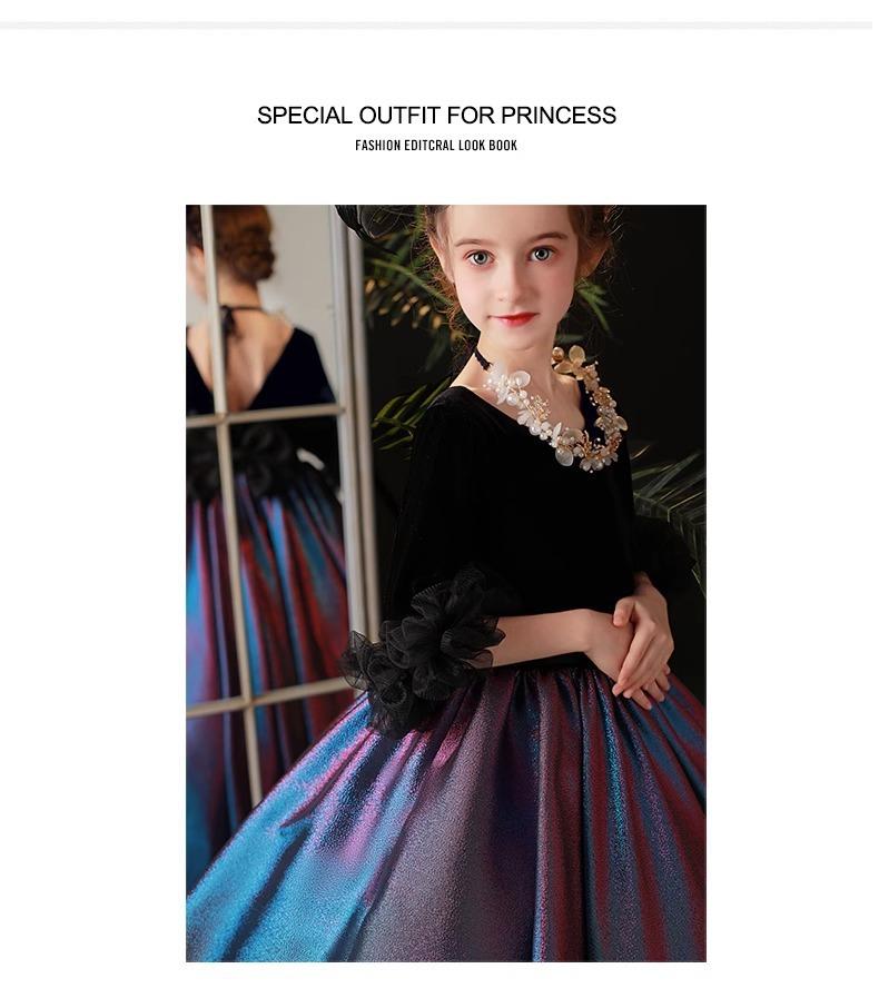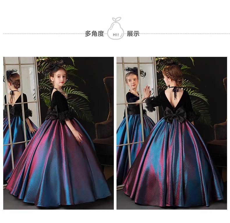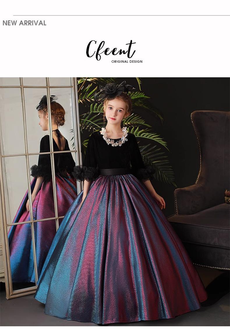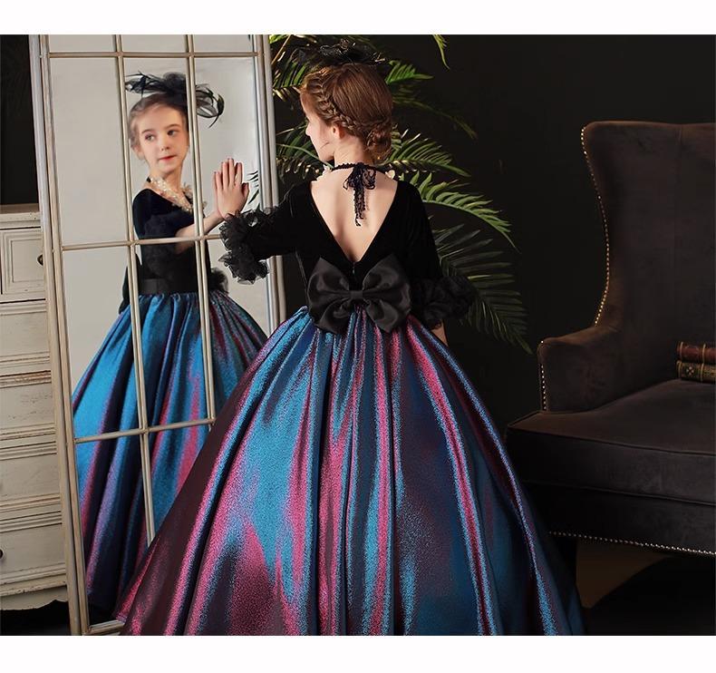 Vestido de Niña 2025 Vestido Tutú de Princesa Elsa de Manga Larga Elegante Negro Vestido para Niña Grande Pasarela Vestido de Princesa para Niños