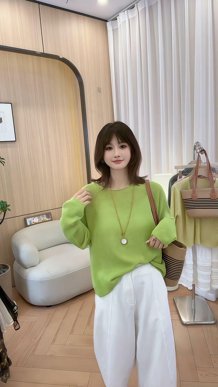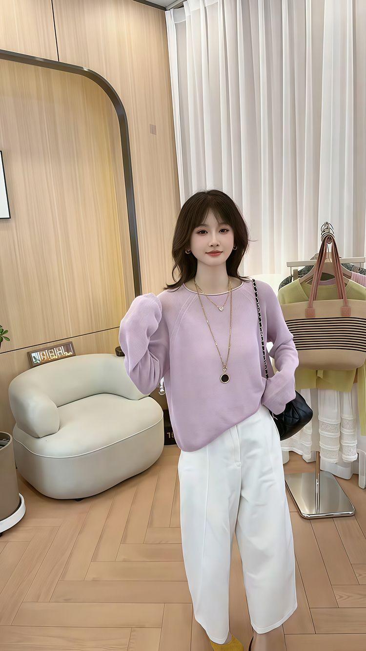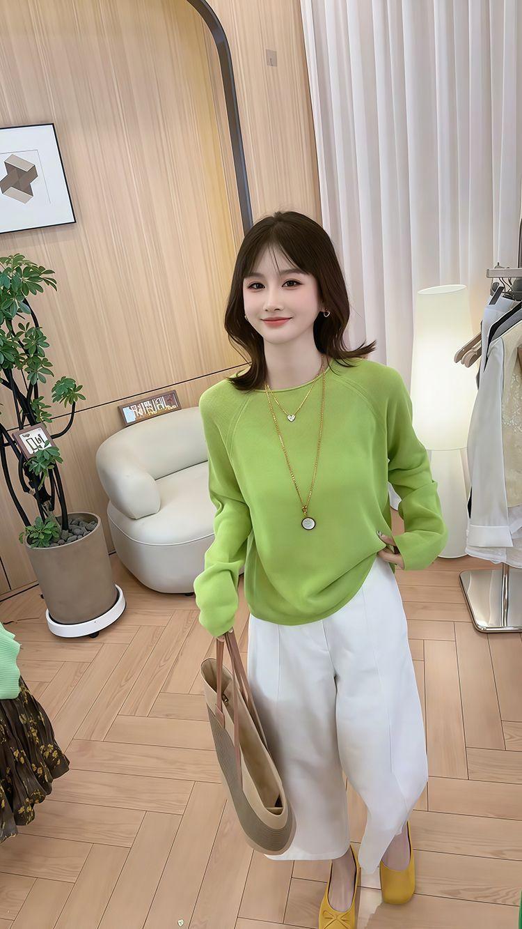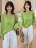 Blusa de Punto de Color Caramelo de Moda con Protección Solar 2025 Primavera y Verano Nuevo Estilo Coreano Versátil Holgada con Aspecto Adelgazante Top para Mujer