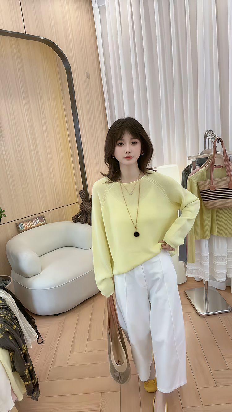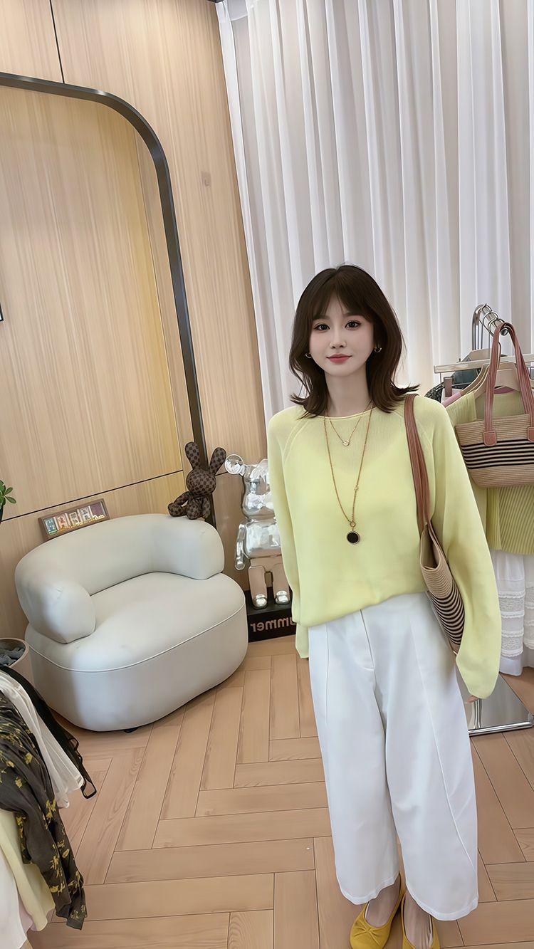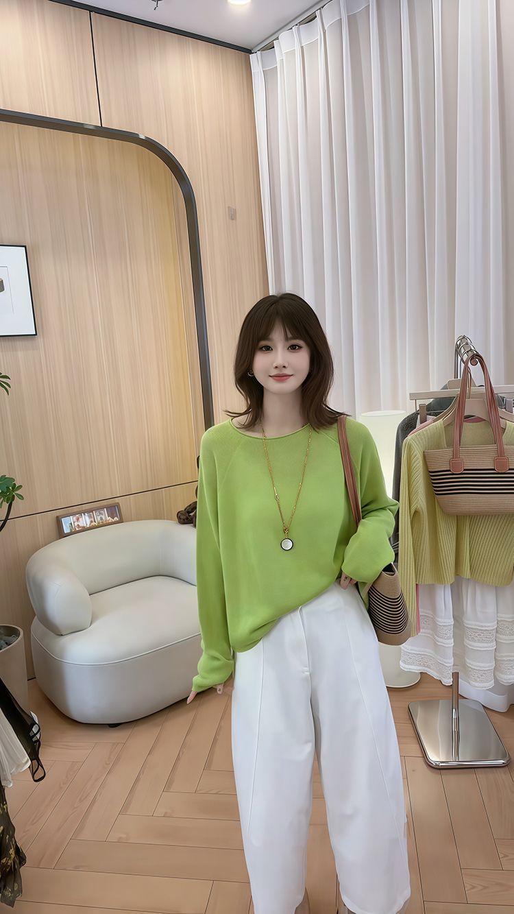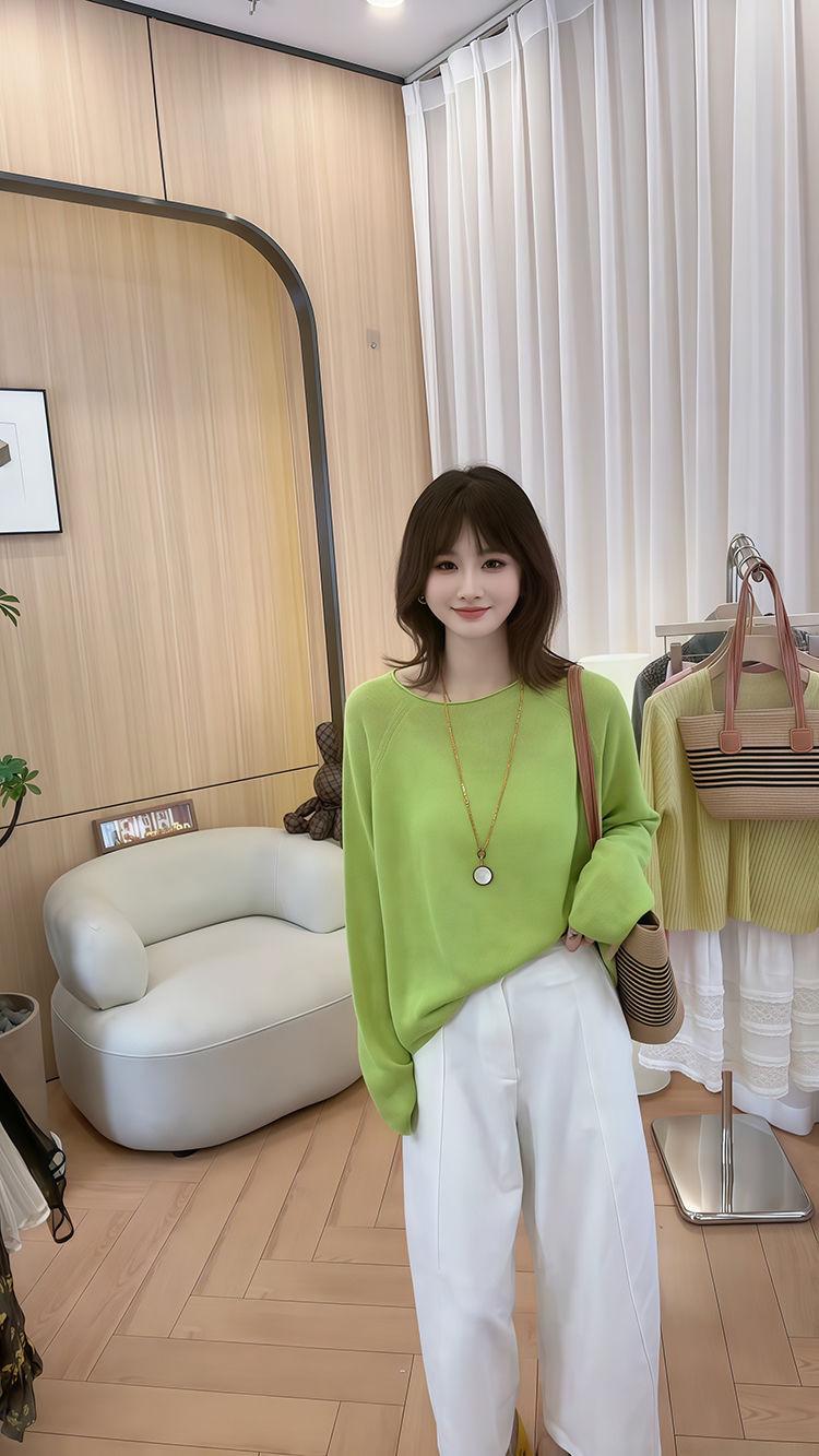 Blusa de Punto de Color Caramelo de Moda con Protección Solar 2025 Primavera y Verano Nuevo Estilo Coreano Versátil Holgada con Aspecto Adelgazante Top para Mujer
