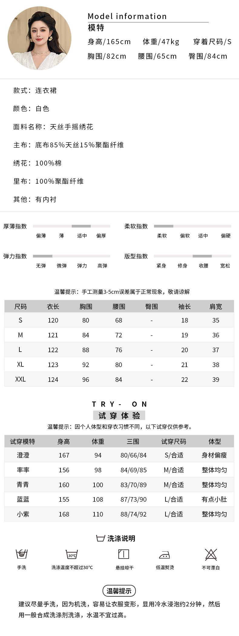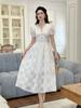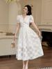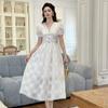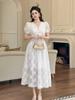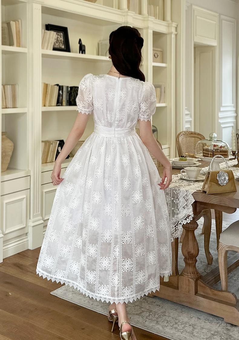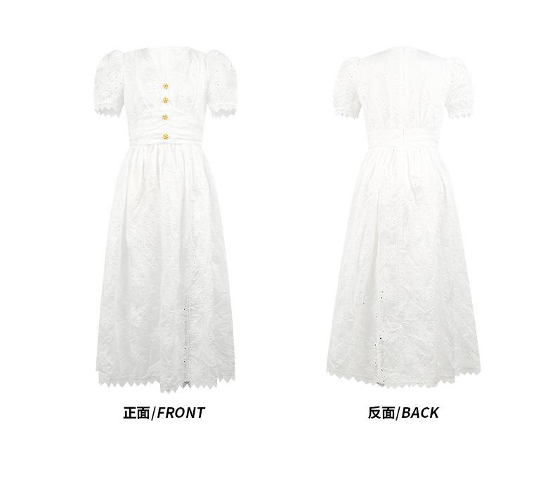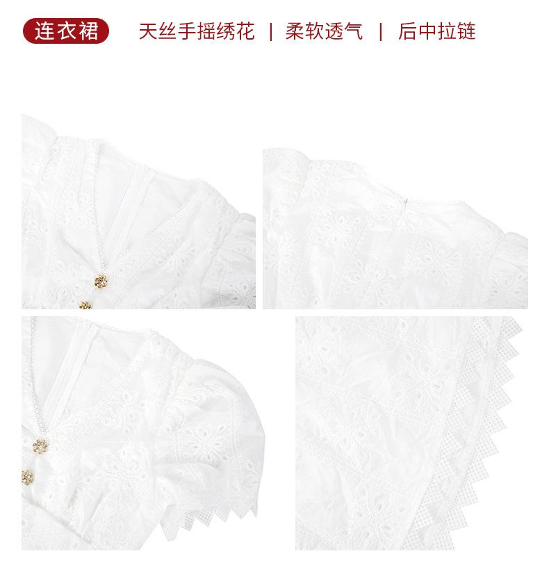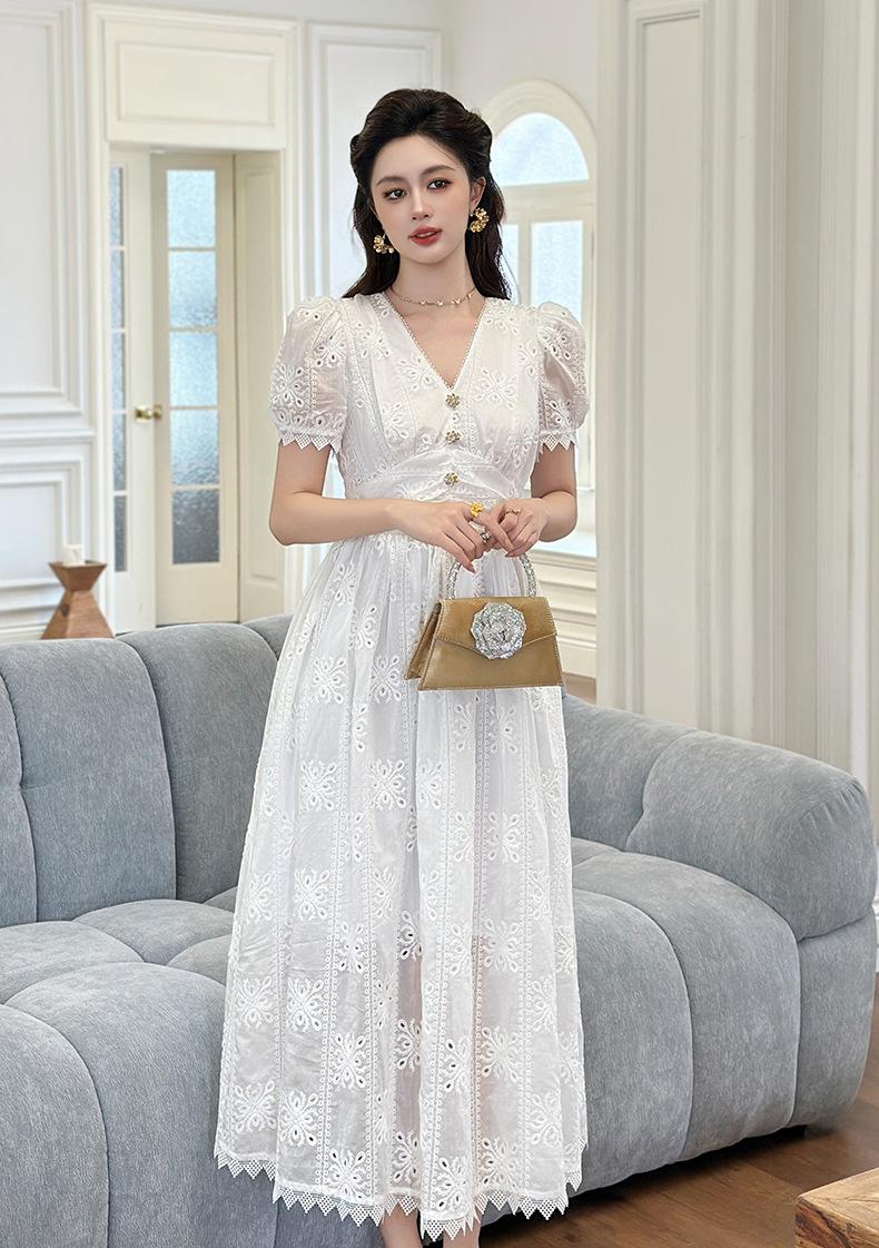 Verano Nuevo Temperamento Francés para Mujer Cuello en V Entallado Vestido de Encaje Blanco Estilo Gentil Vestido de Hada 45223