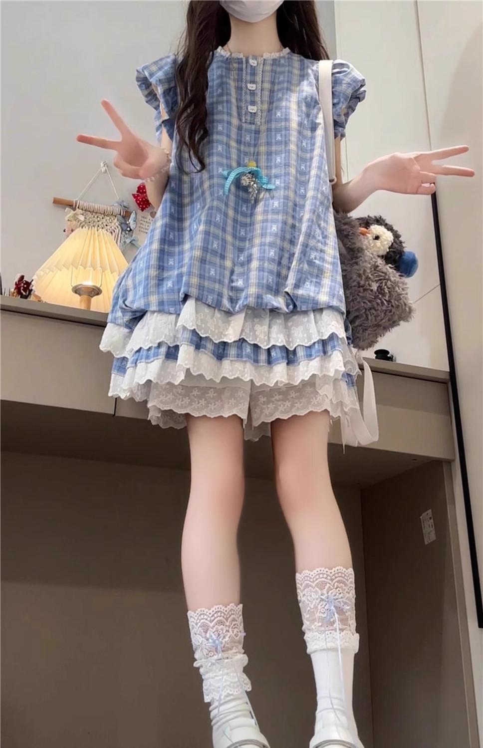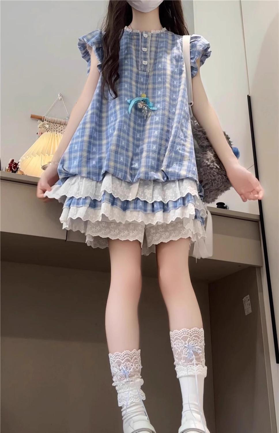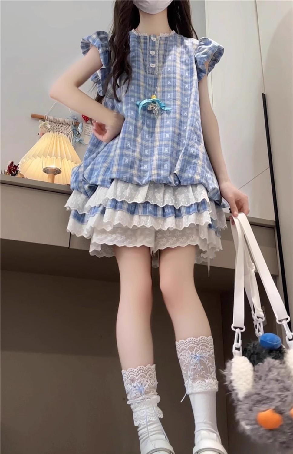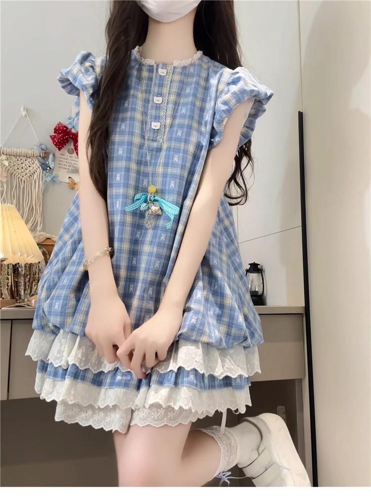 Vestido pequeño de cuadros azules para mujer, verano, nueva llegada, falda para vacaciones junto al mar para el verano