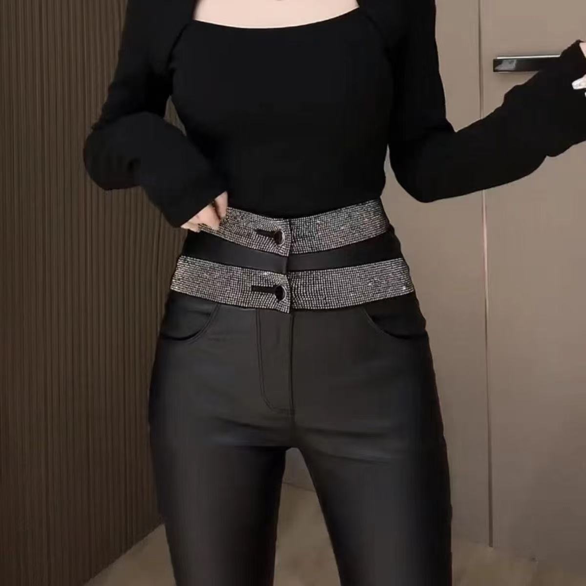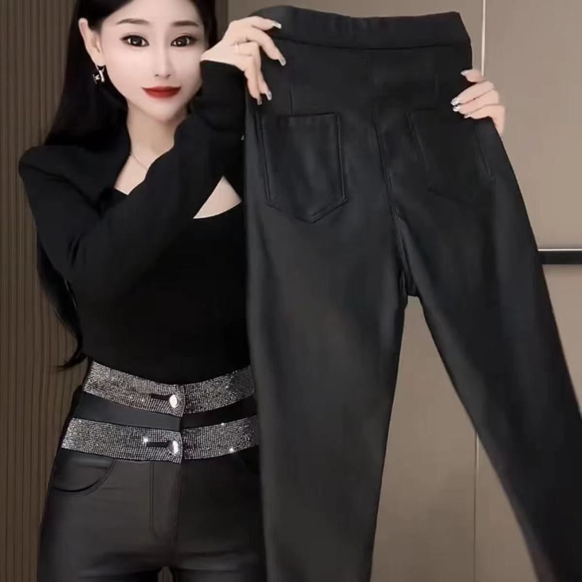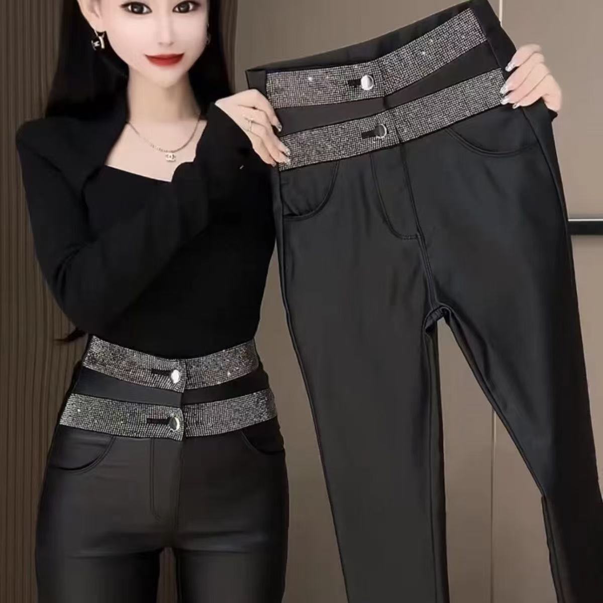 Pantalones lápiz elásticos ajustados estilo celebridad de internet recubiertos delgados con forro polar leggings para mujer 2025 otoño/invierno nuevos control de abdomen presión