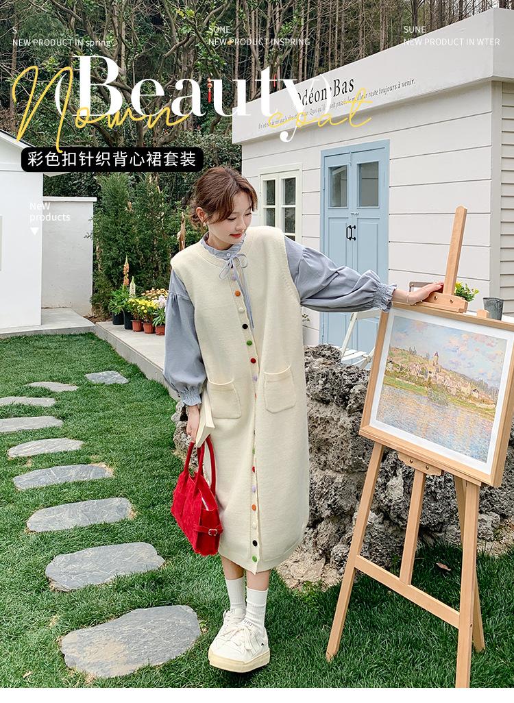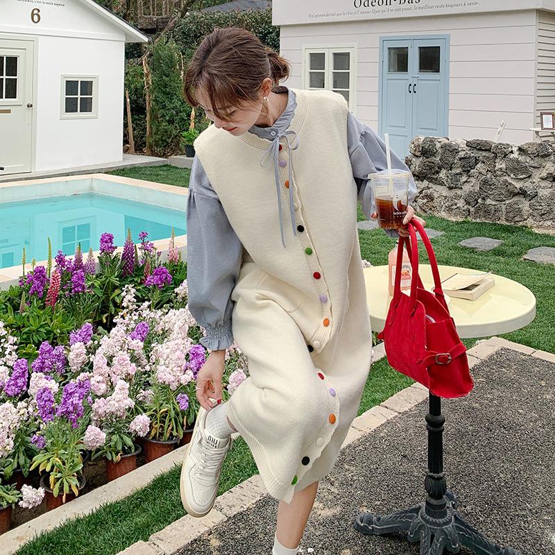 Vestido largo de dos piezas 2025 primavera y otoño nuevo estilo conjunto reductor de edad vestido de lana + vestido camisero conjunto de dos piezas tendencia