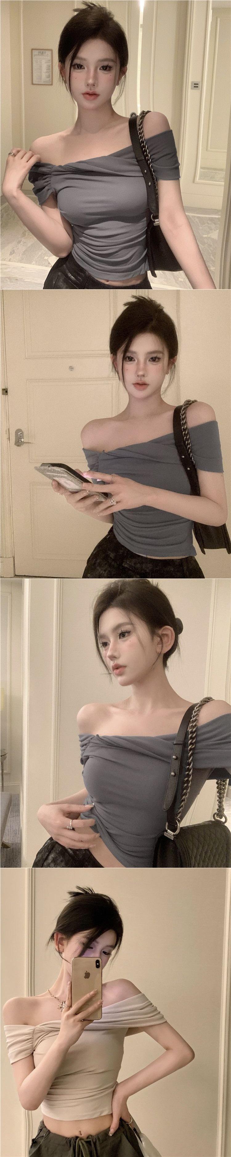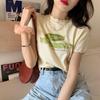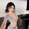 Camiseta de manga corta sexy estilo chica americana para mujer en verano, diseño de nicho, ombligo al descubierto, adelgazante y tops cortos