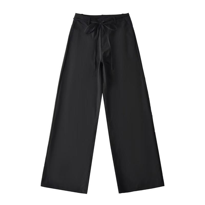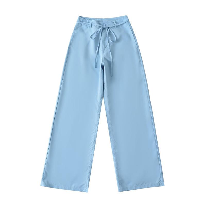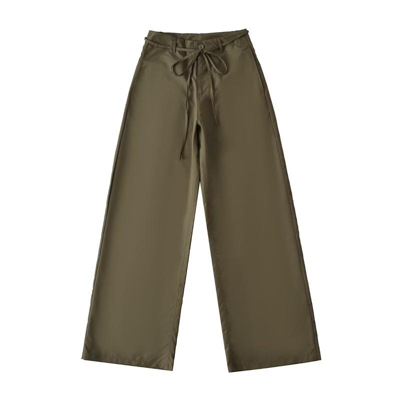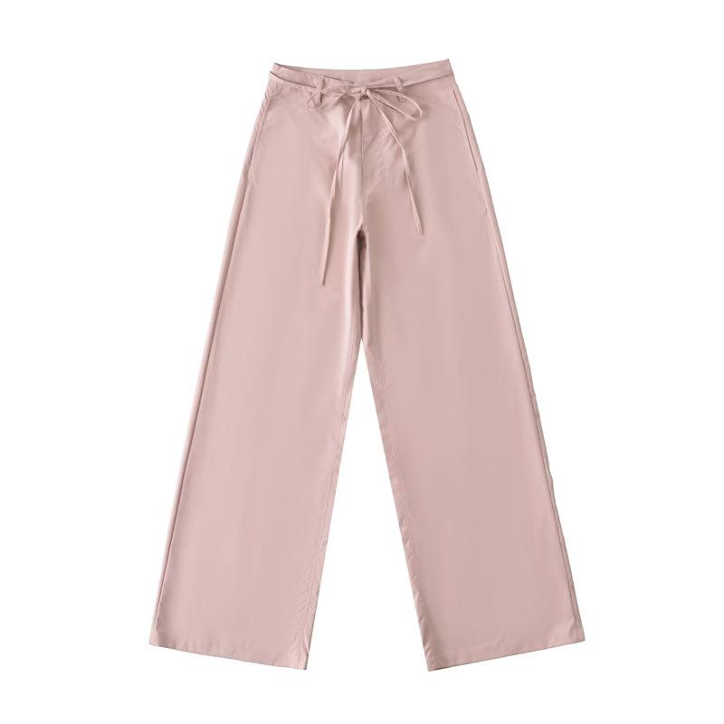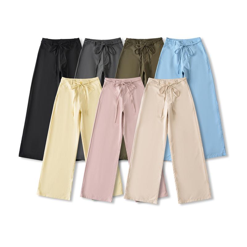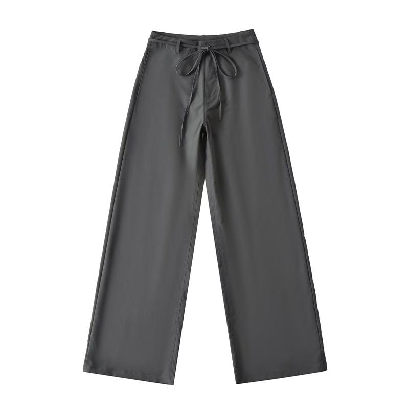 Pantalones Casuales de Cintura Alta con Cordones de Secado Rápido 2025 Verano Nueva Moda Versátiles Sueltos Adelgazantes de Pierna Ancha Rectos para Mujer