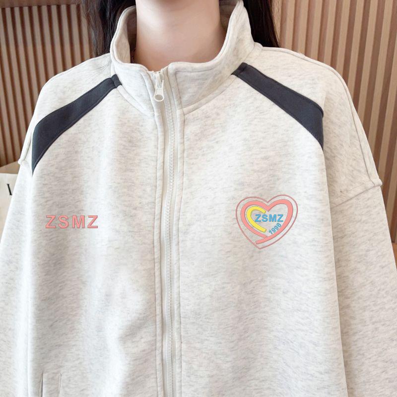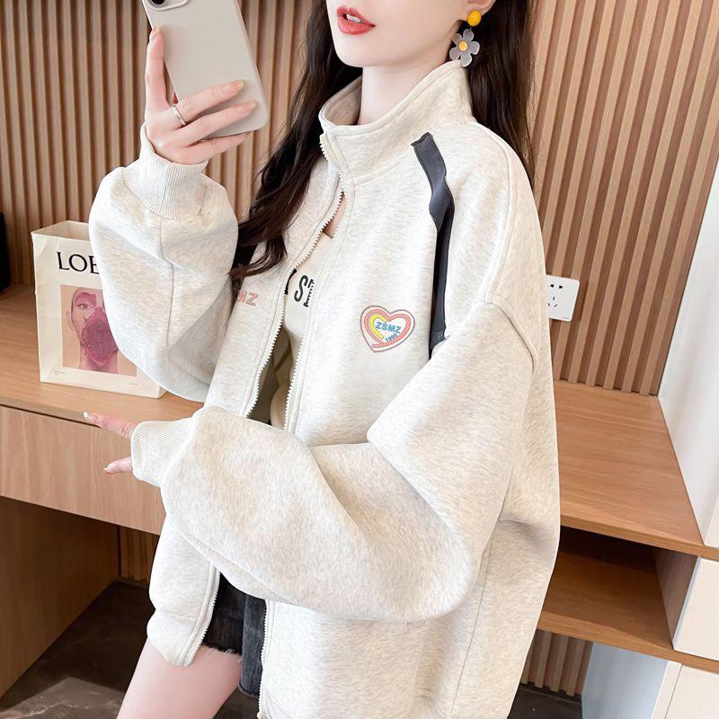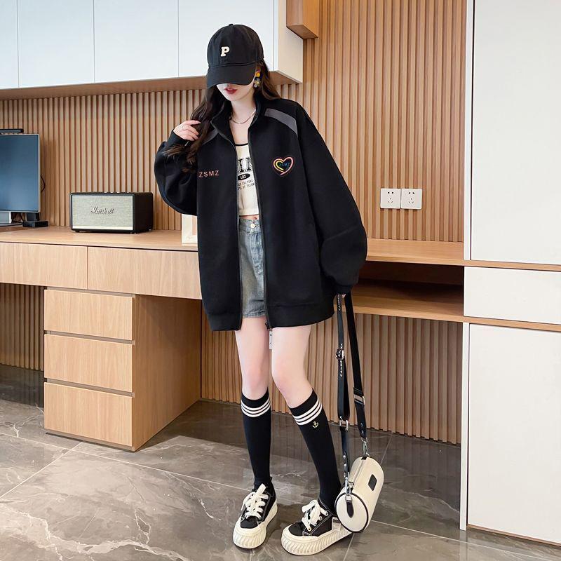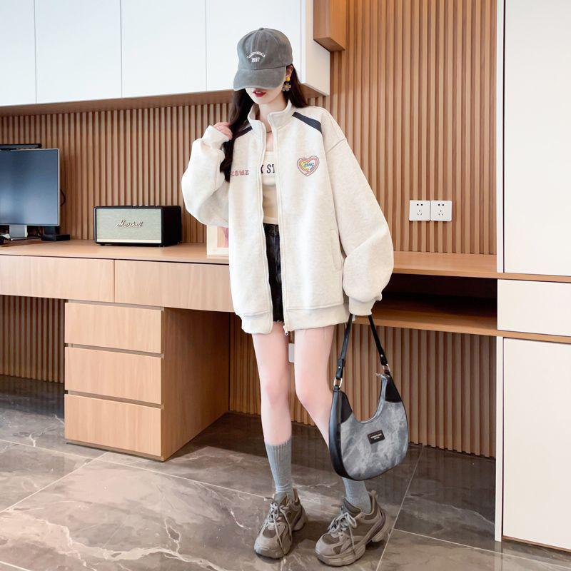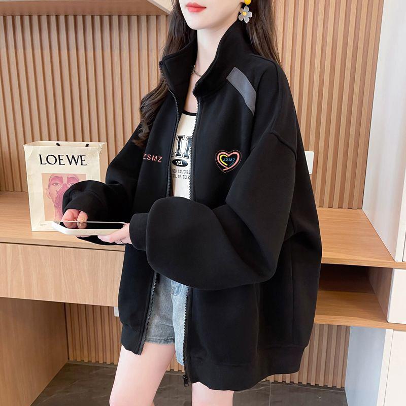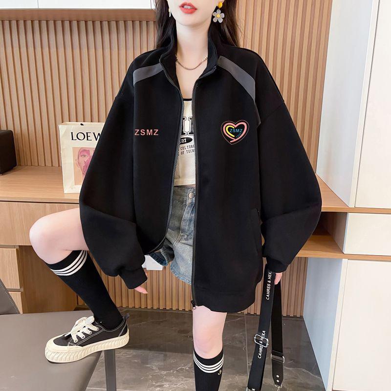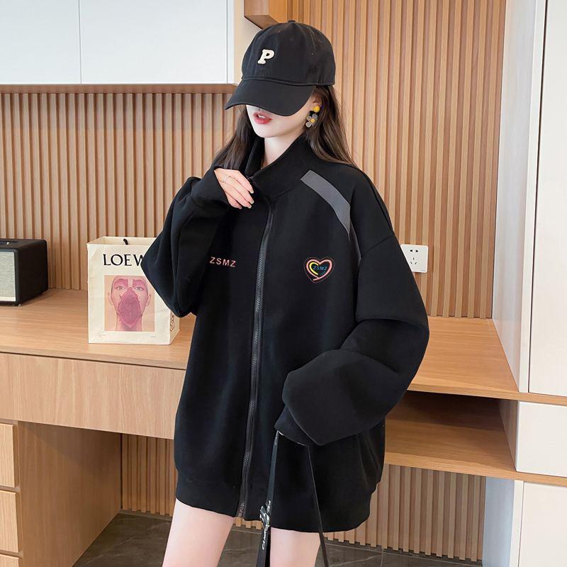 200-300 jin grasa mm talla extra grande cárdigan de cuello alto americano de alta calle sudadera de manga larga para mujer chaqueta deportiva para pareja de primavera y otoño
