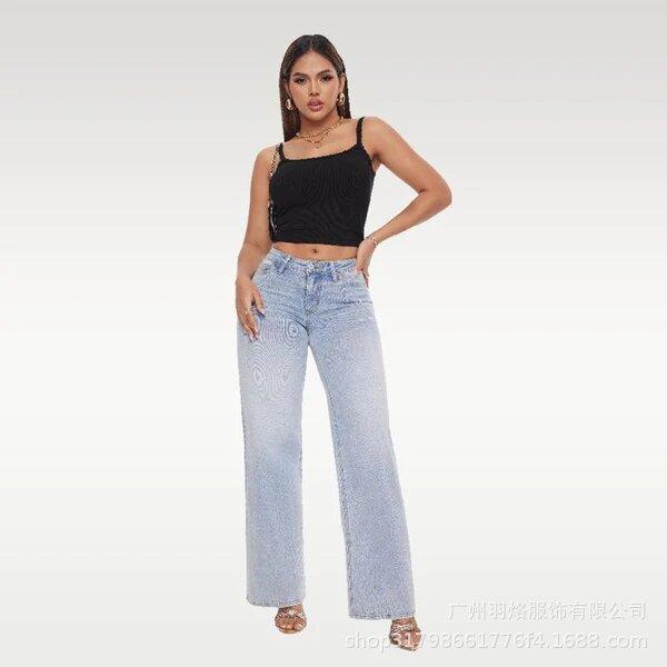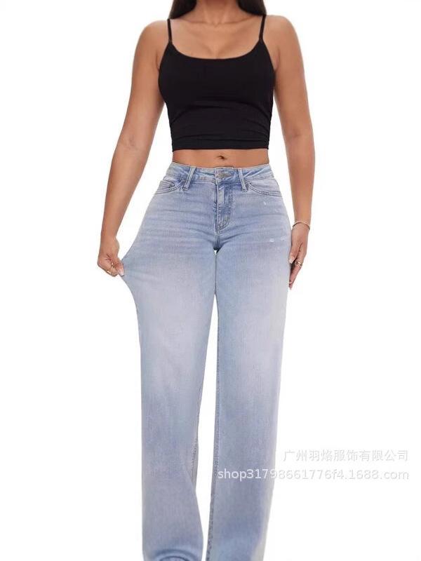 Calças de Perna Larga Estreita Nova Primavera 2025 Cintura Alta Quadril Reto Jeans Soltos Mulher