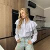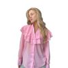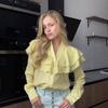 Camisa de Gasa de Primavera Casual Nueva de Hoja de Loto con Cuello en V Transfronteriza Europea y Americana para Mujer, Temperamento, Estilo Poco Fragante, Top Versátil