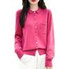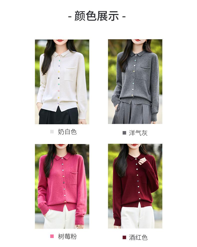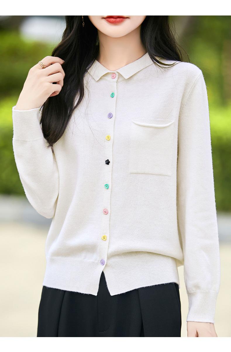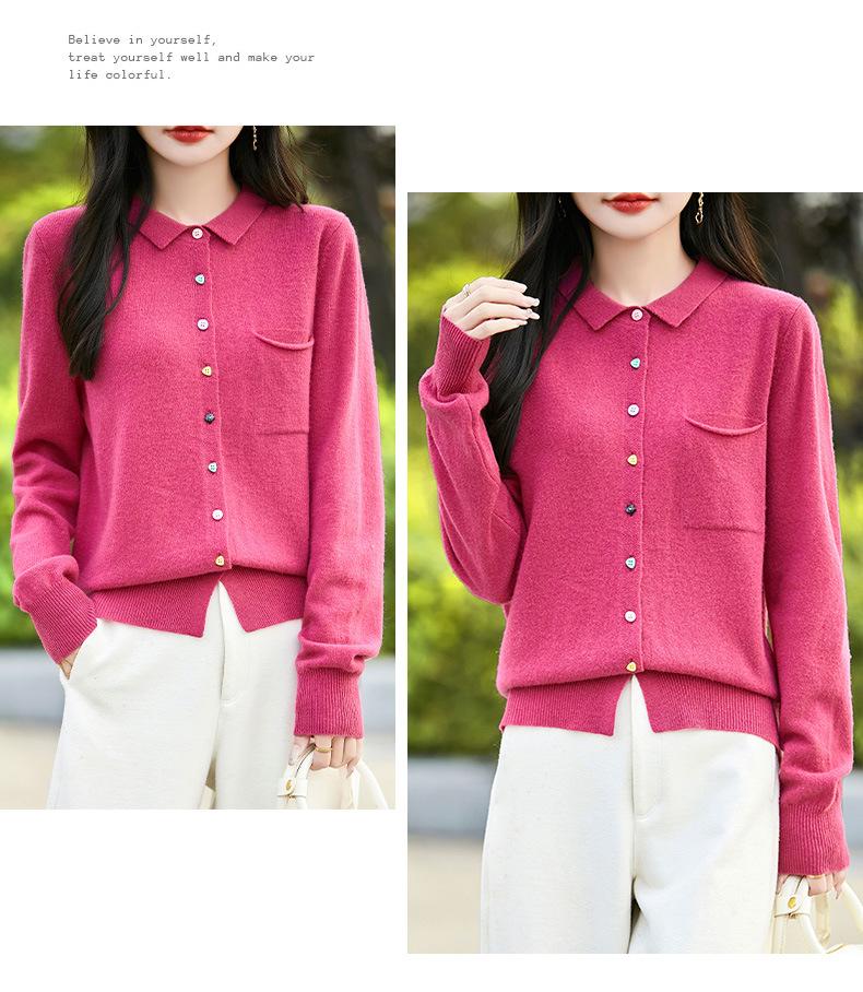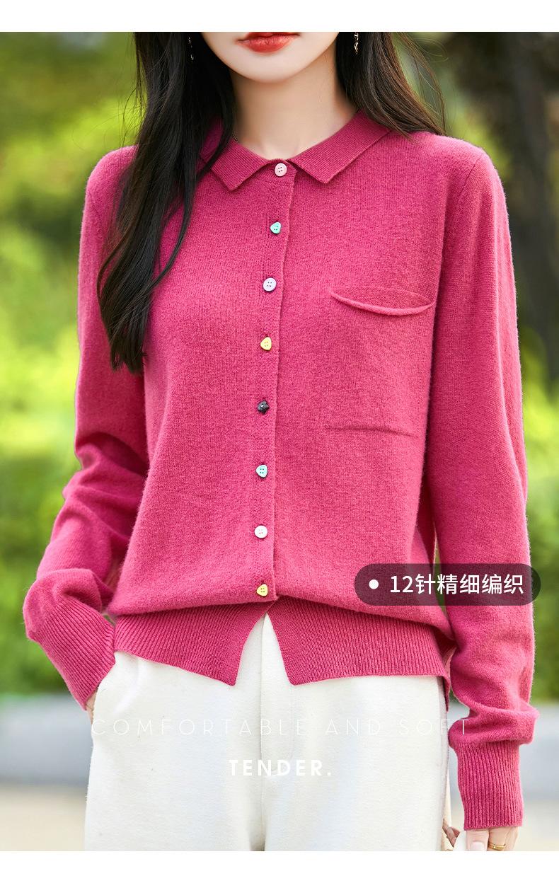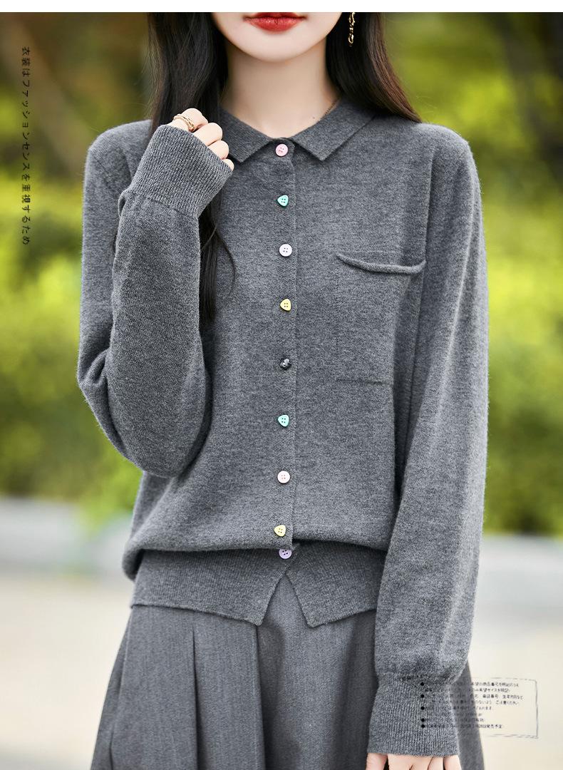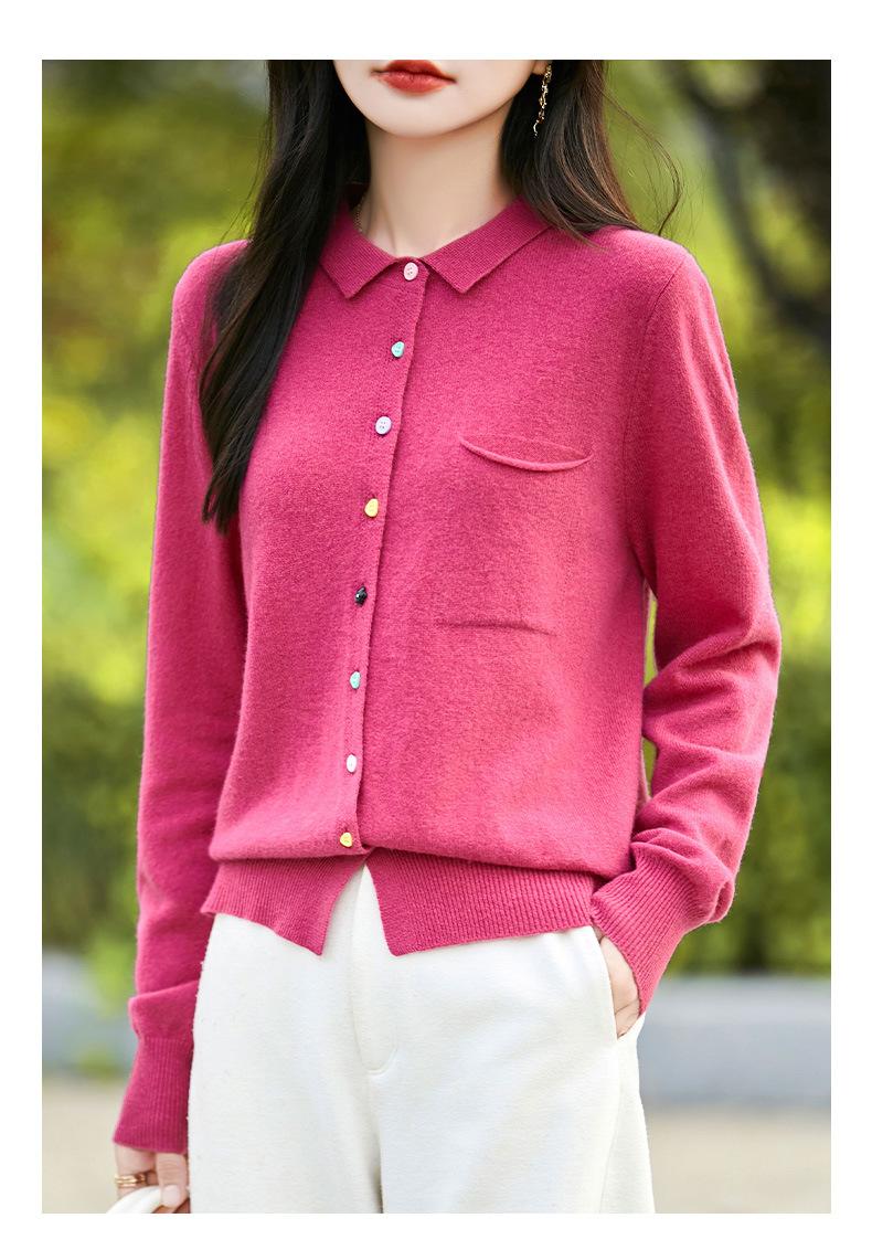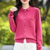 Cárdigan de Punto de Cachemira Suave Casual con Temperamento Suelto de Manga Larga con Cuello Polo y Bolsillo con Botón de Color para Mujer Nuevo 2025