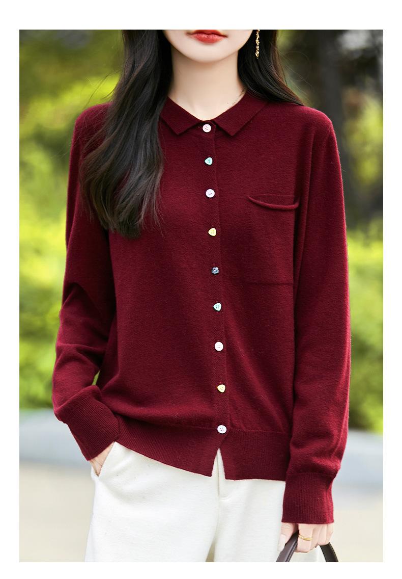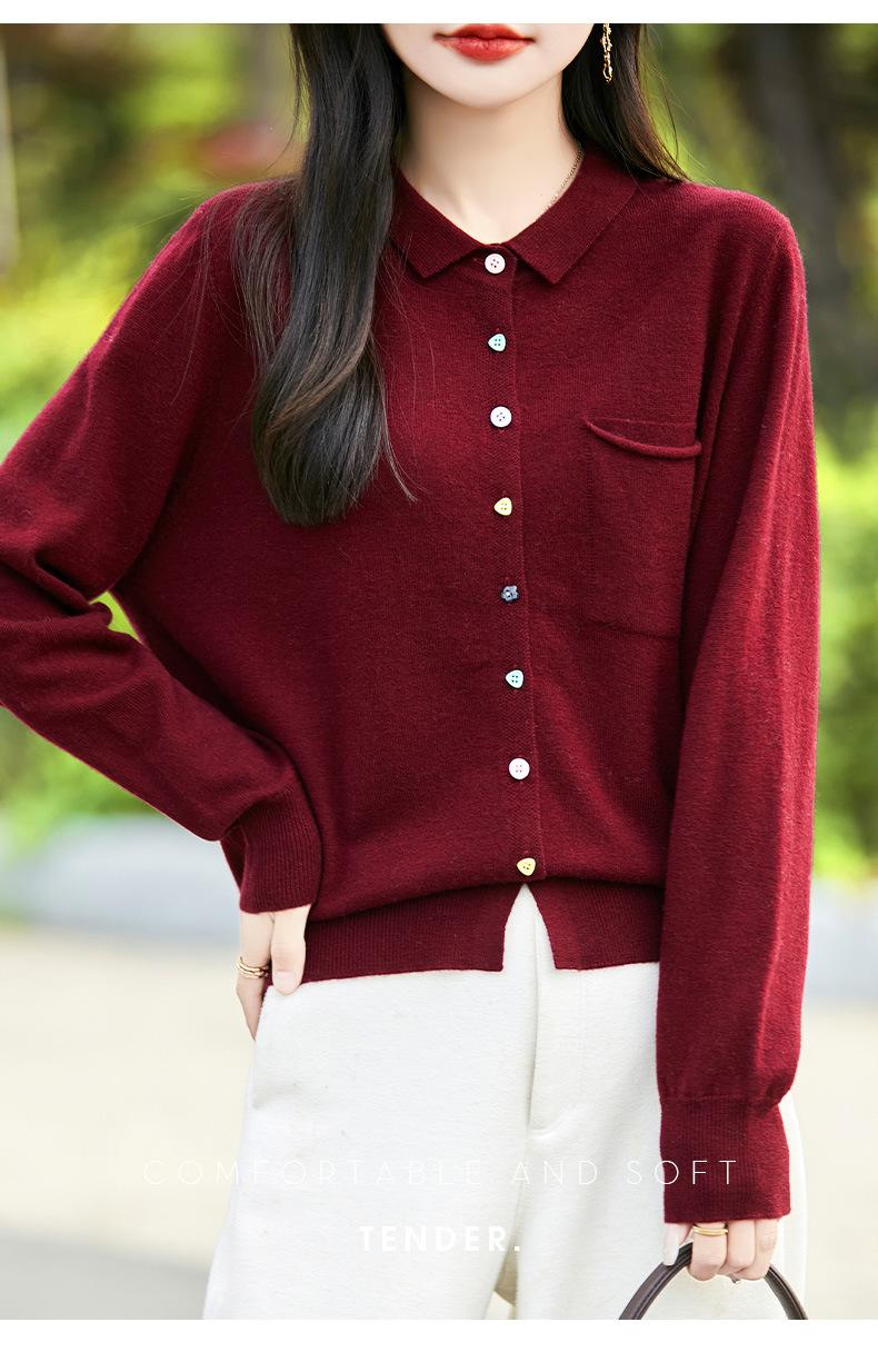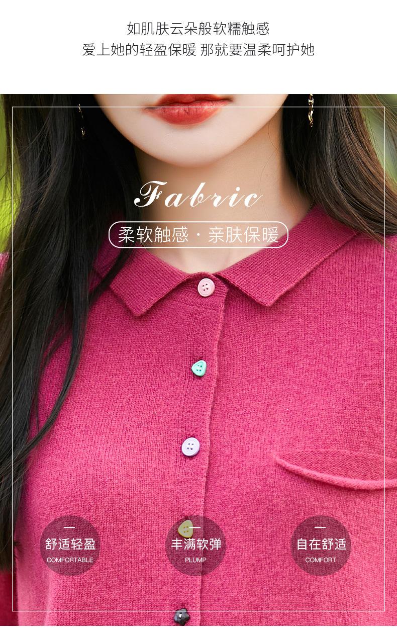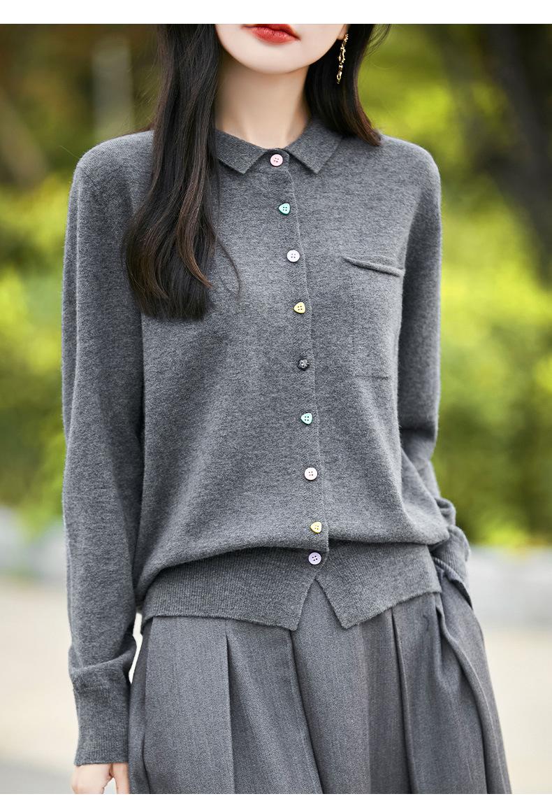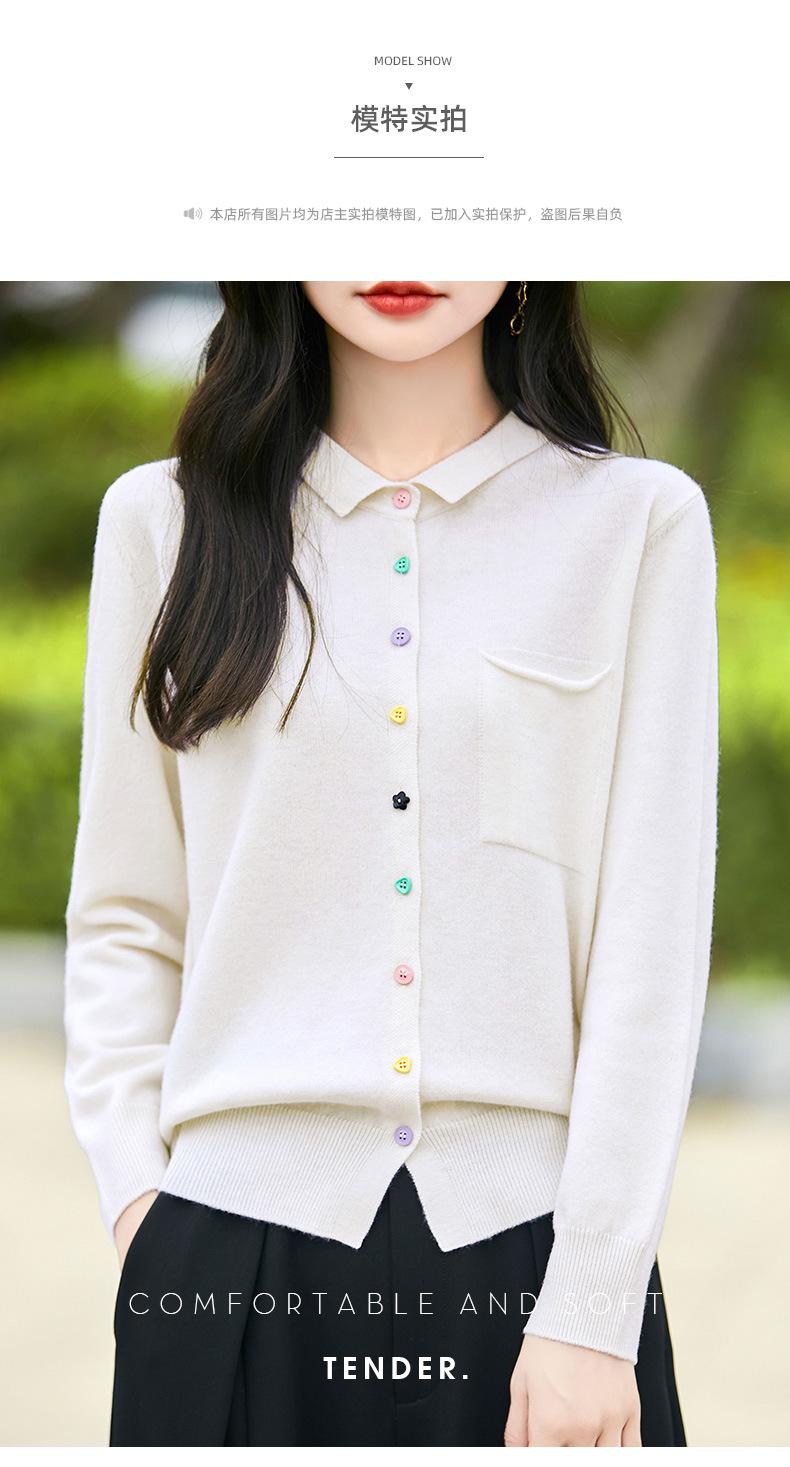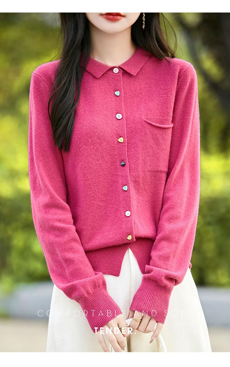 Cárdigan de Punto de Cachemira Suave Casual con Temperamento Suelto de Manga Larga con Cuello Polo y Bolsillo con Botón de Color para Mujer Nuevo 2025