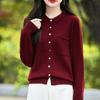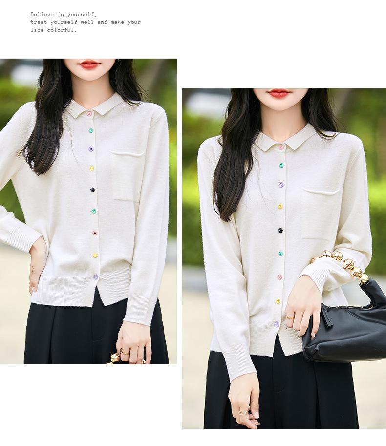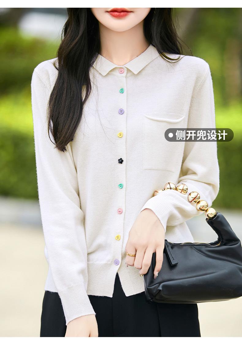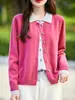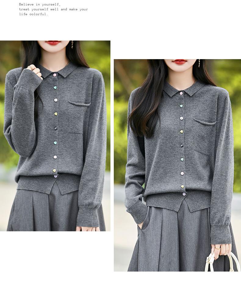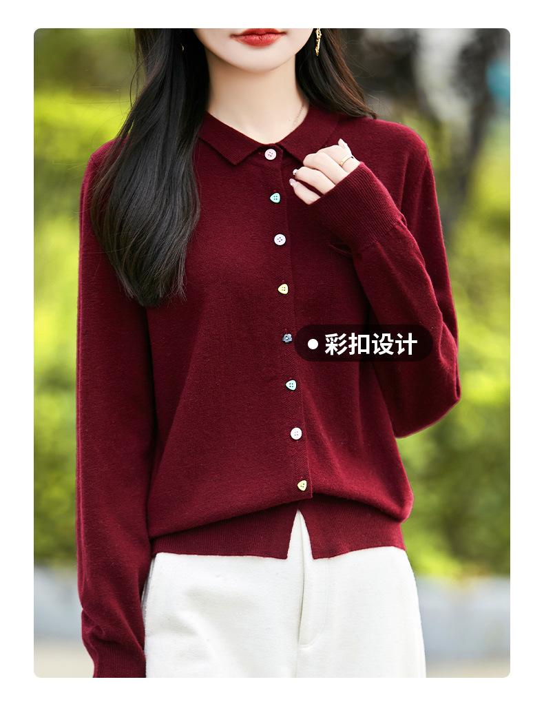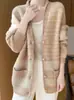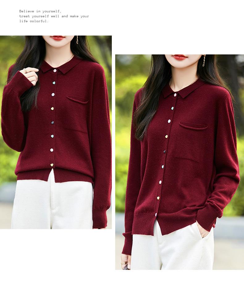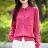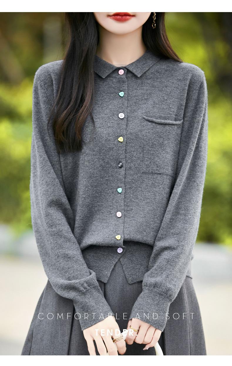 Cárdigan de Punto de Cachemira Suave Casual con Temperamento Suelto de Manga Larga con Cuello Polo y Bolsillo con Botón de Color para Mujer Nuevo 2025