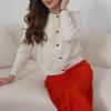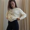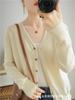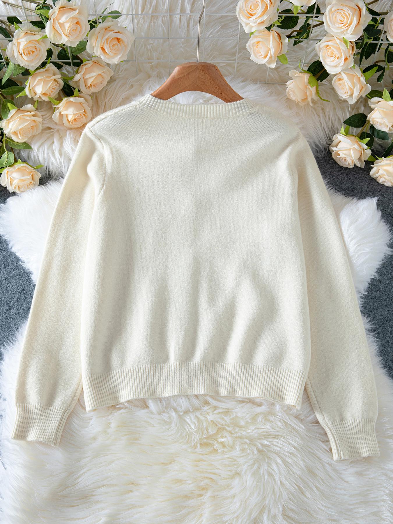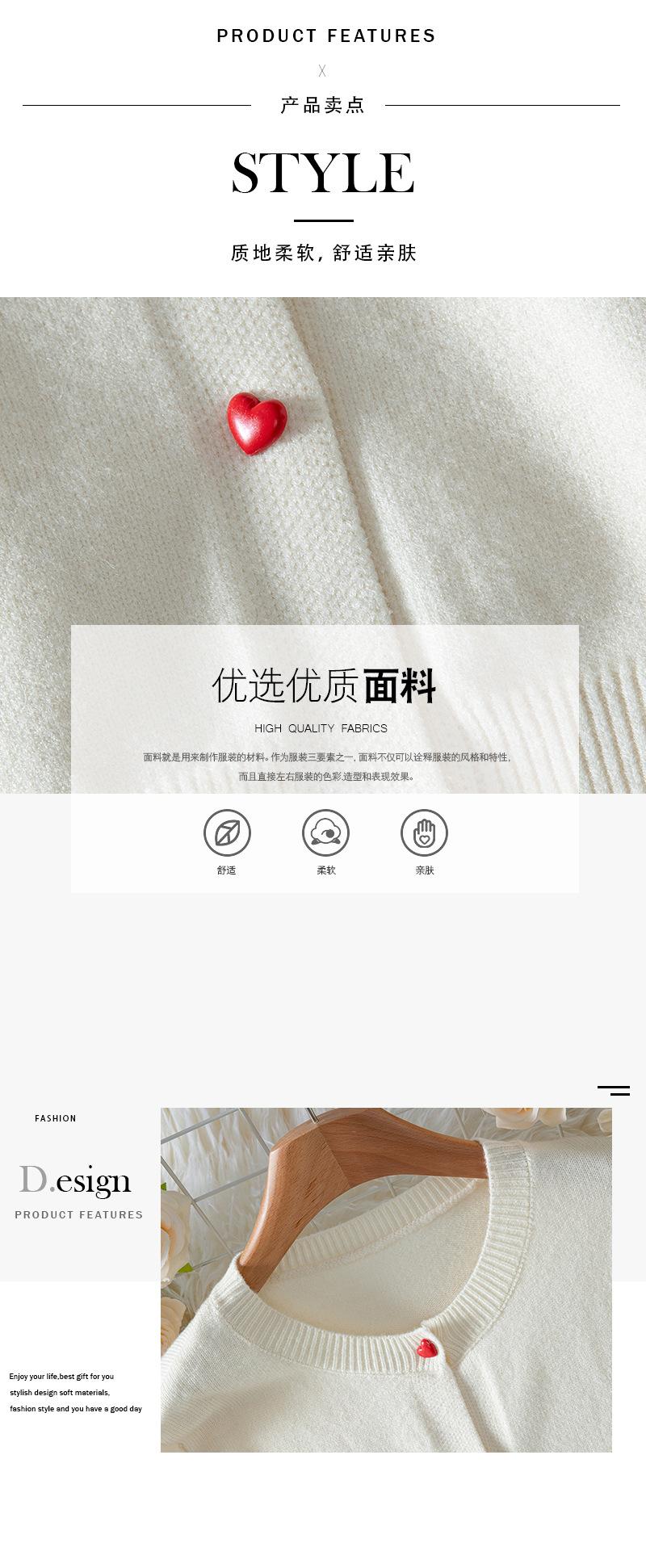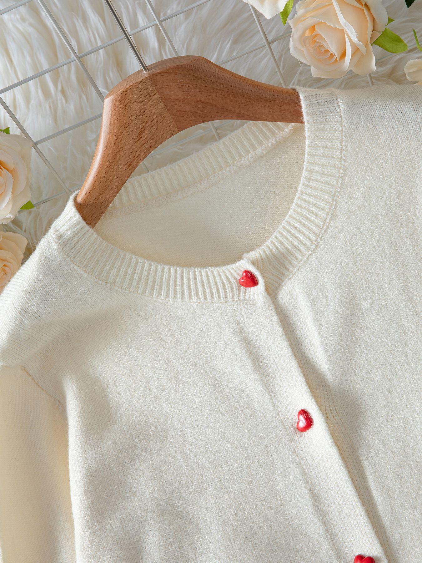 Cárdigan elegante de punto para mujer de otoño e invierno transfronterizo, suéter de color sólido con cuello redondo y botón en forma de corazón, cárdigan para mujer con bajo acanalado