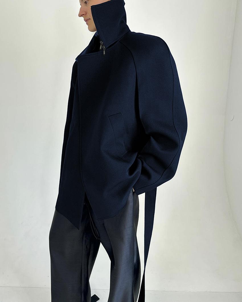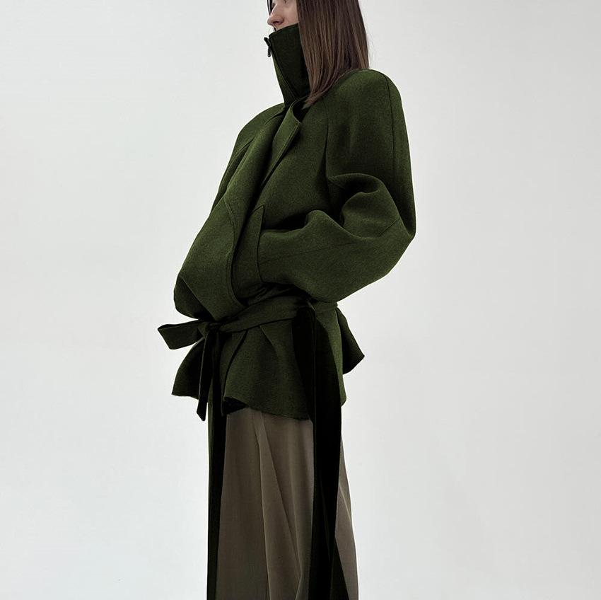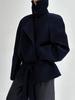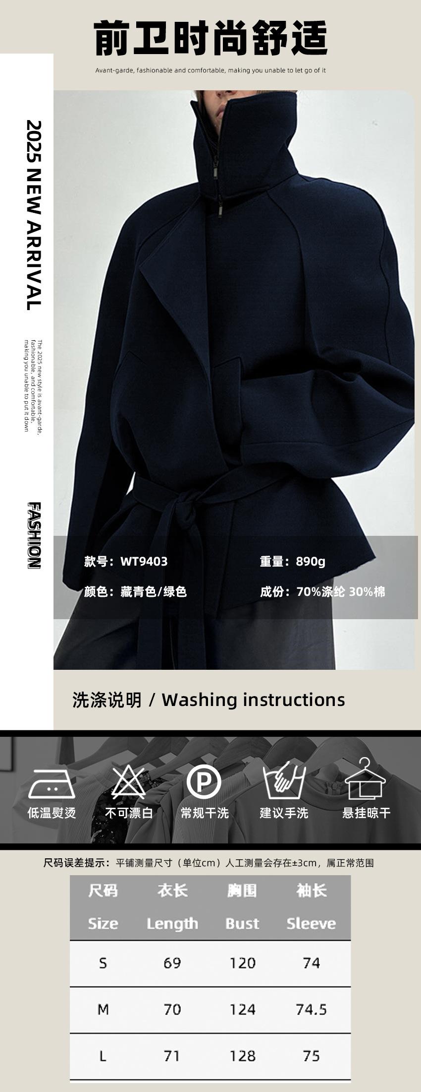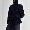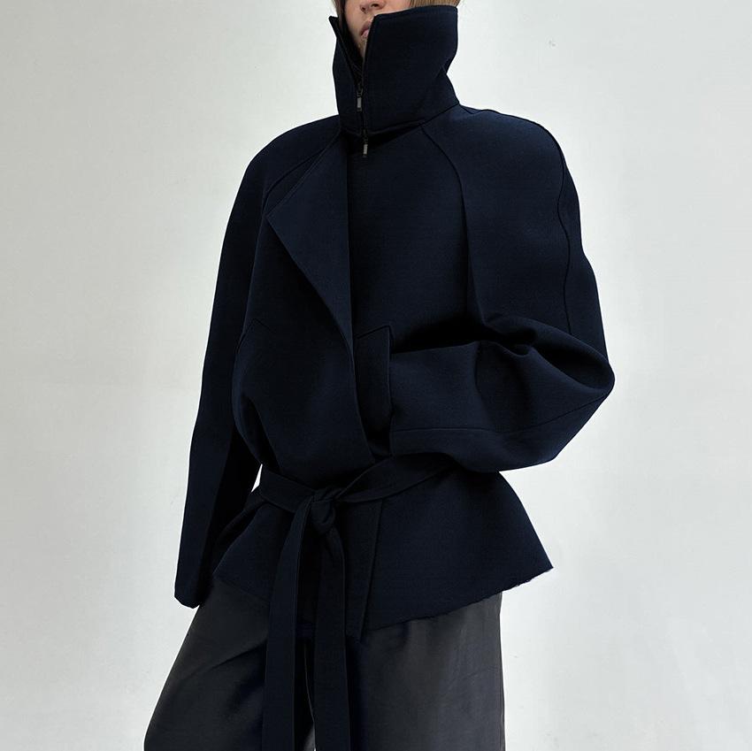 Abrigo Azul de Lana Chic Francés para Mujer 2025 Invierno Nuevo de Alta Gama Suelto con Lazo Cuello Alto Abrigo Ropa de Mujer