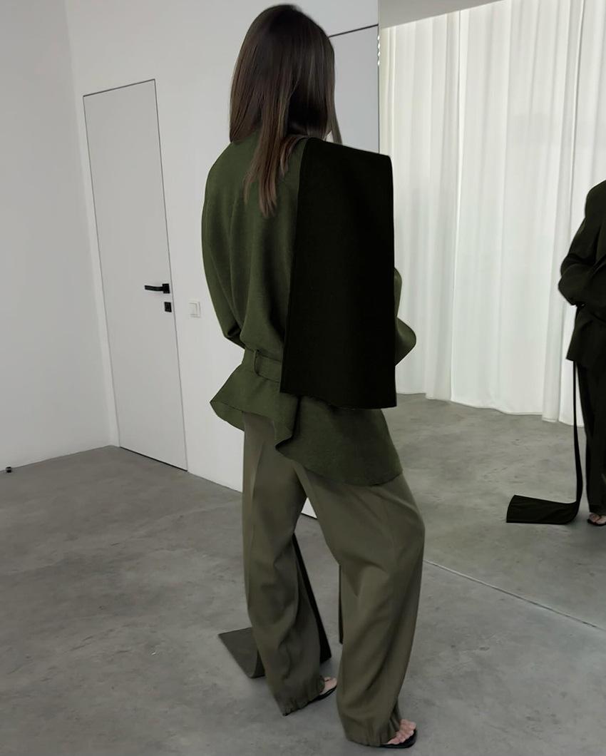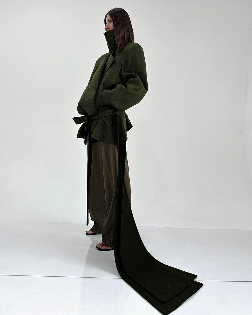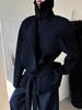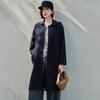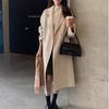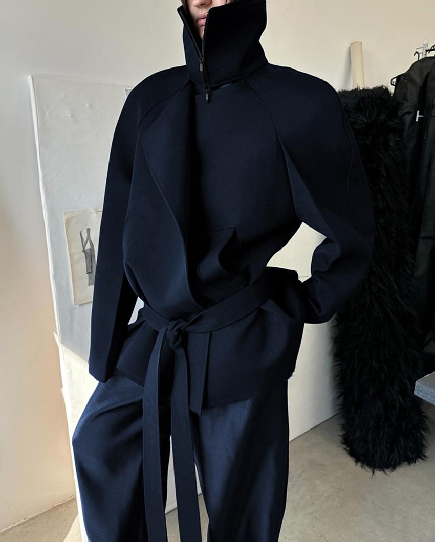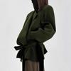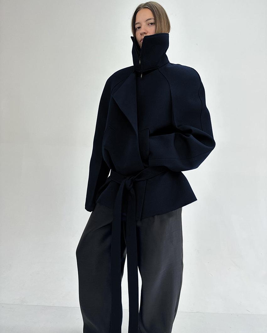 Abrigo Azul de Lana Chic Francés para Mujer 2025 Invierno Nuevo de Alta Gama Suelto con Lazo Cuello Alto Abrigo Ropa de Mujer