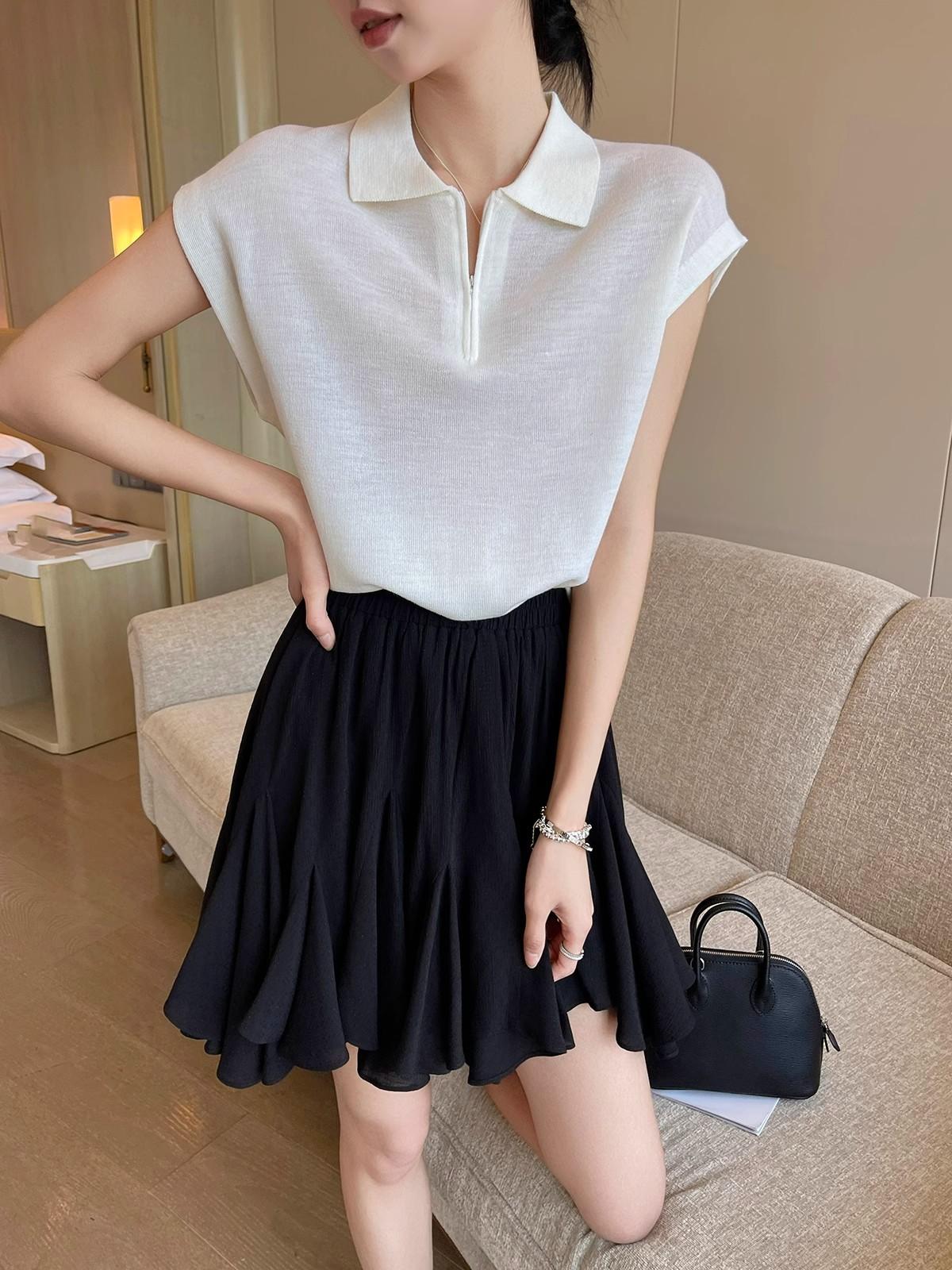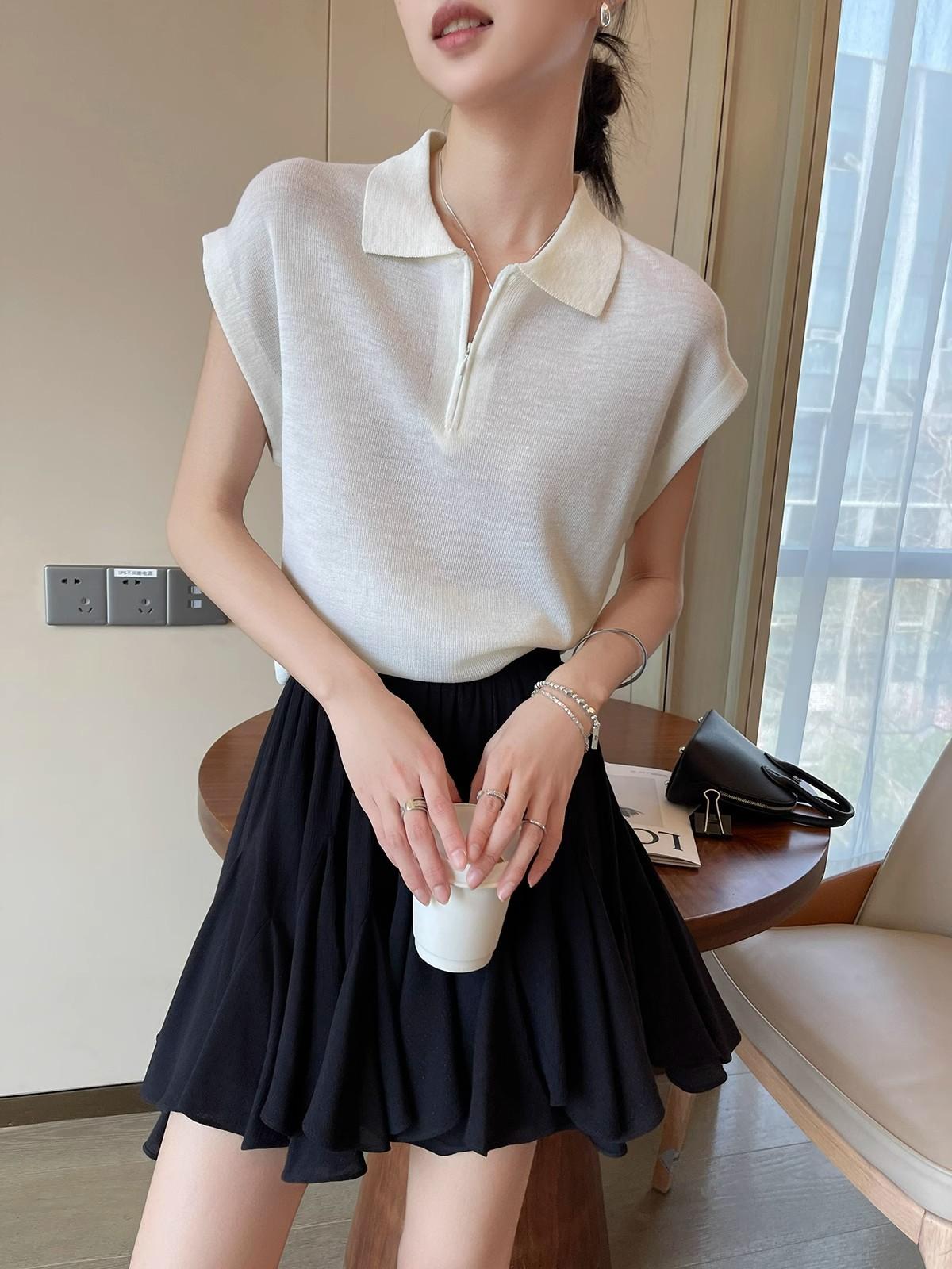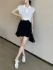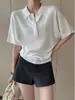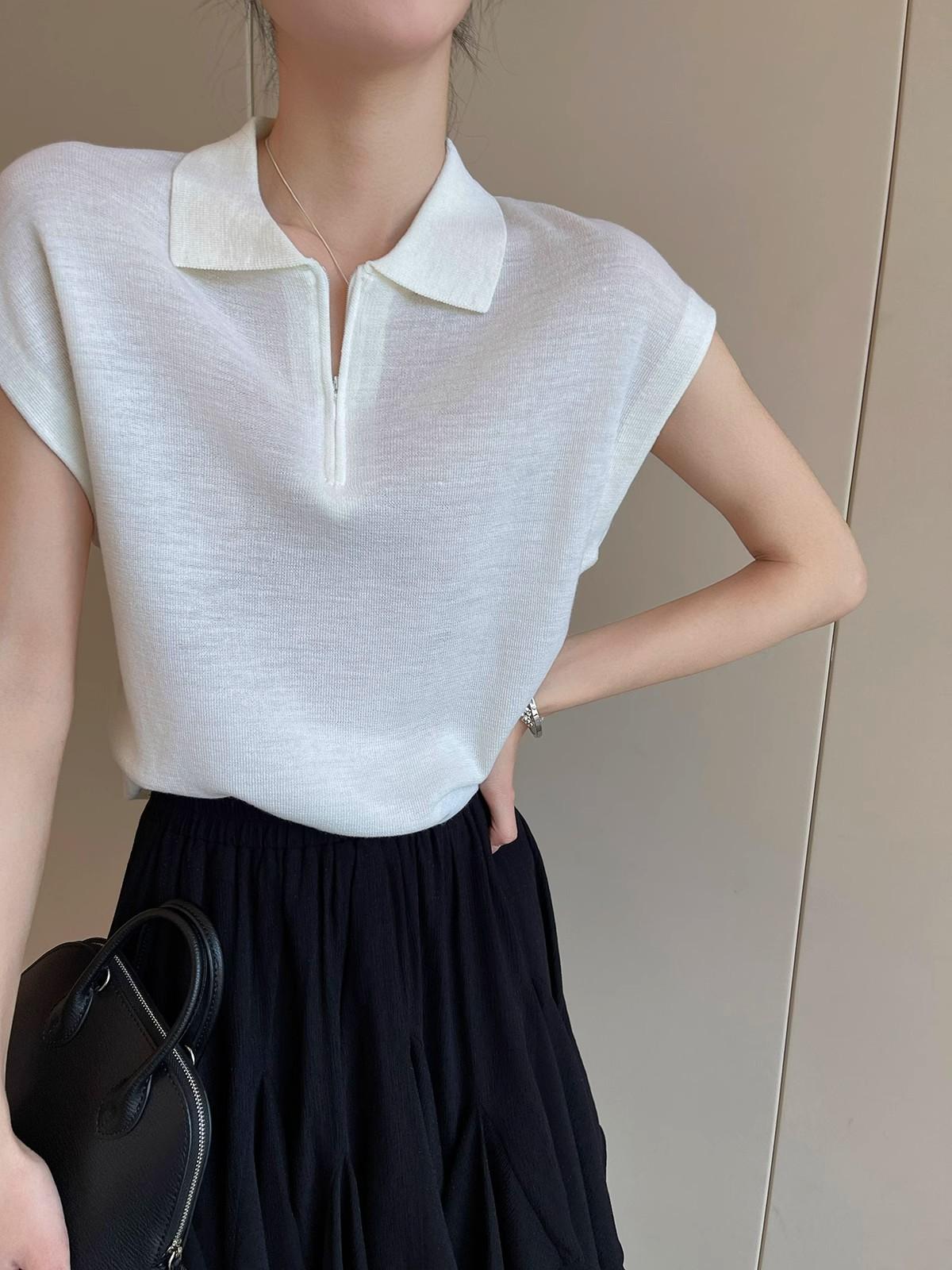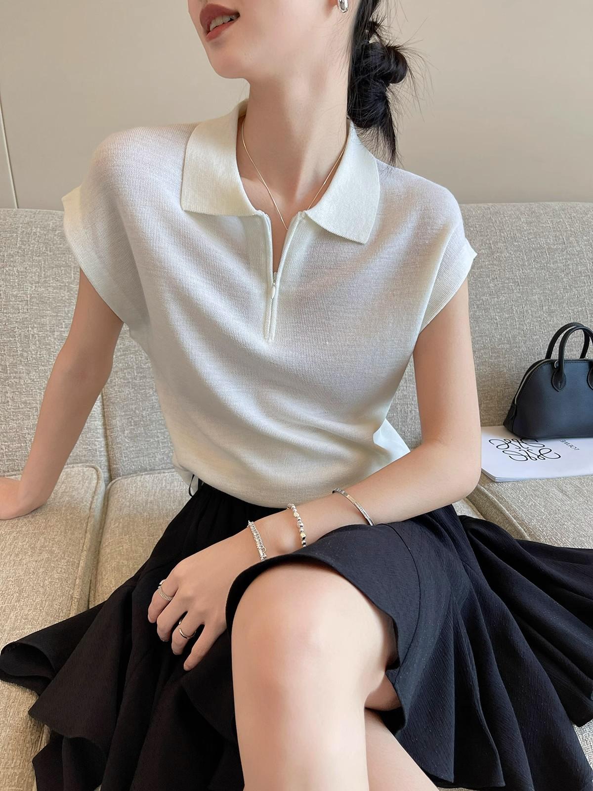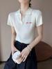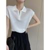 Camiseta de Punto de Manga Corta con Cuello Polo Blanco Pinkeen para Mujer Verano 2025 Nuevo Elegante Reductor de Edad Refrescante Old Money Top