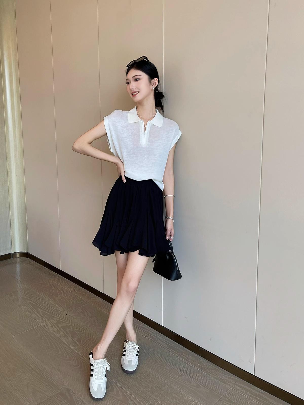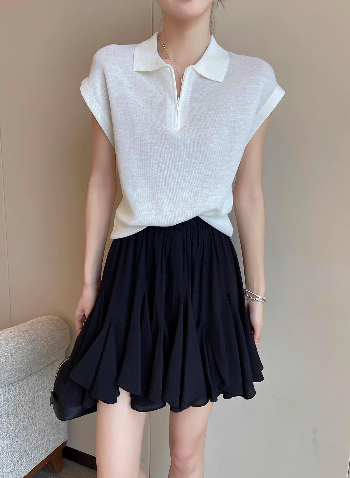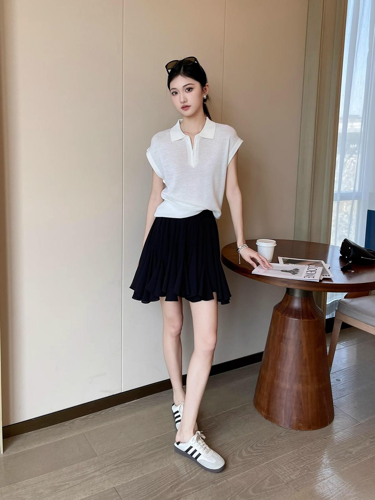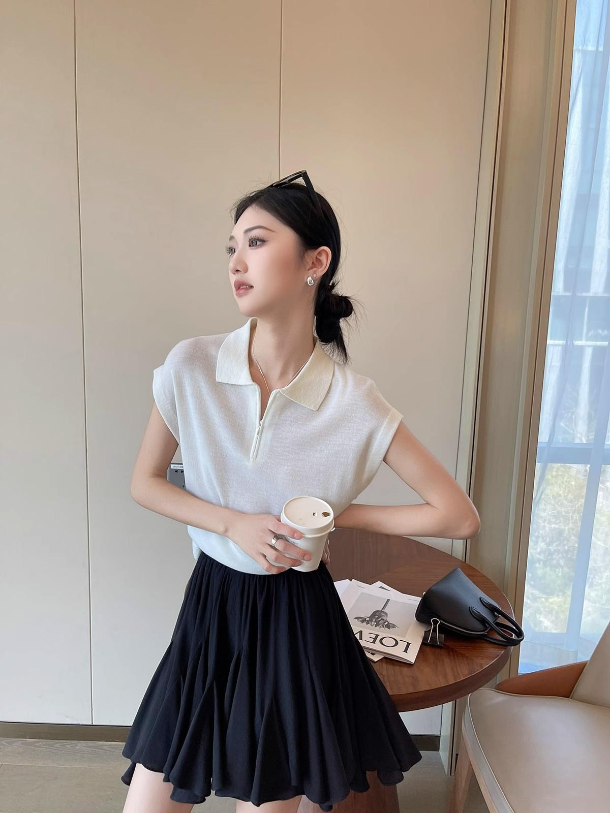 Camiseta de Punto de Manga Corta con Cuello Polo Blanco Pinkeen para Mujer Verano 2025 Nuevo Elegante Reductor de Edad Refrescante Old Money Top