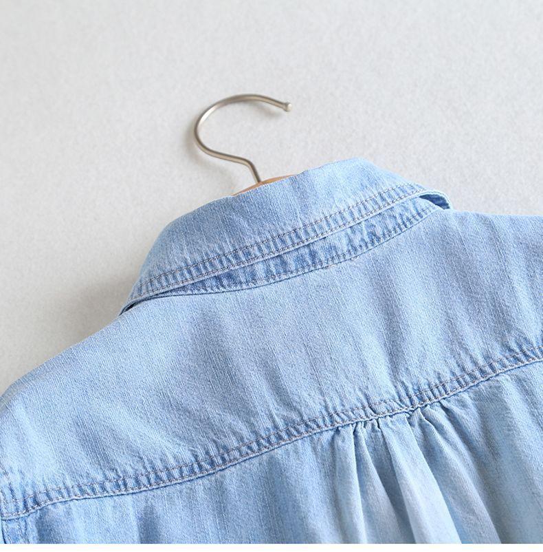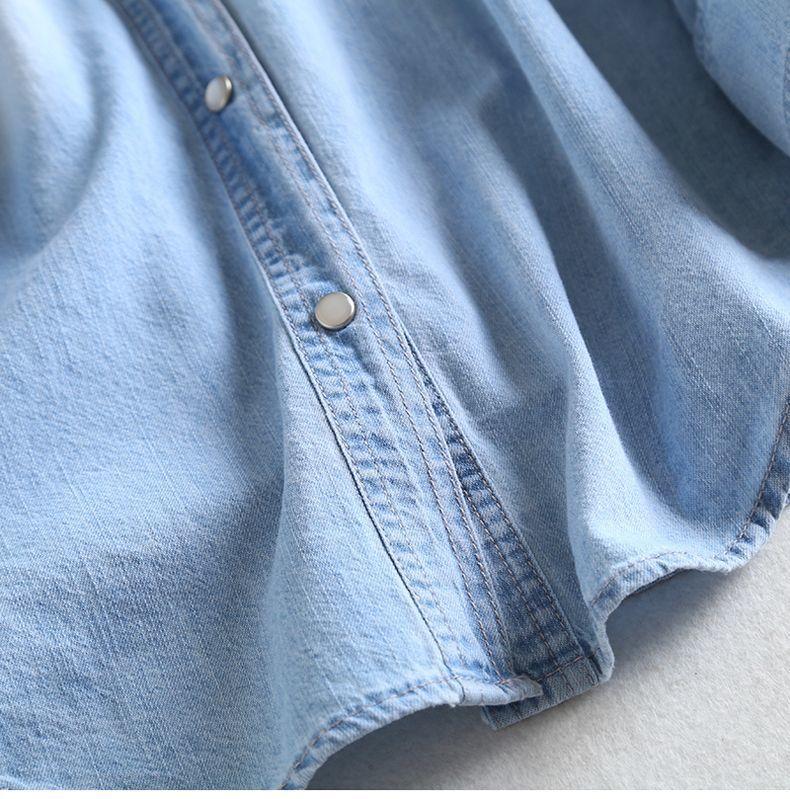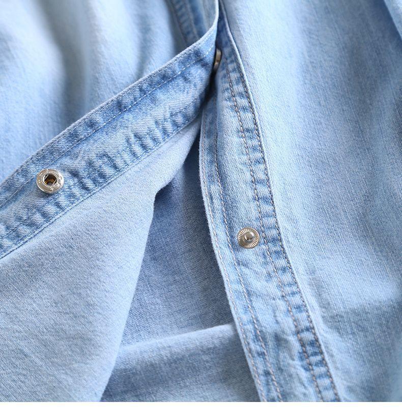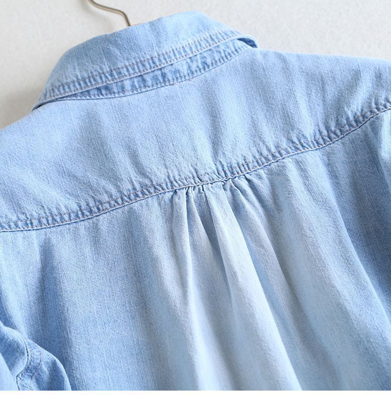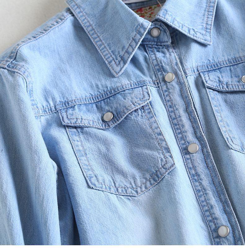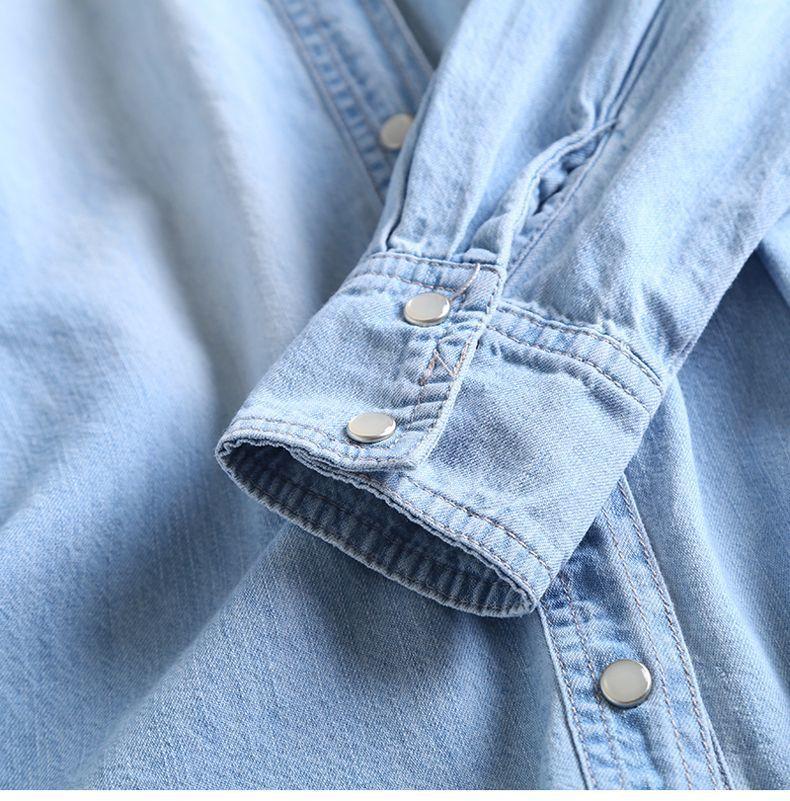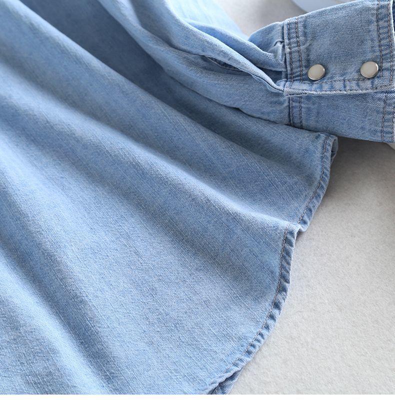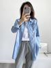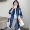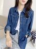 Camisa de mezclilla de algodón puro de largo medio para mujer, estilo moderno de primavera y otoño, versión coreana, diseño holgado, nicho, chaqueta camisa de manga larga