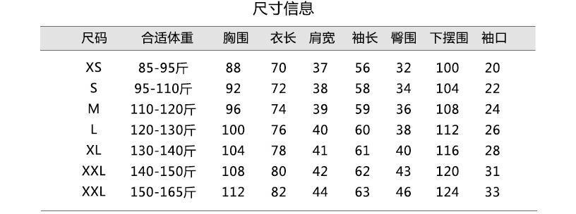 S within 95 catties, M 95-105 catties, L 105-115 catties, XL 115-125 catties, 2XL 125-135 pounds, 3XL 135-155 catties
