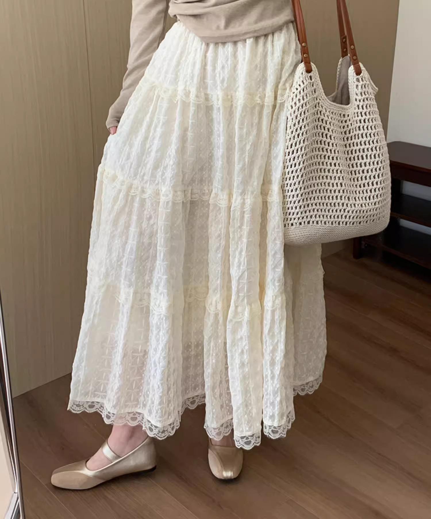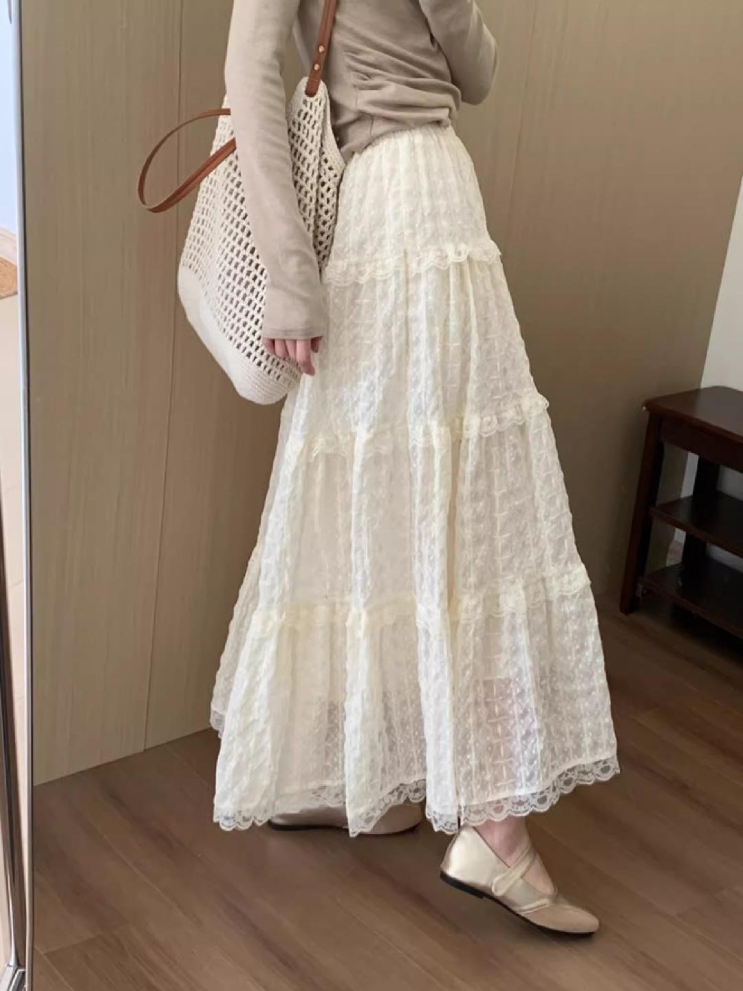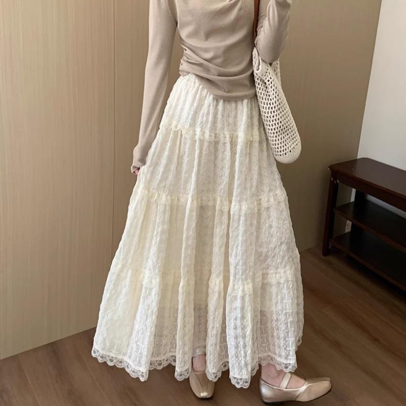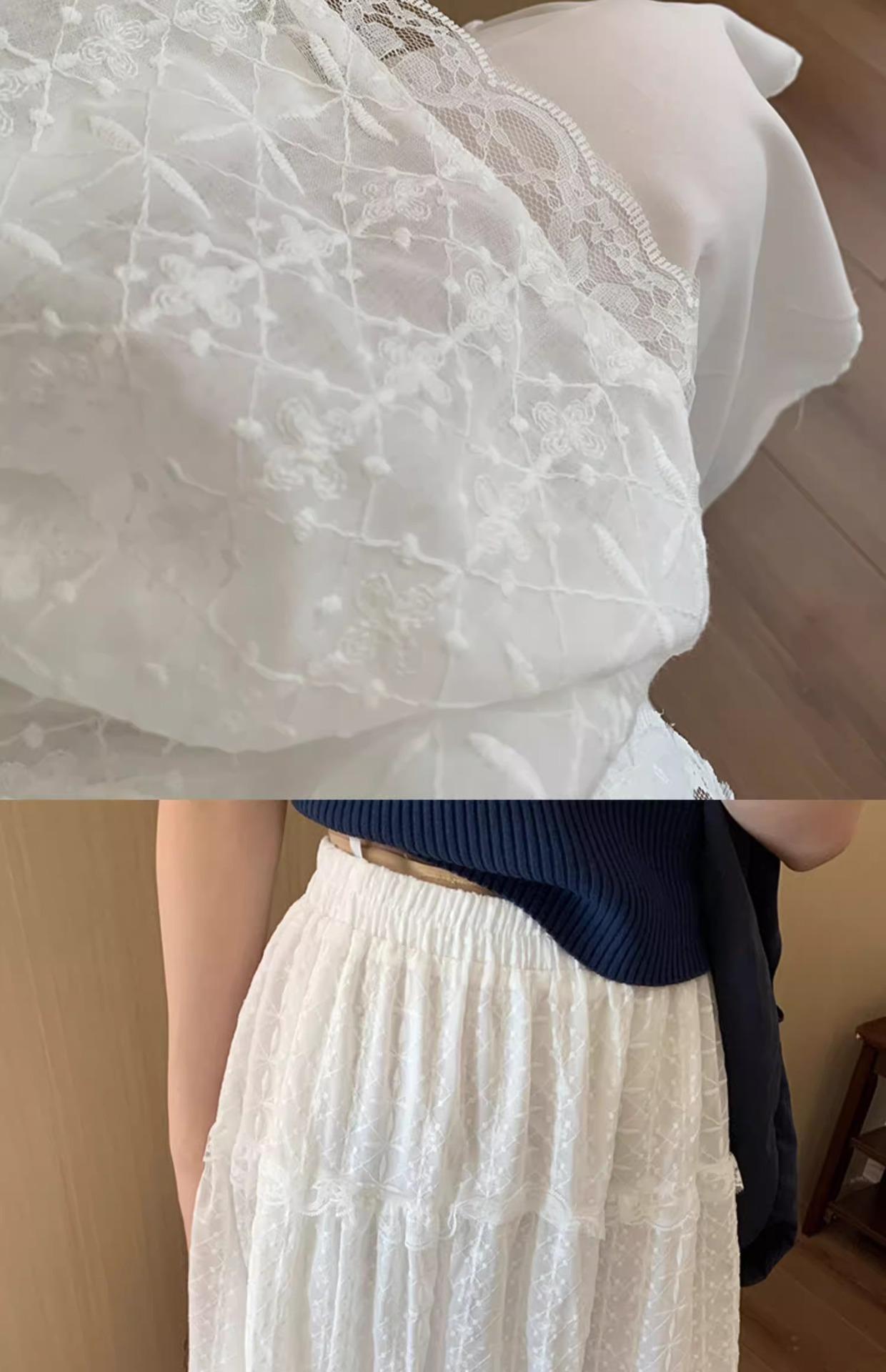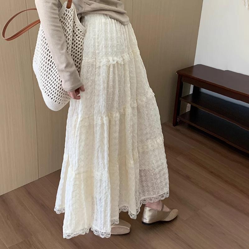 Falda Bordada de Estilo Suave para Mujer Primavera y Verano 2025 Versátil Largo Medio Asimétrica Diseño Nicho Falda Línea A