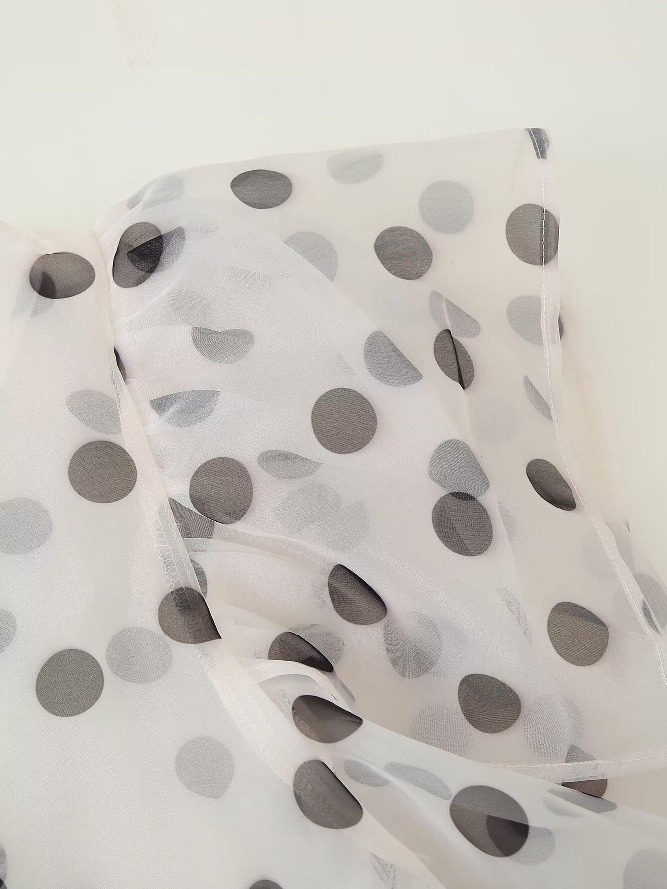Ropa de Verano para Mujer 2025 Nuevo Estilo Europeo y Americano Moda Simple Versátil Camisa de Organza con Lunares