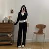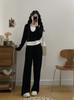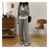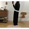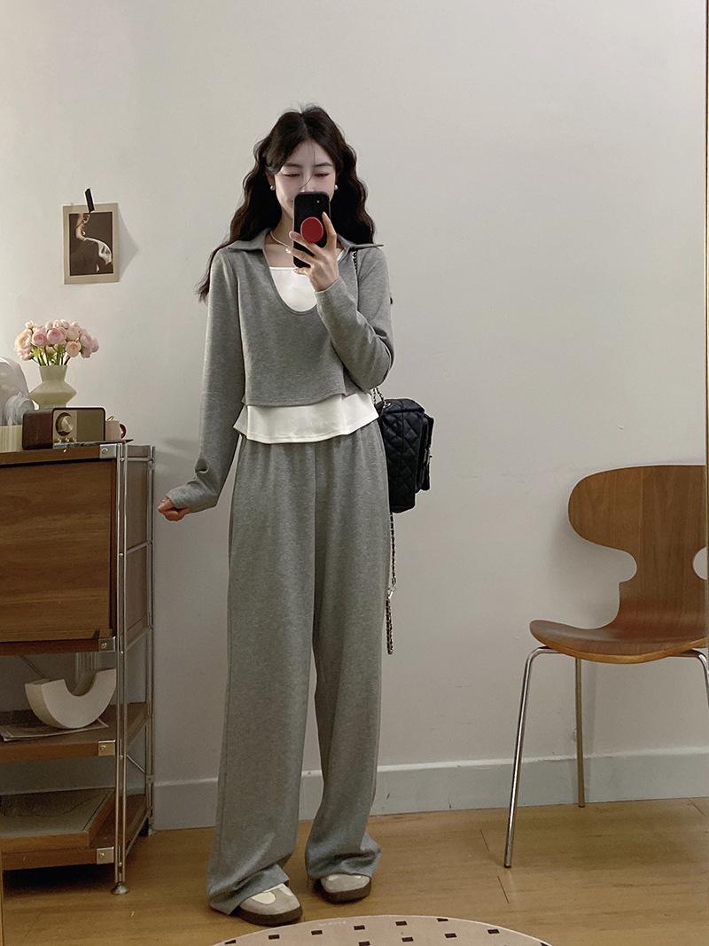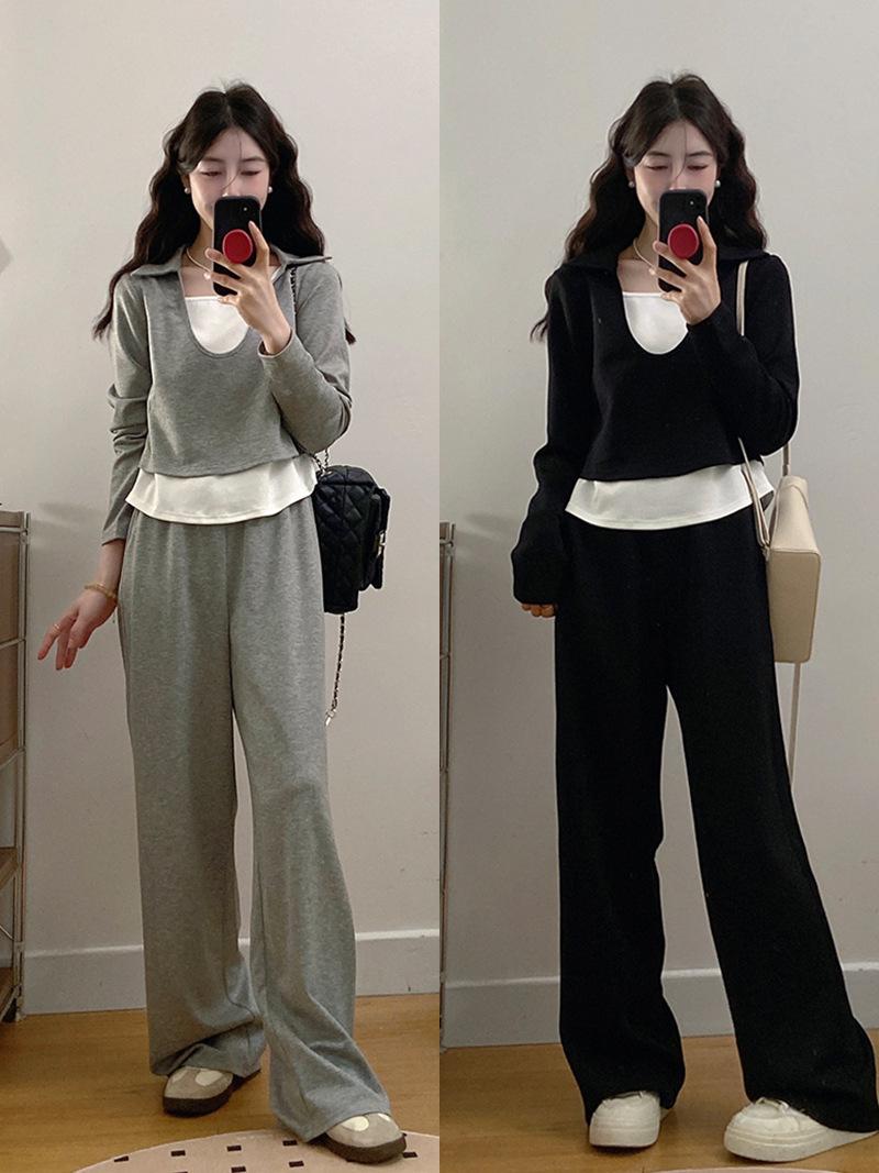 Otoño 2025 Nuevo Gordo MM Talla Grande para Mujer Casual Bloque de Color Falso Dos Piezas Camiseta de Manga Larga Conjunto de Pantalones de Pierna Ancha