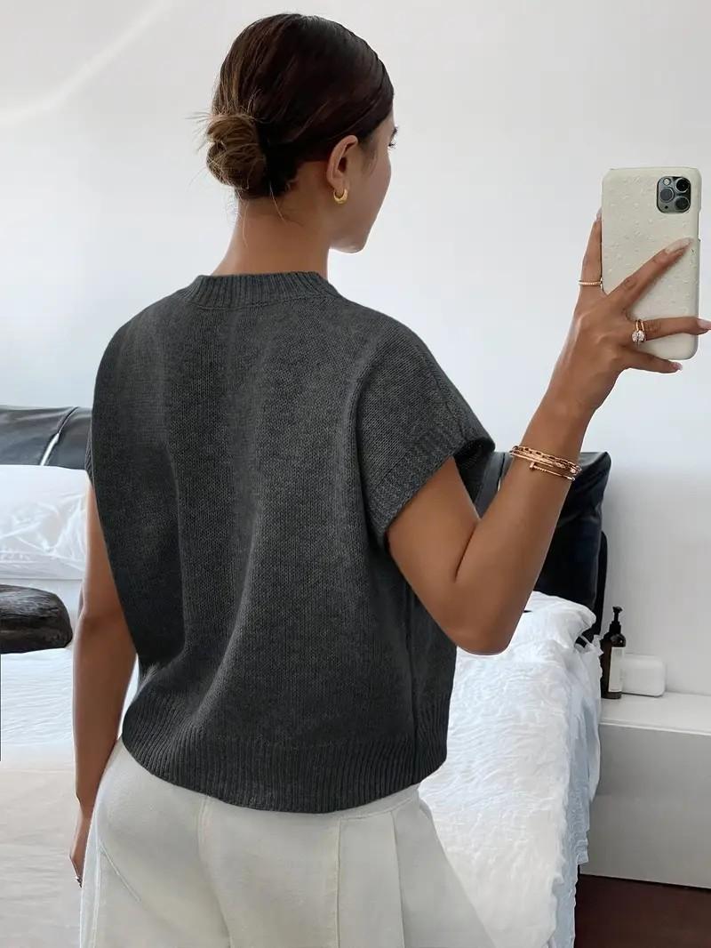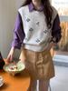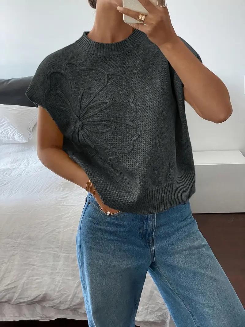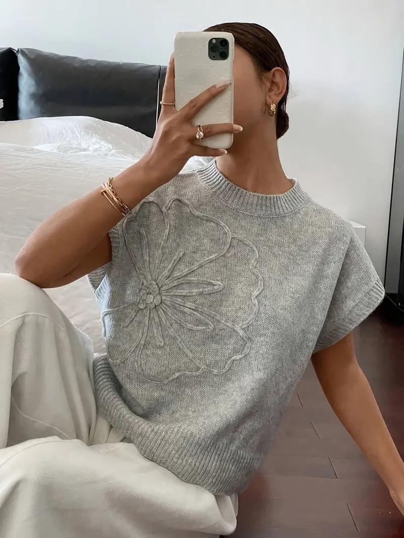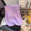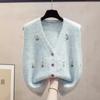 Chaleco de Punto Bordado Transfronterizo Europeo y Americano para Mujer Primavera y Otoño Nuevo Color Sólido Sin Mangas Suéter Chaleco Top Ropa de Mujer