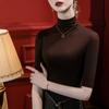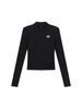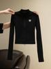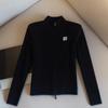 Playera negra de hombro recto, cuello medio alto con cremallera, manga larga, para mujer, corte ajustado, nuevo estilo 2025, top camiseta interior básica