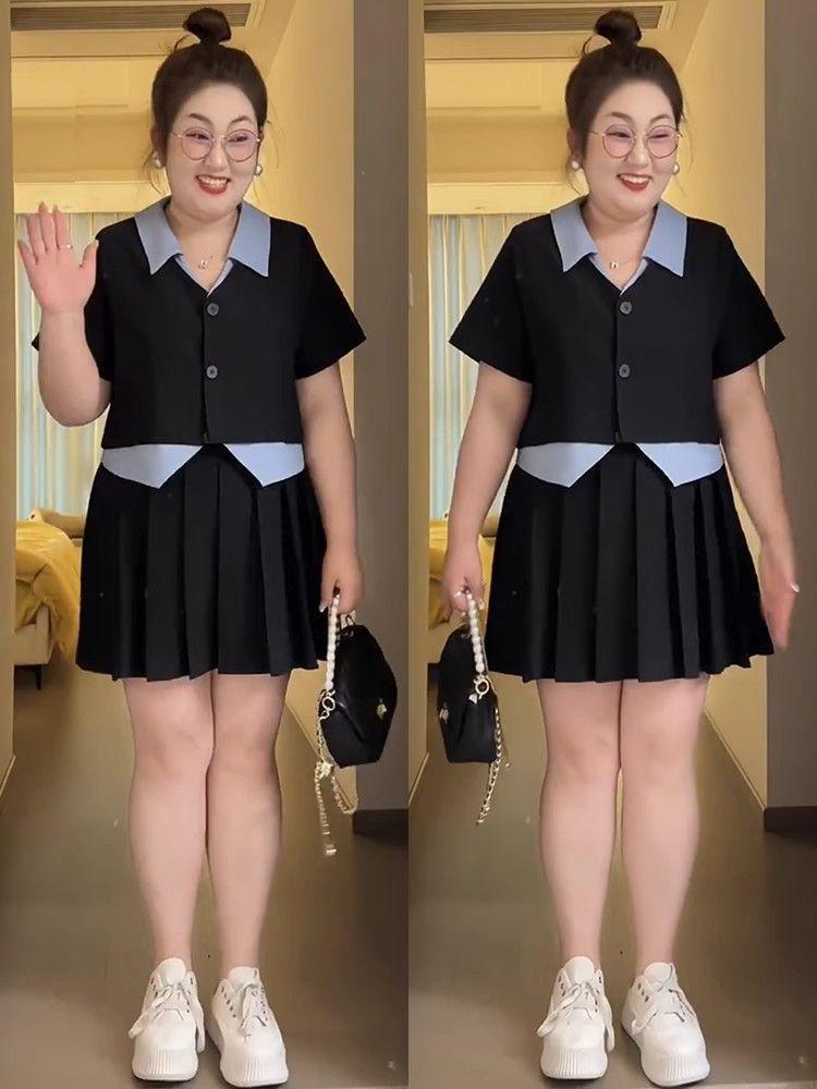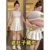 Talla Grande Gordo mm Traje Falda Plisada Verano para Mujer 2025 Nueva Falda Línea A Cubre Carne Falda Corta Falda Blanca