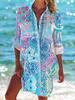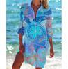 Comercio Exterior Transfronterizo 2025 Nueva Camisa Cubre Bikini Traje de Baño Cárdigan Ropa de Mujer Estampado Vacaciones Playa Camisa