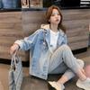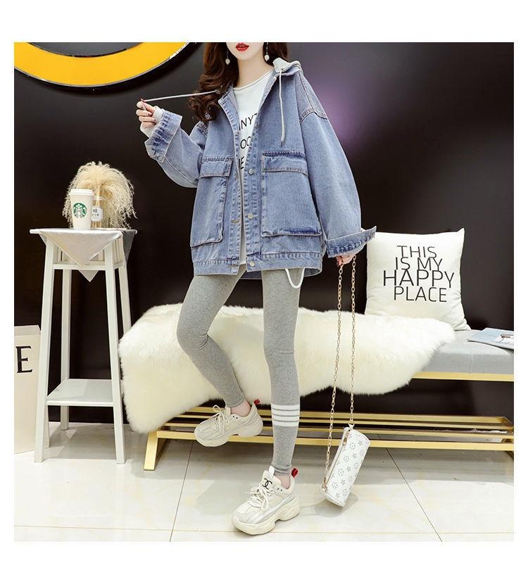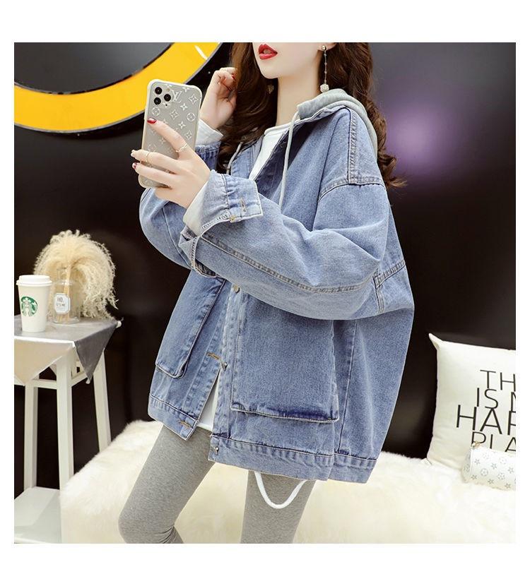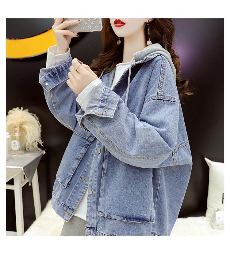 Chaqueta de mezclilla holgada con capucha estilo coreano para mujer, primavera y otoño, nueva, que reduce la edad, versátil, talla grande, chaqueta retro, abrigo de mezclilla, tendencia