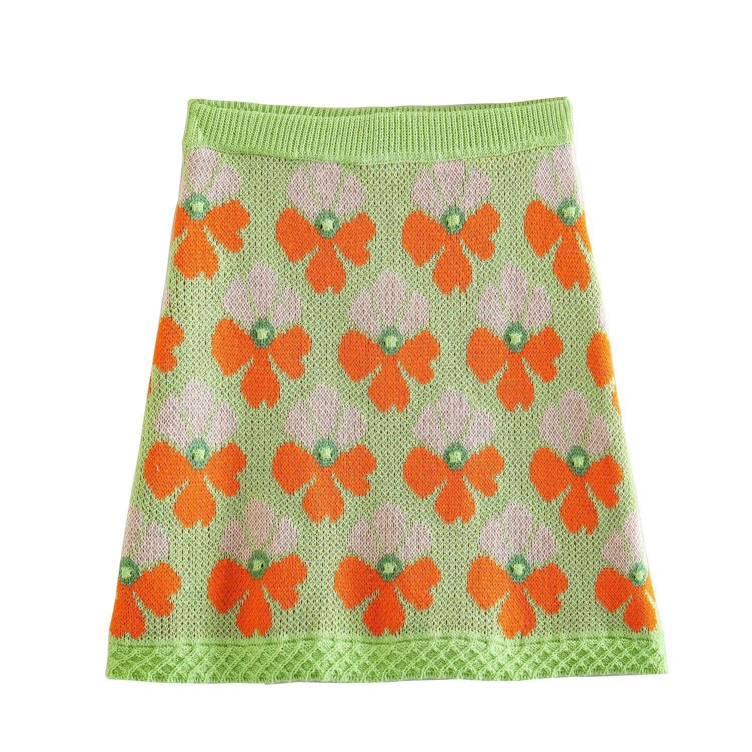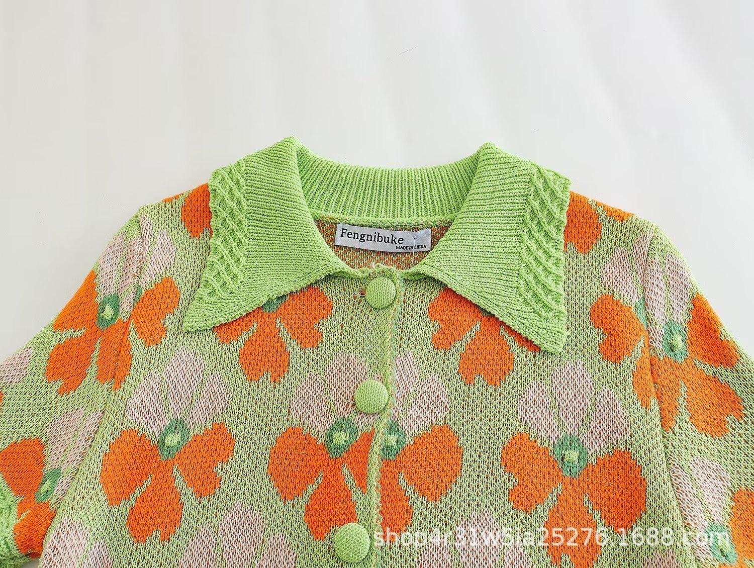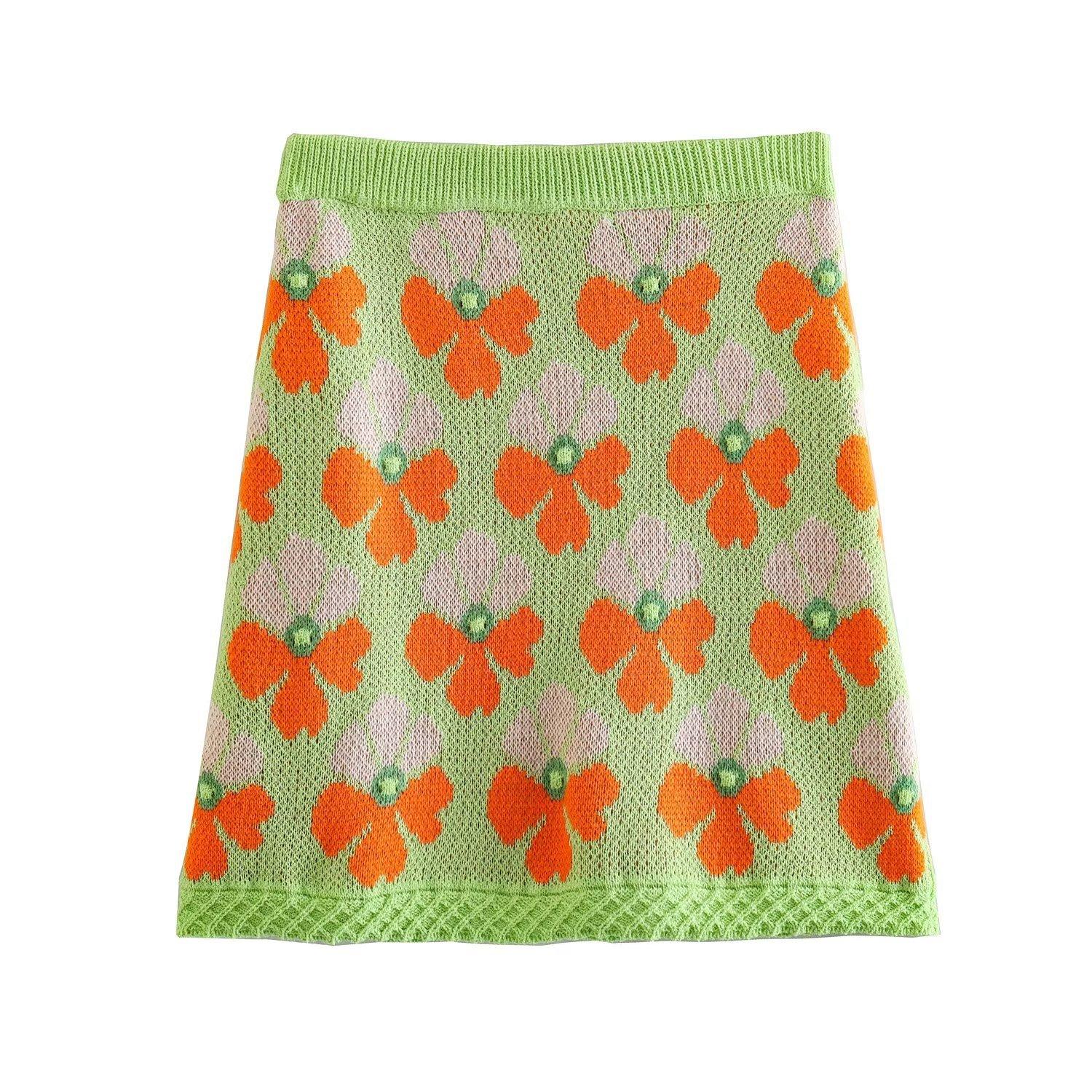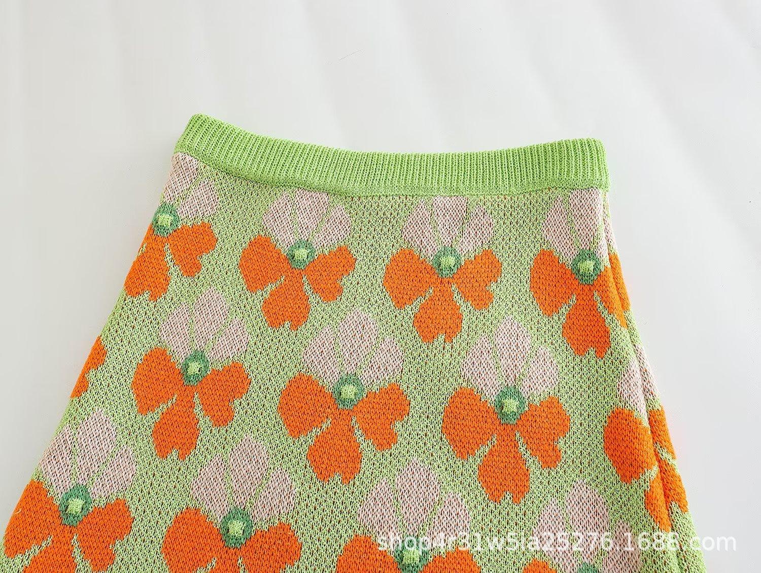 Estilo europeo y americano Ropa de mujer de comercio exterior Nuevo 2023 otoño manga corta Suéter jacquard de flores traje de falda corta