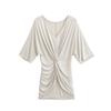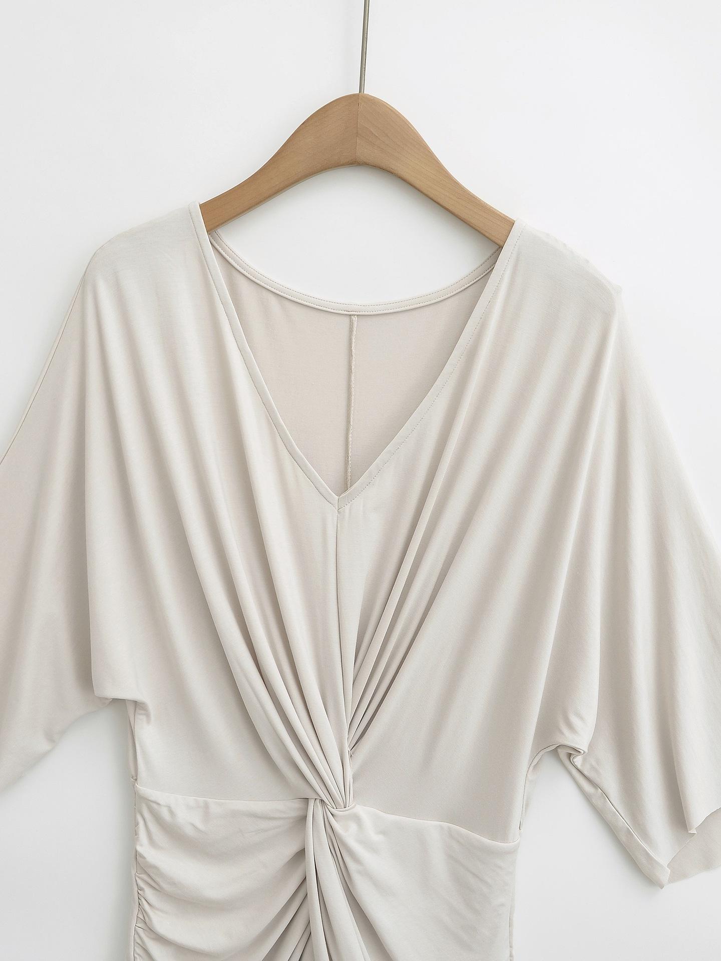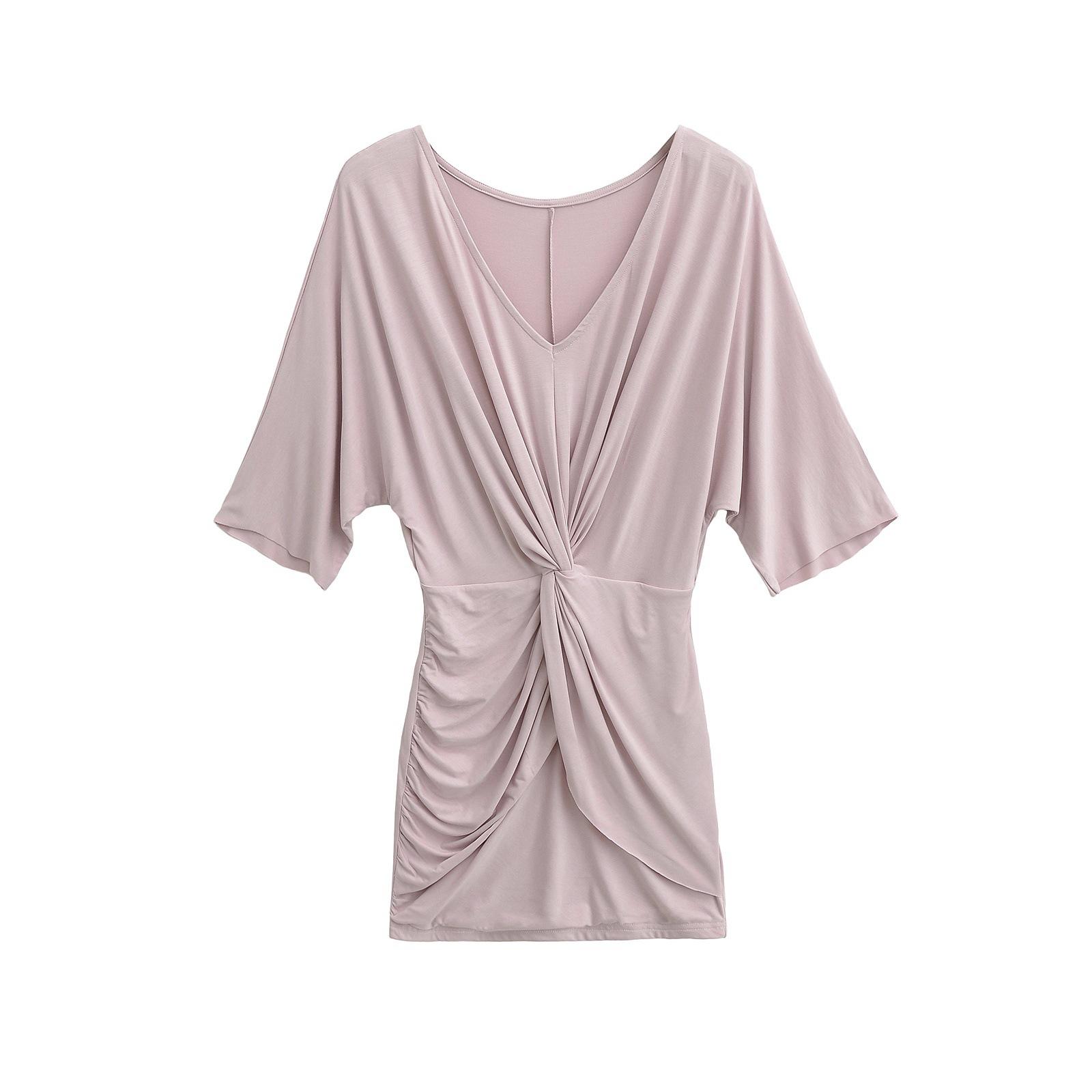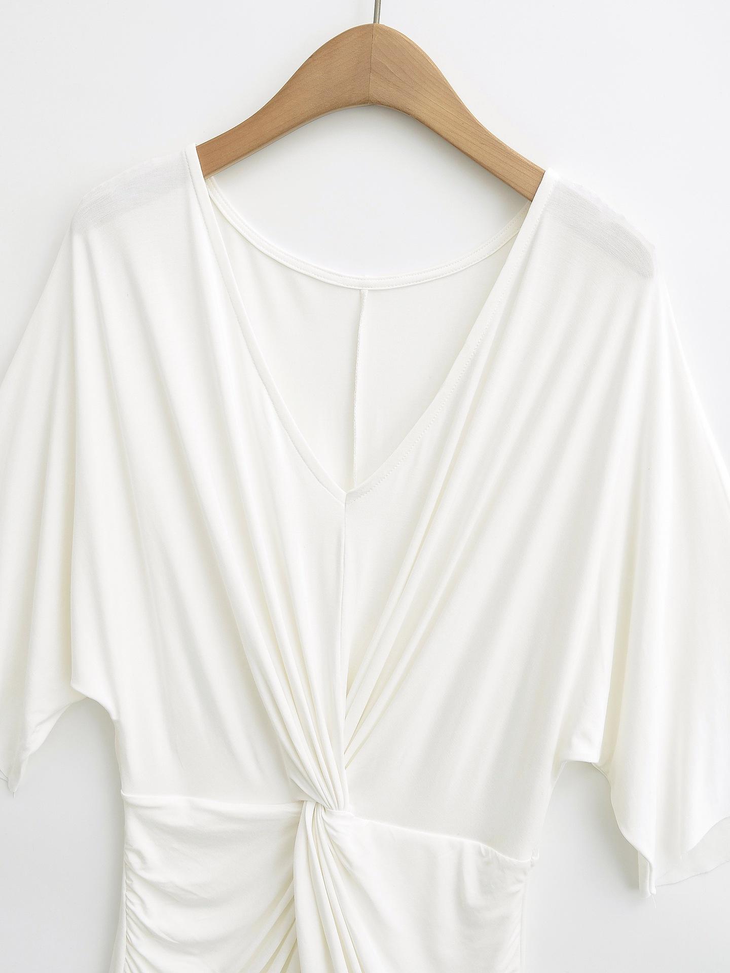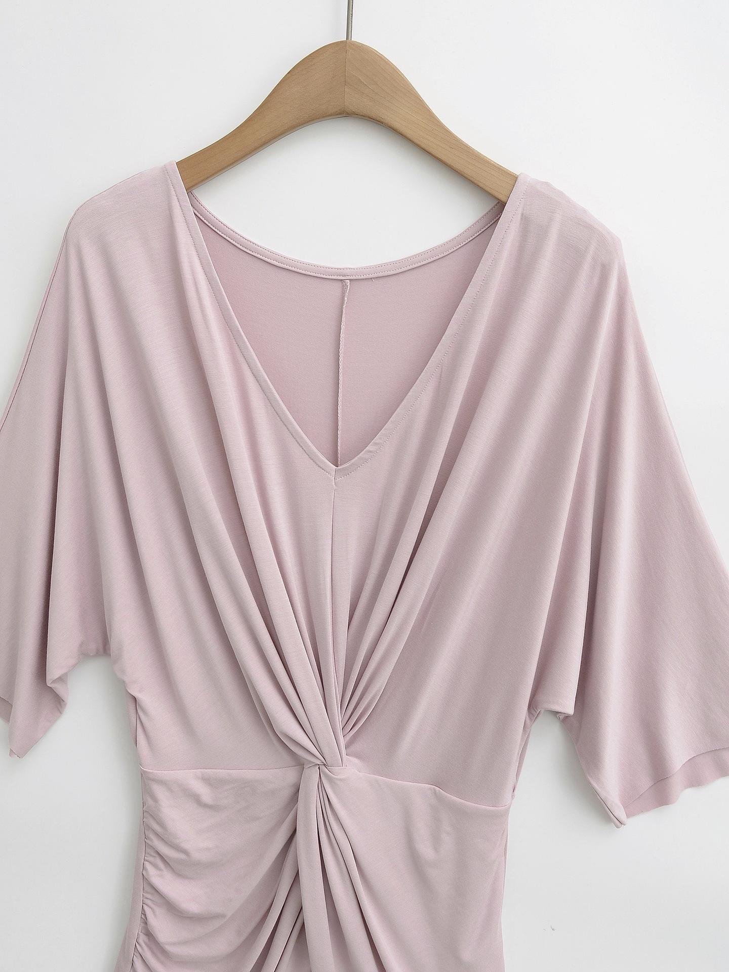 Vestido Sexy con Giro y Cuello en V para Mujer 2025 Estilo Verano Plisado Cintura Ajustada Cubre Caderas Manga Media Falda Corta