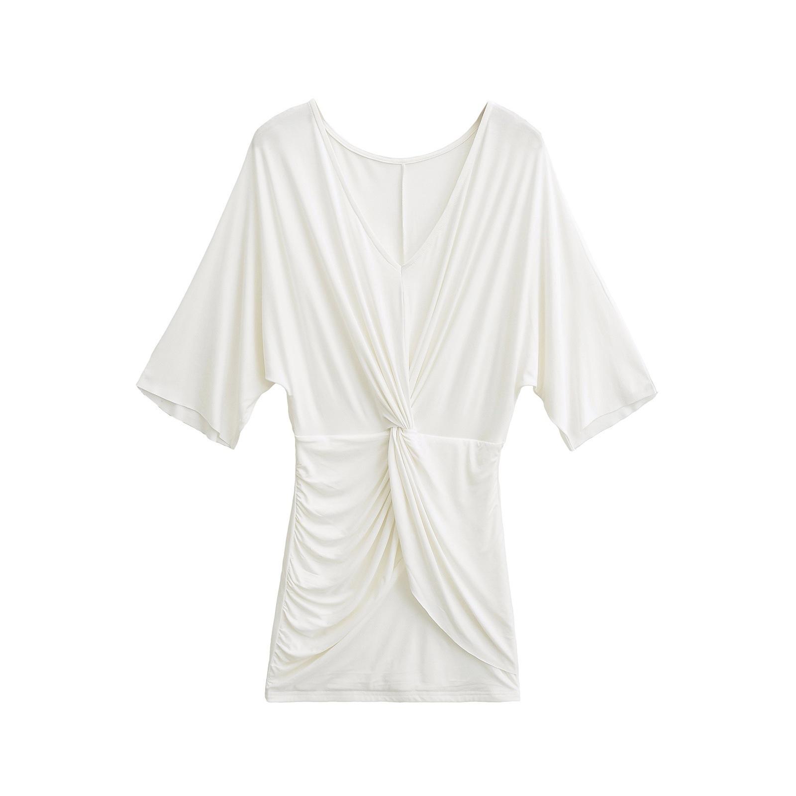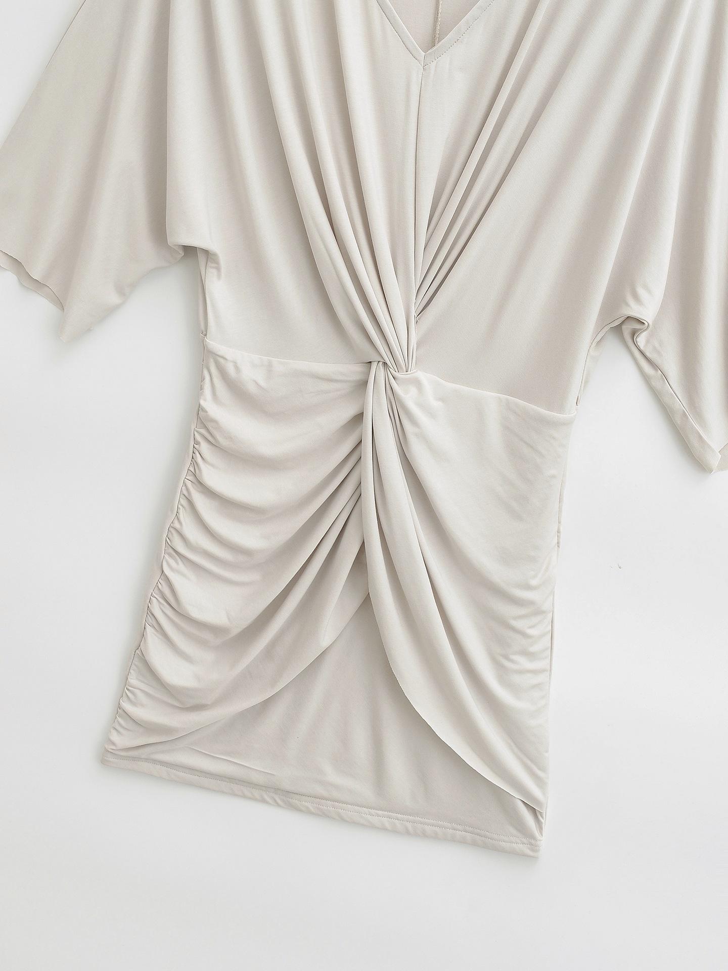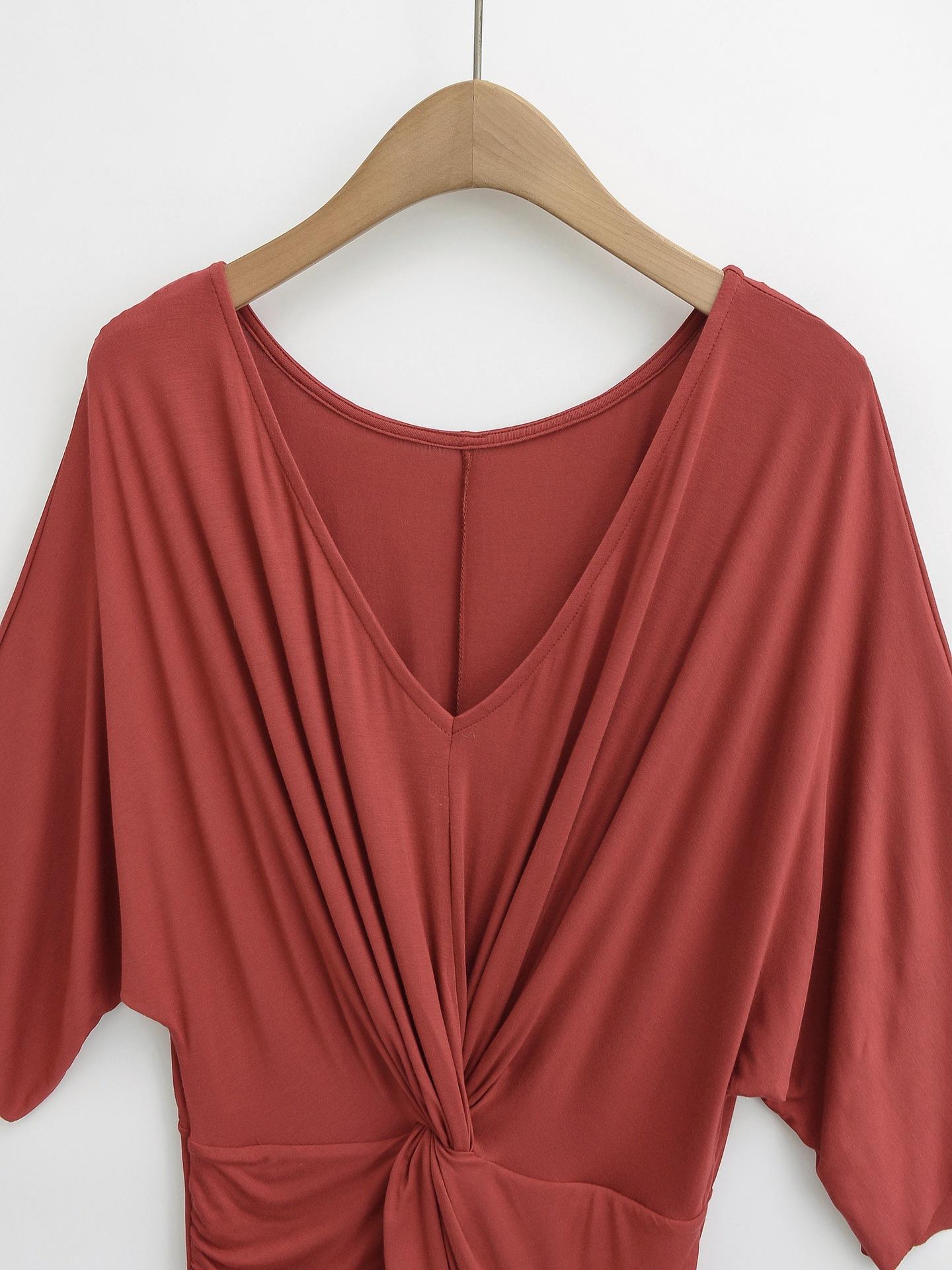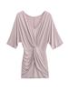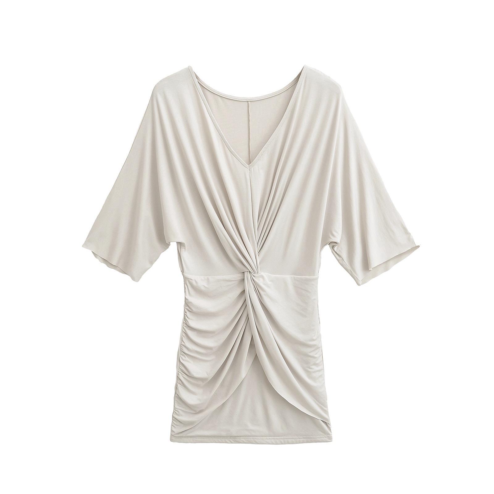 Vestido Sexy con Giro y Cuello en V para Mujer 2025 Estilo Verano Plisado Cintura Ajustada Cubre Caderas Manga Media Falda Corta