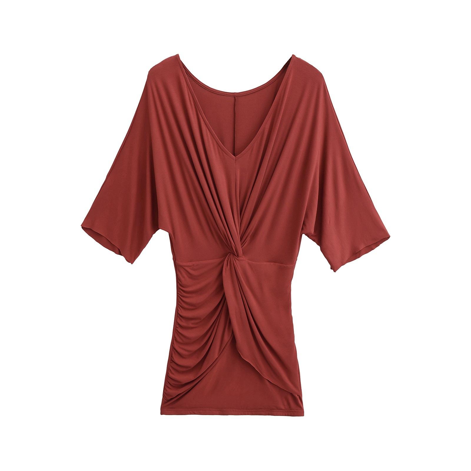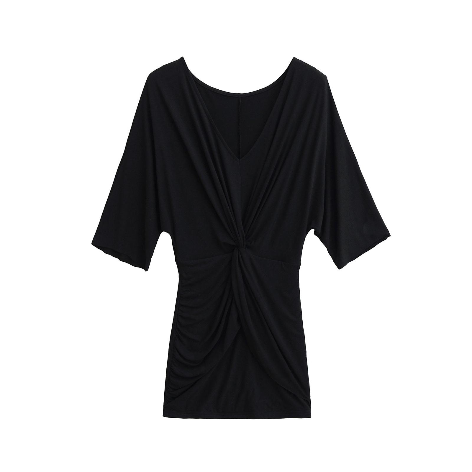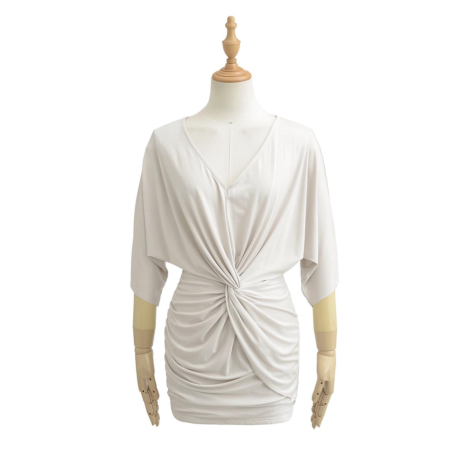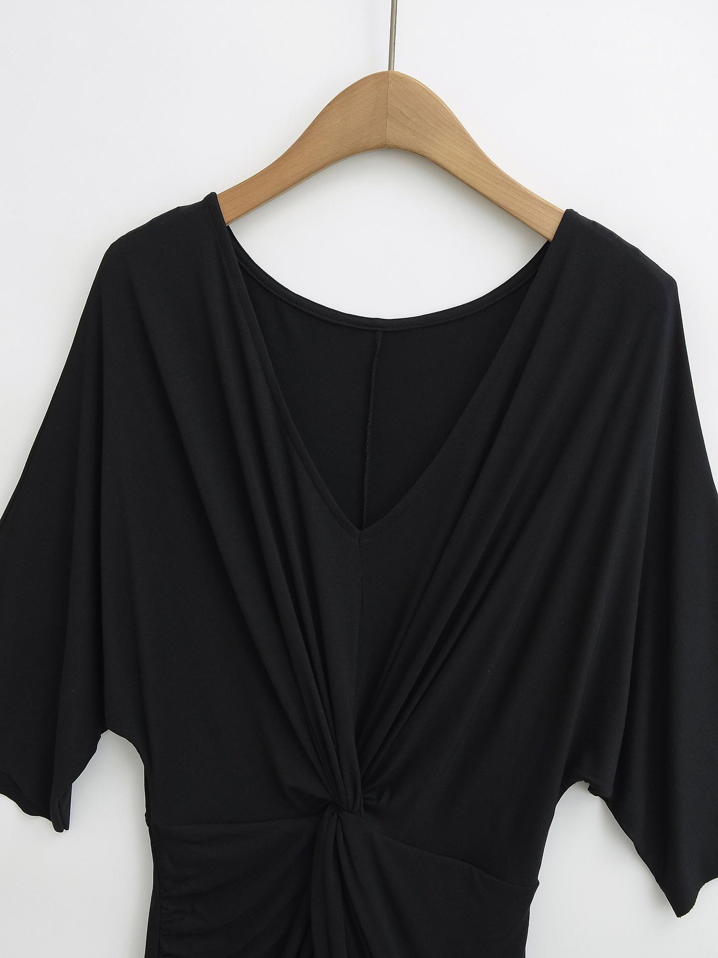 Vestido Sexy con Giro y Cuello en V para Mujer 2025 Estilo Verano Plisado Cintura Ajustada Cubre Caderas Manga Media Falda Corta