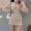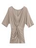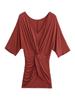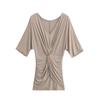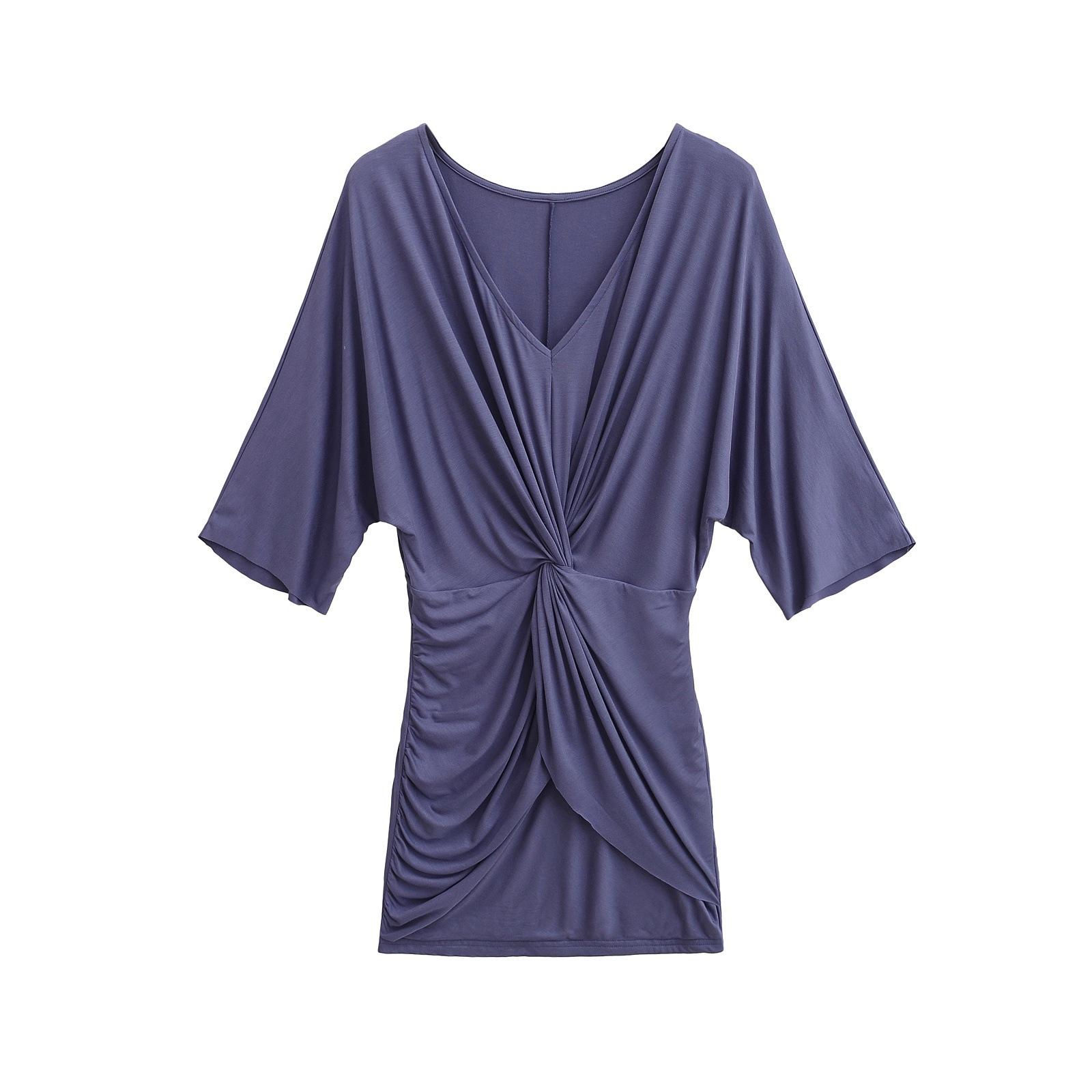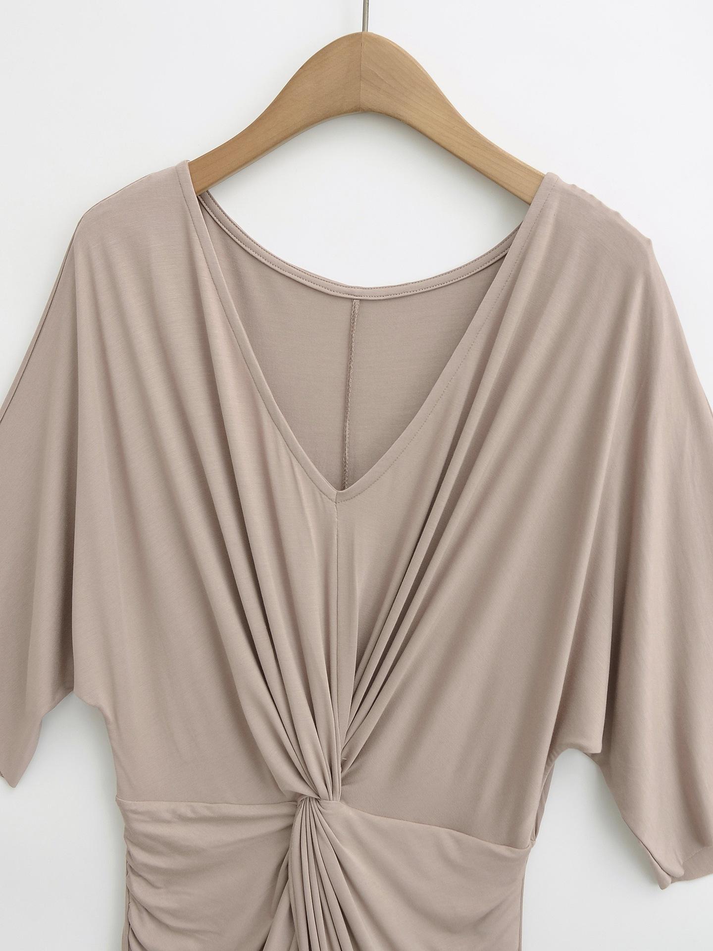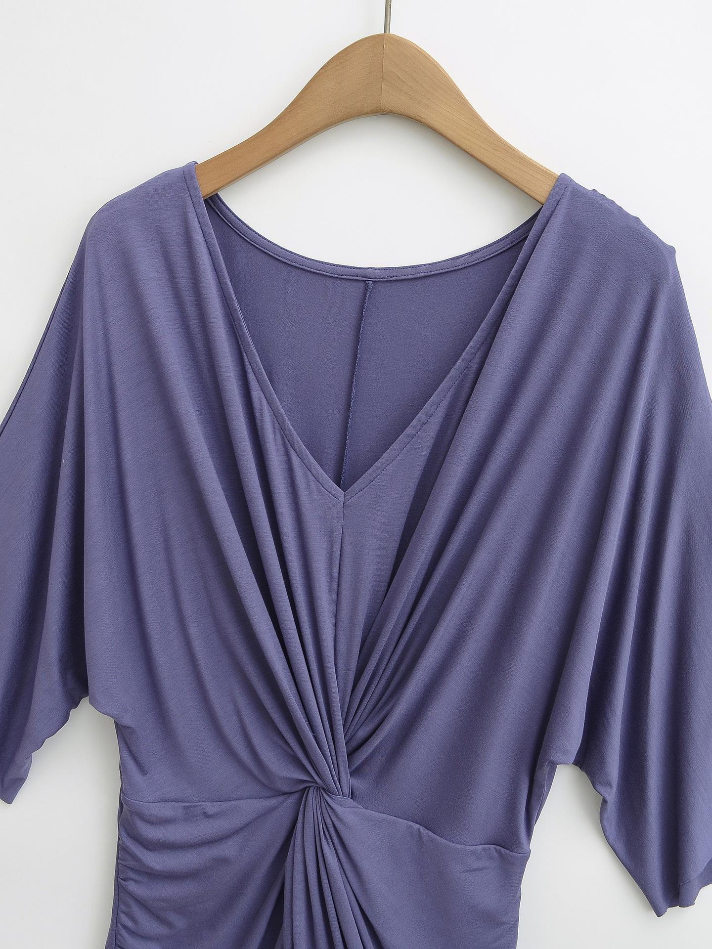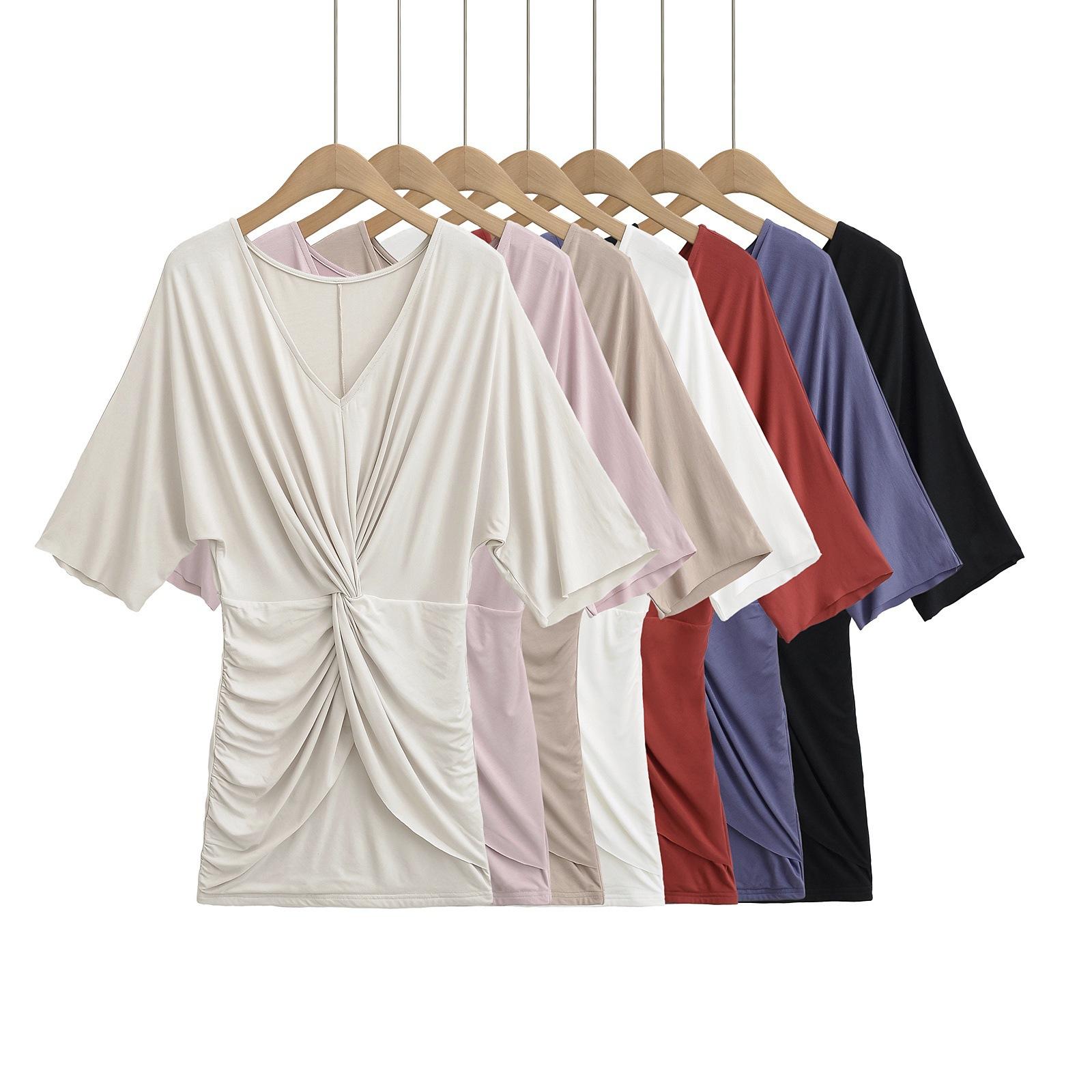 Vestido Sexy con Giro y Cuello en V para Mujer 2025 Estilo Verano Plisado Cintura Ajustada Cubre Caderas Manga Media Falda Corta